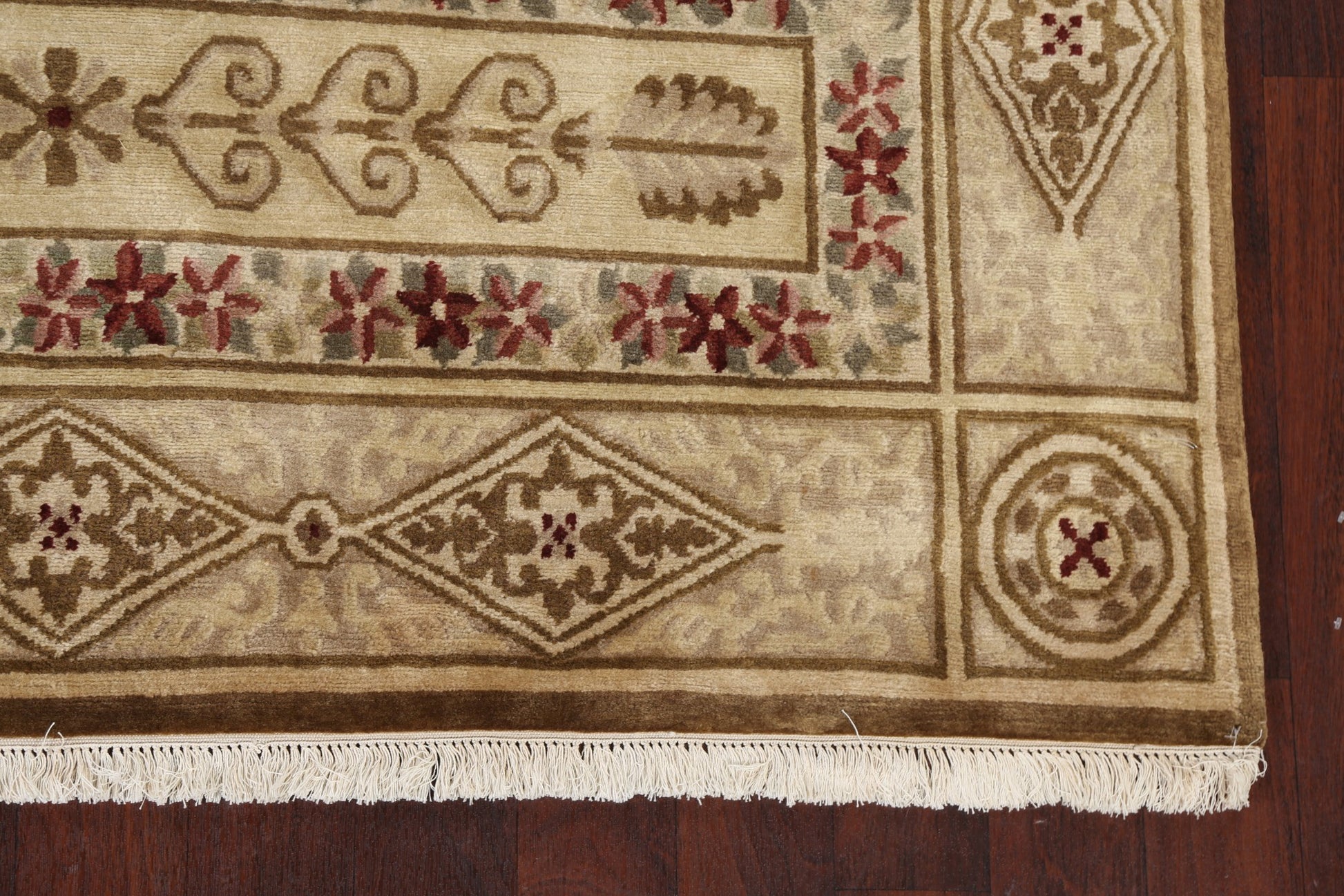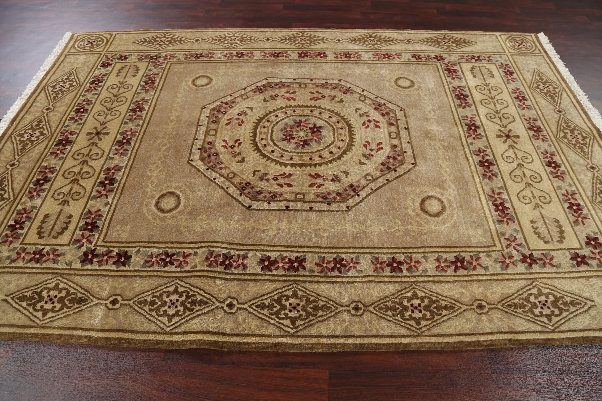 A Beautiful Genuine India Nepalese rug is Hand Knotted by skillful weavers in India with 100% Wool Material. This rug is in New, First Quality condition. dimensions are 9' 4'' X 6' 1'' in foot and 284 X 185 in centimeter. the primary color is Brown.
