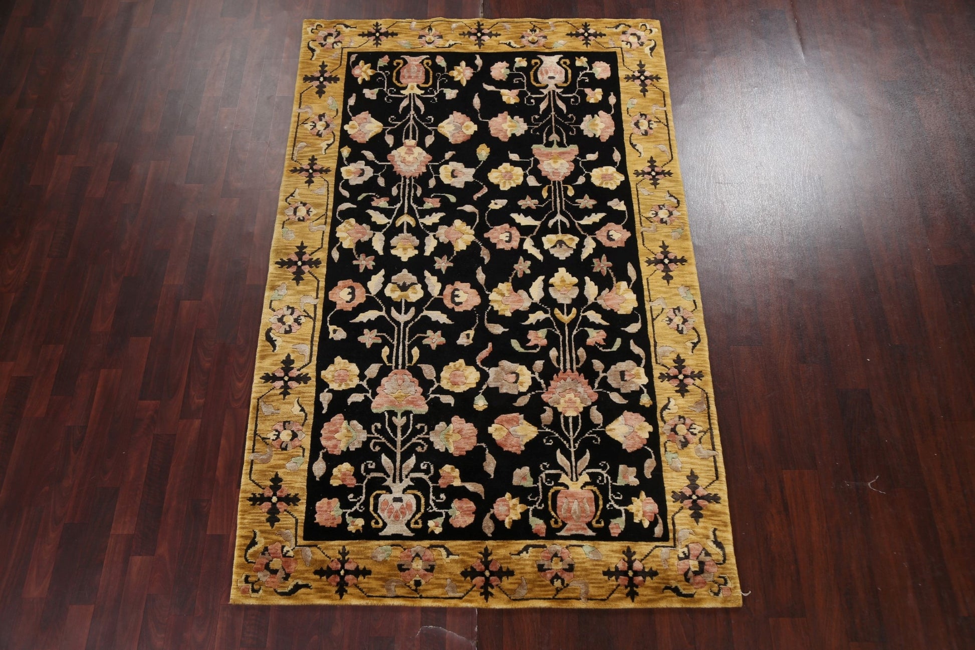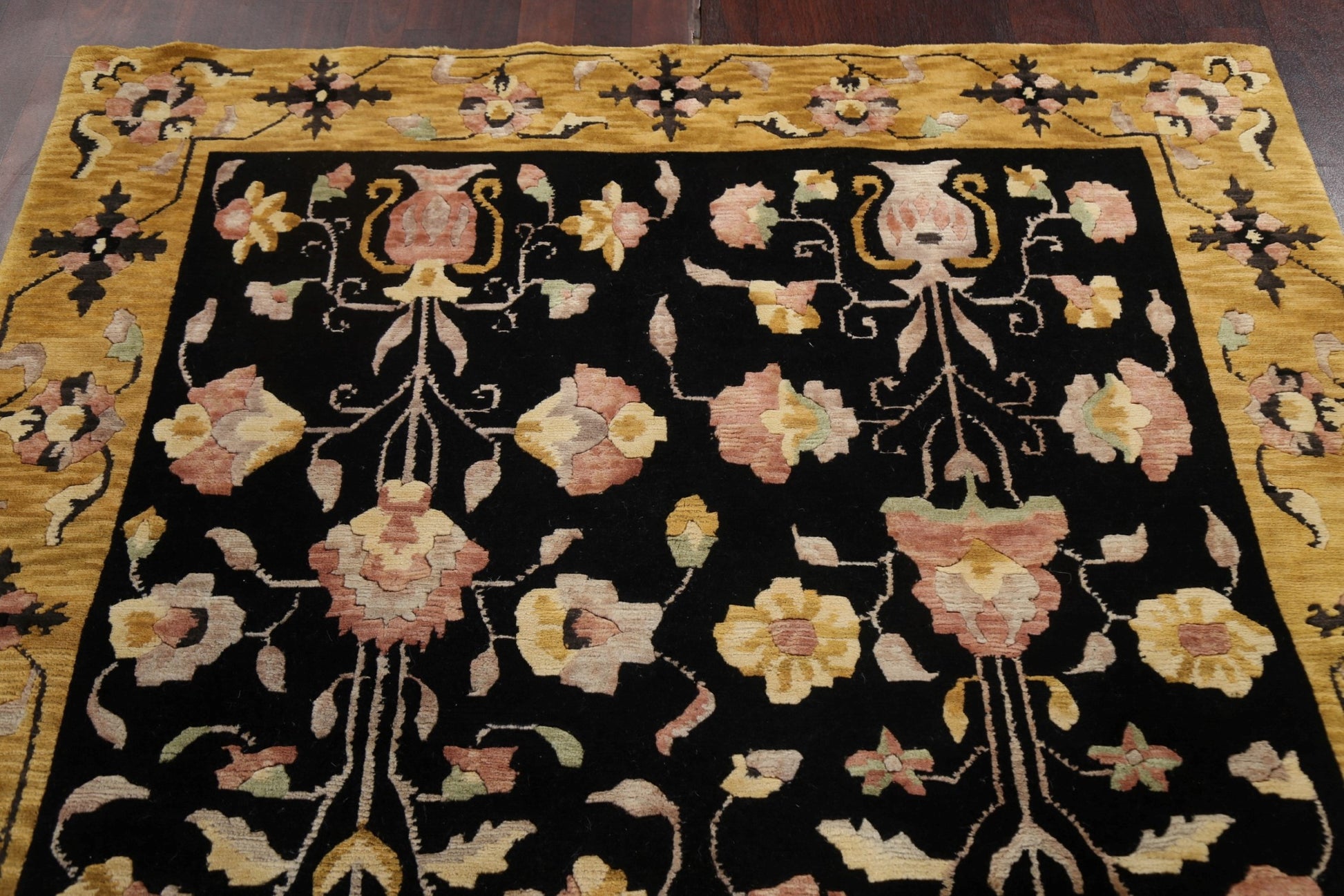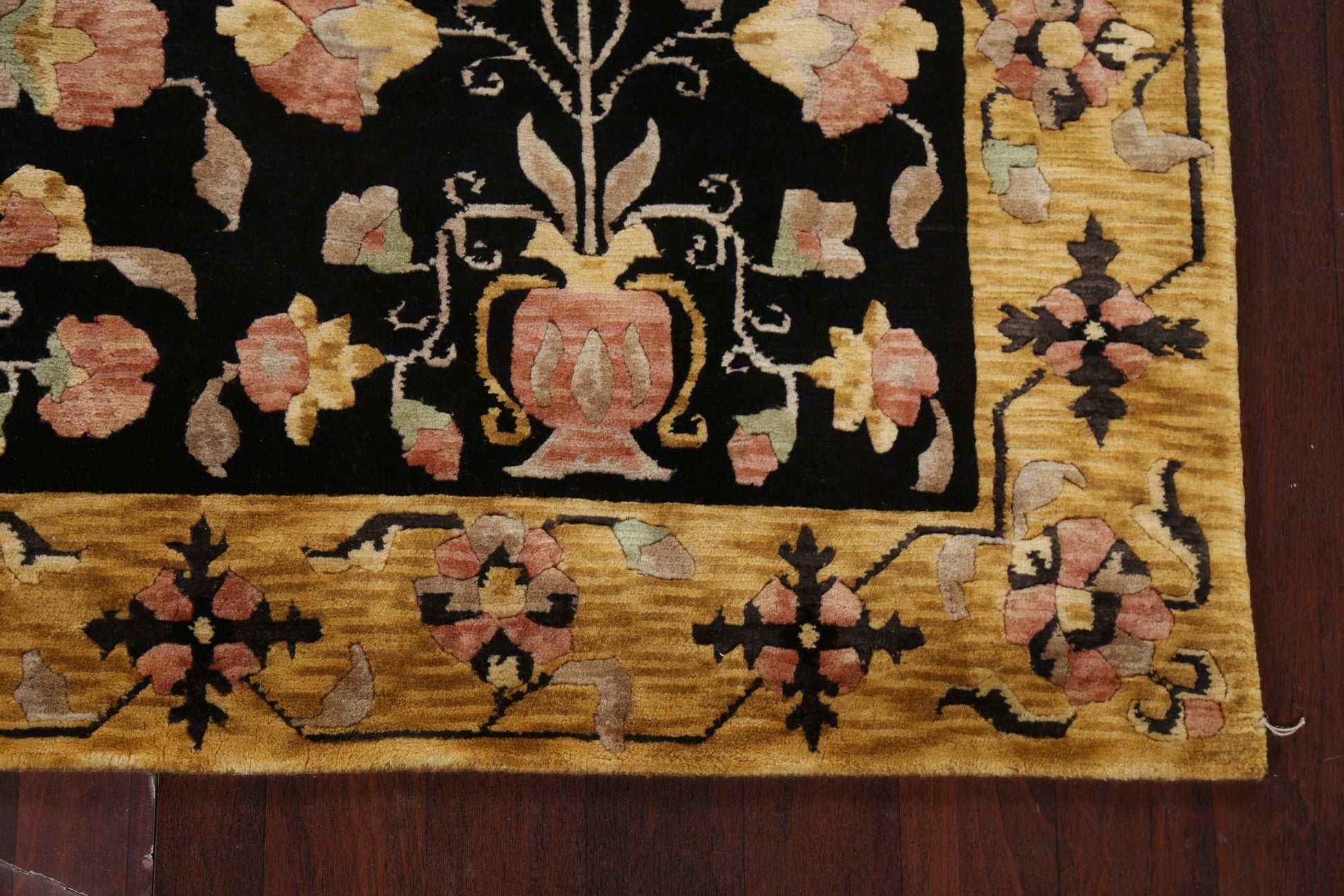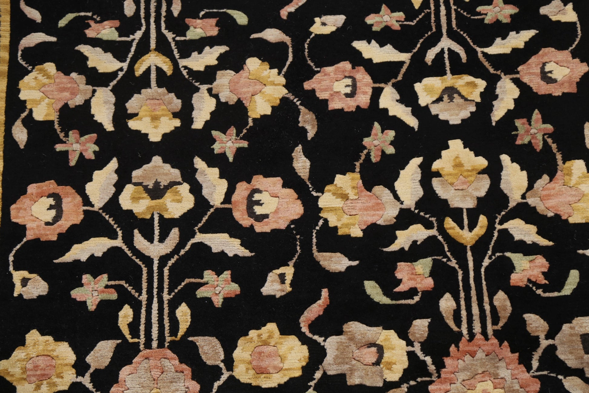 A Beautiful Genuine India Nepalese rug is Hand Knotted by skillful weavers in India with 100% Wool Material. This rug is in New, First Quality condition. dimensions are 9' 0'' X 5' 8'' in foot and 274 X 173 in centimeter. the primary color is Black.