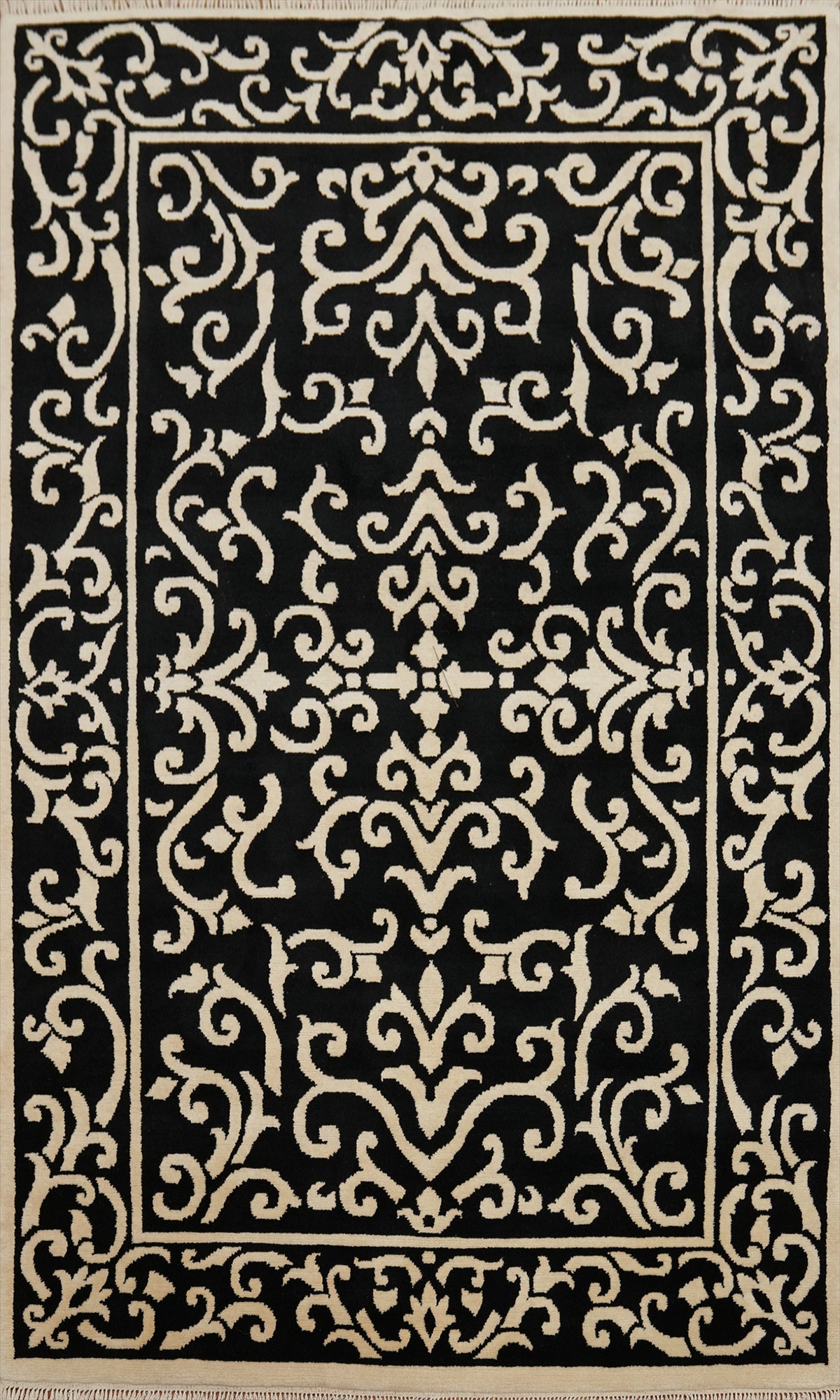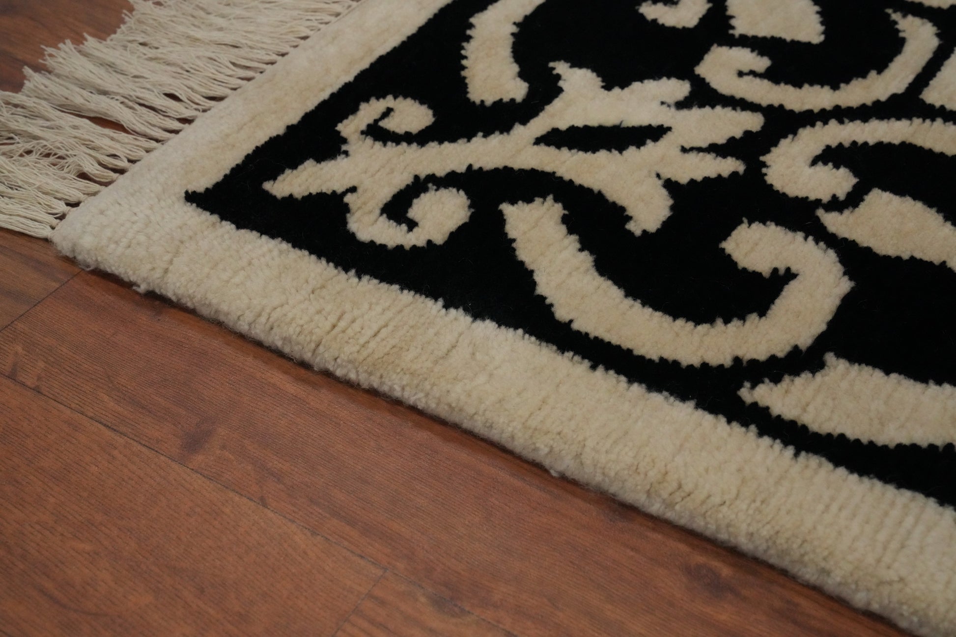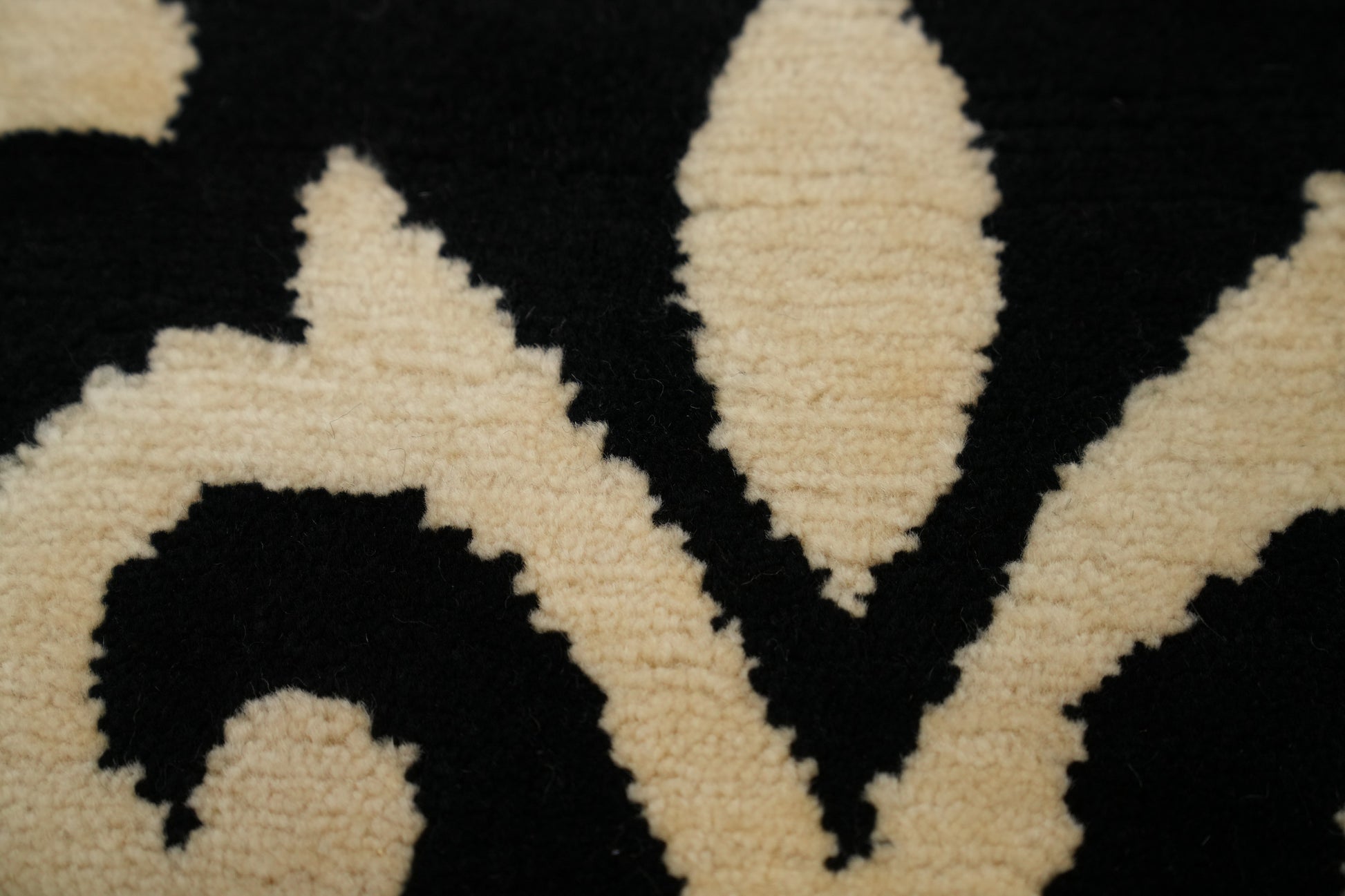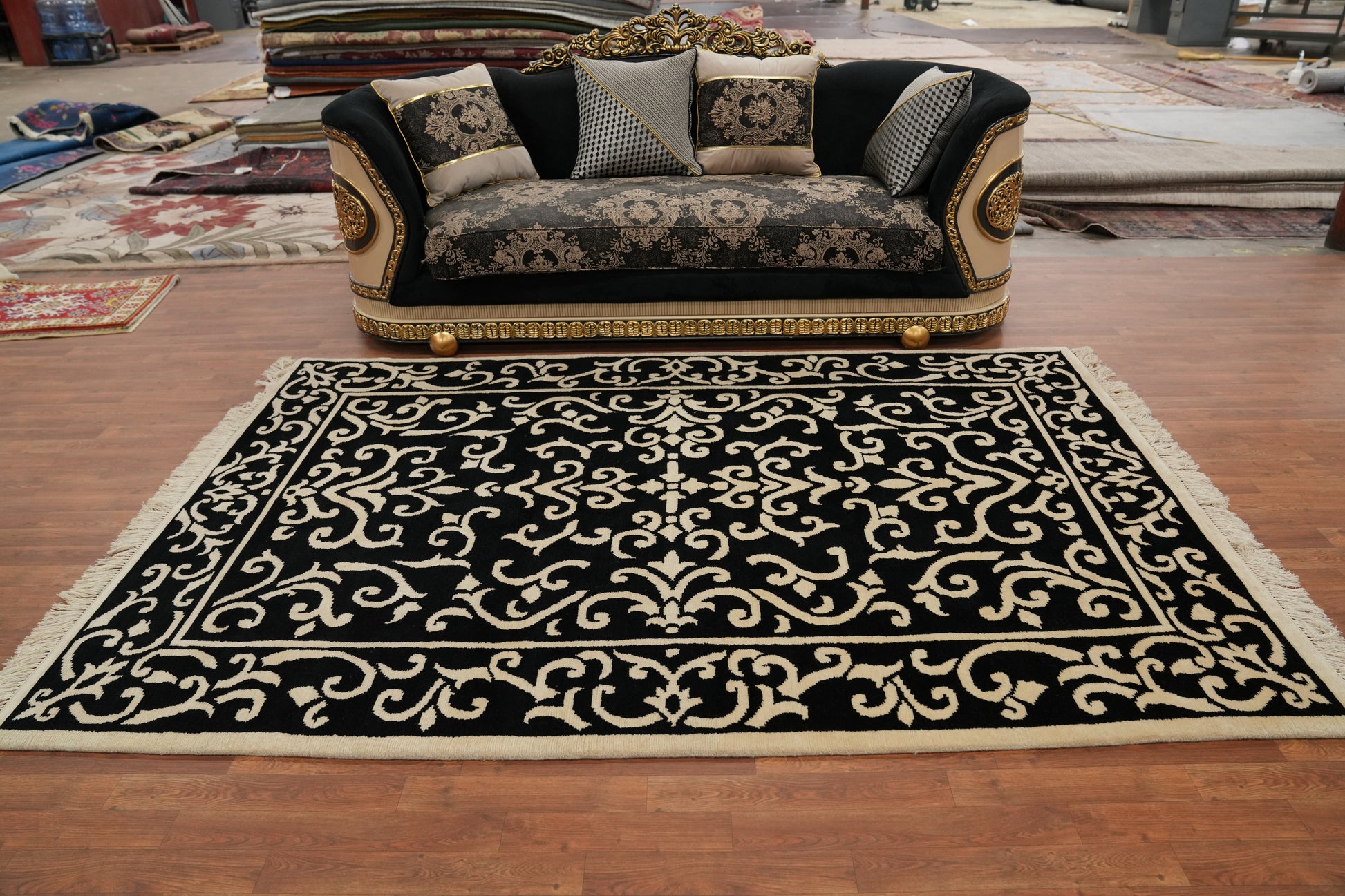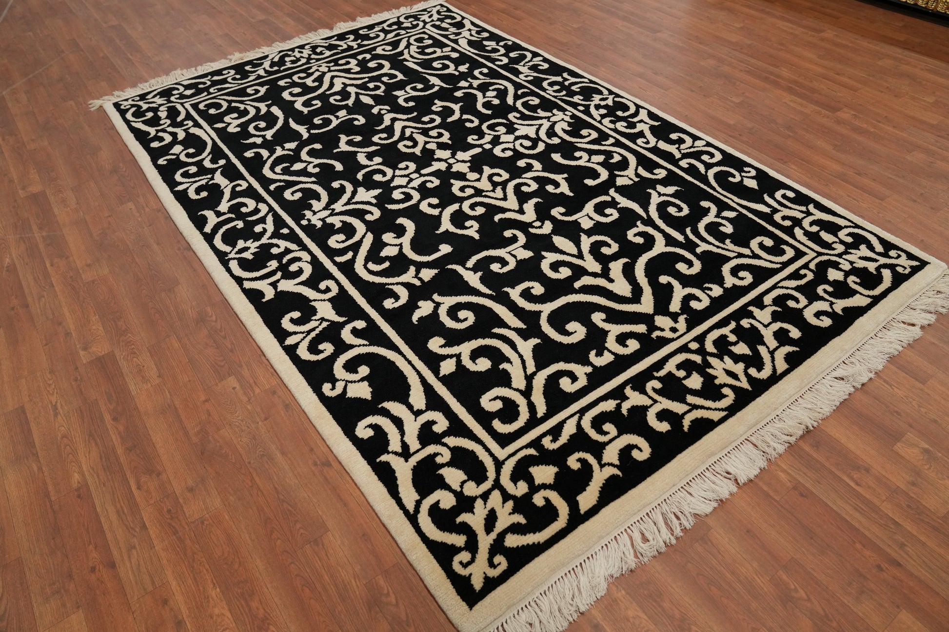 A Beautiful Genuine Nepal Nepalese rug is Hand Knotted by skillful weavers in Nepal with 100% Wool Material. This rug is in New, First Quality condition. dimensions are 9' 2'' X 6' 0'' in foot and 279 X 183 in centimeter. the primary color is Black.