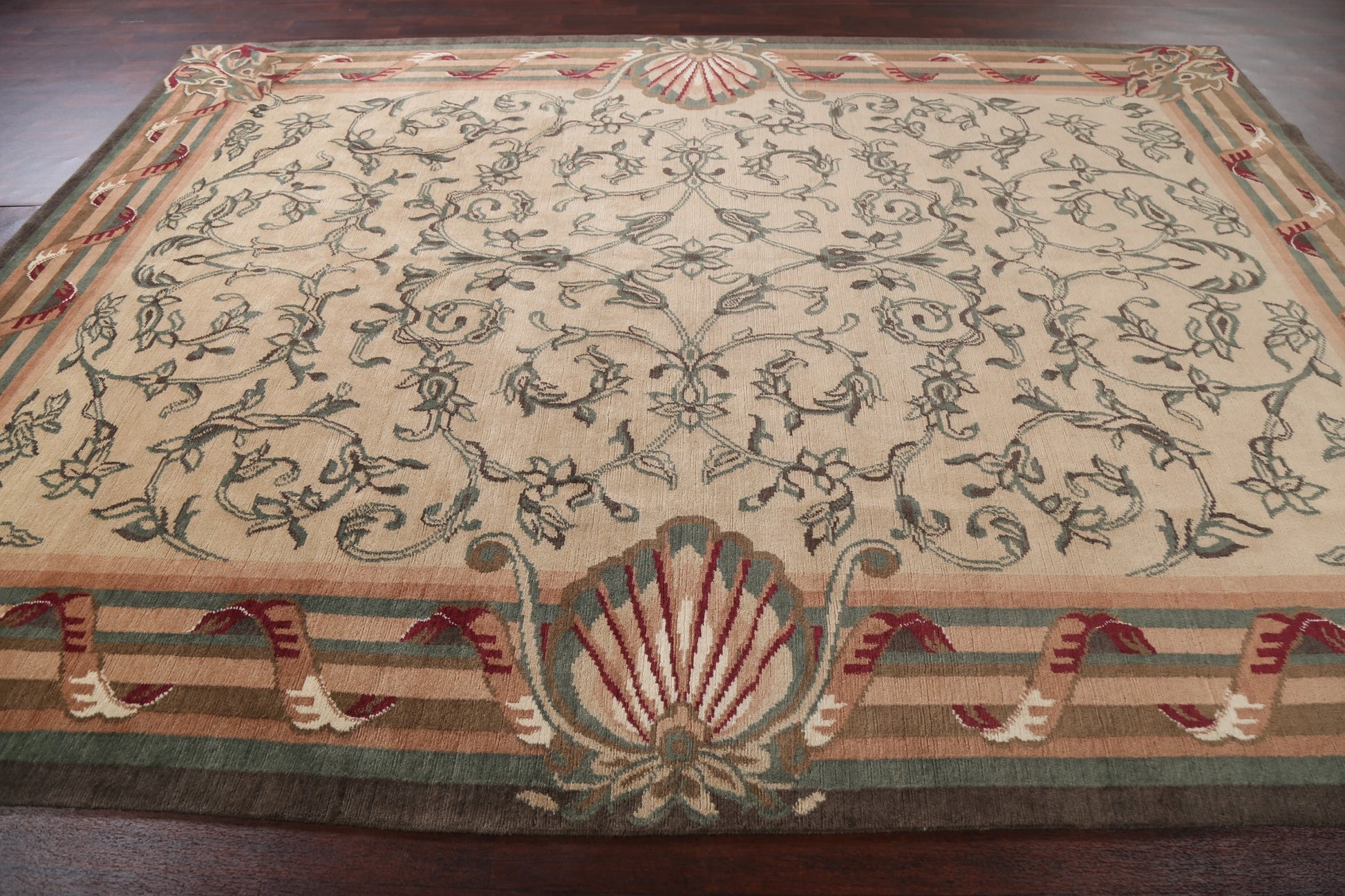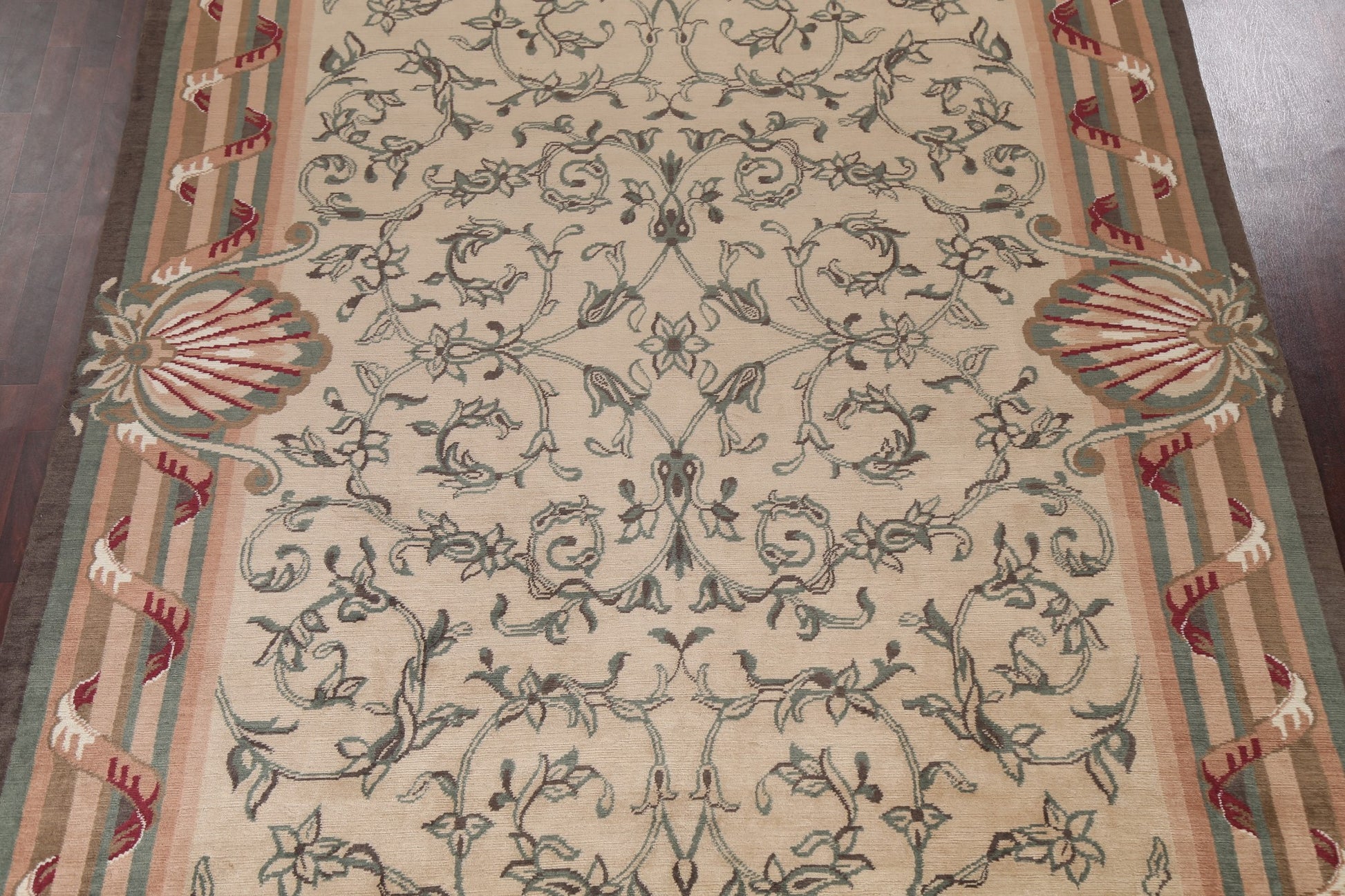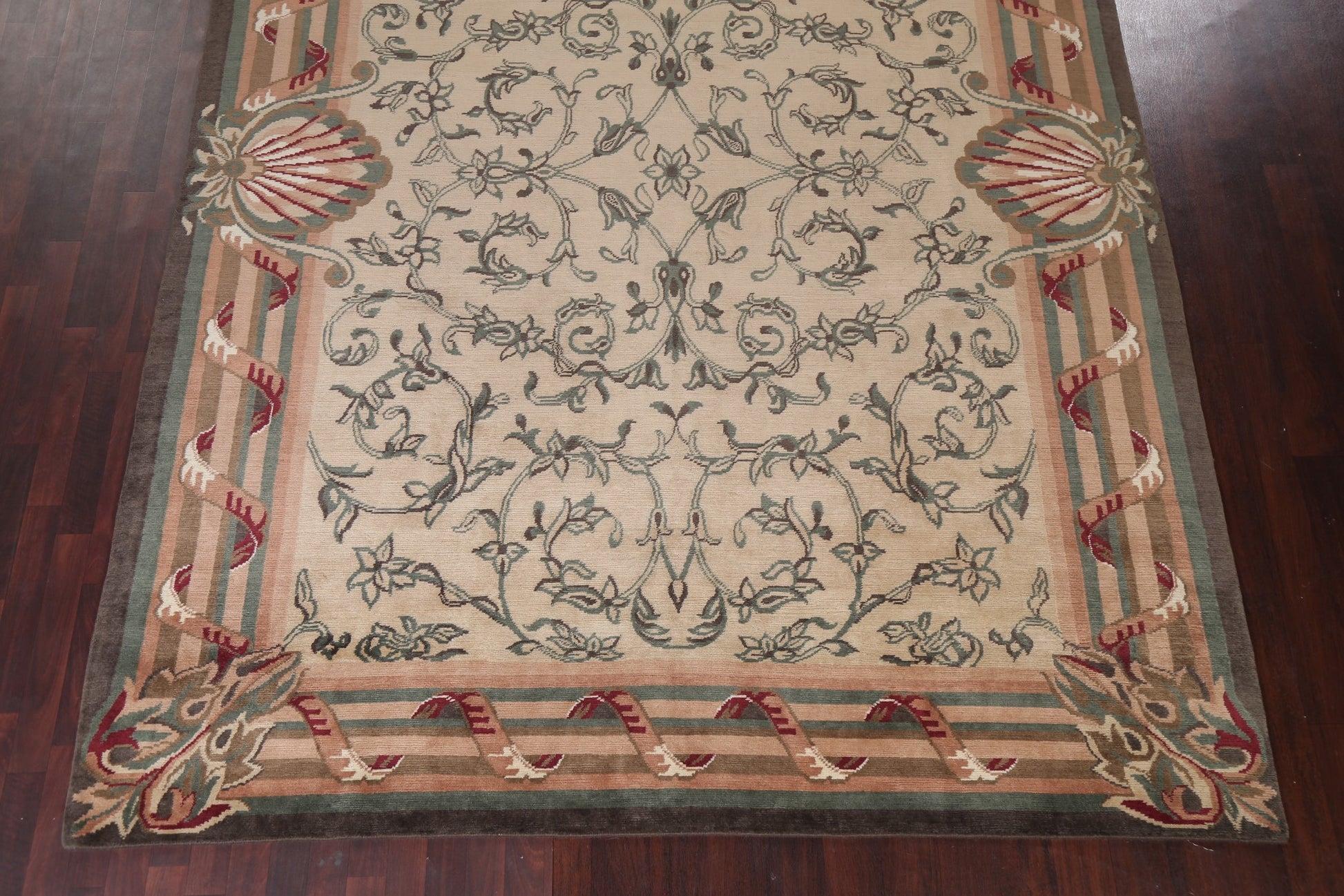 A Beautiful Genuine Nepal Nepalese rug is Hand Knotted by skillful weavers in Nepal with 100% Wool Material. This rug is in New, First Quality condition. dimensions are 11' 10'' X 8' 10'' in foot and 361 X 269 in centimeter. the primary color is Beige & Ivories.