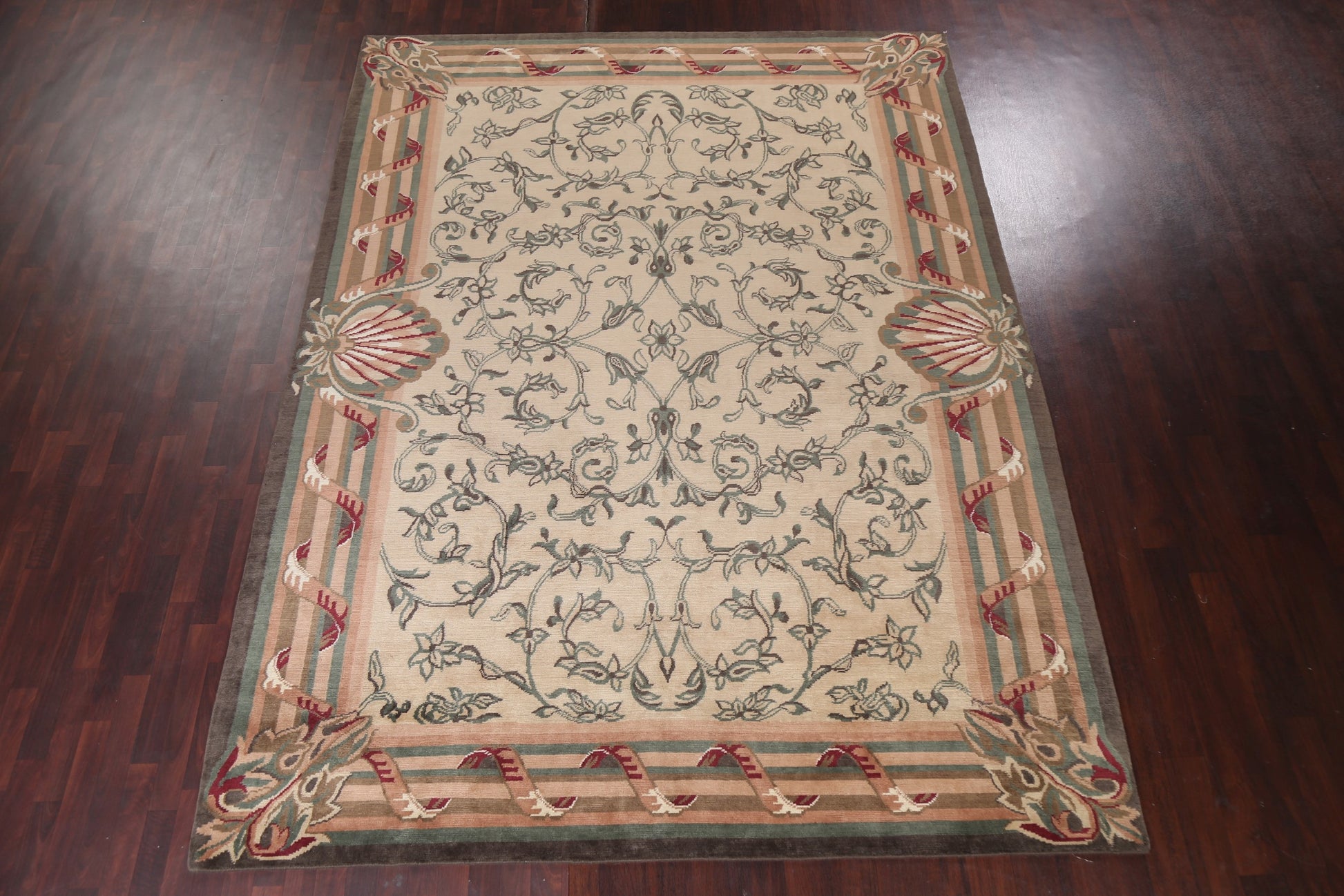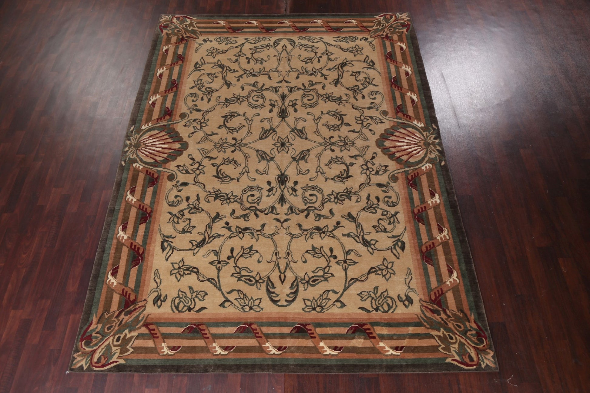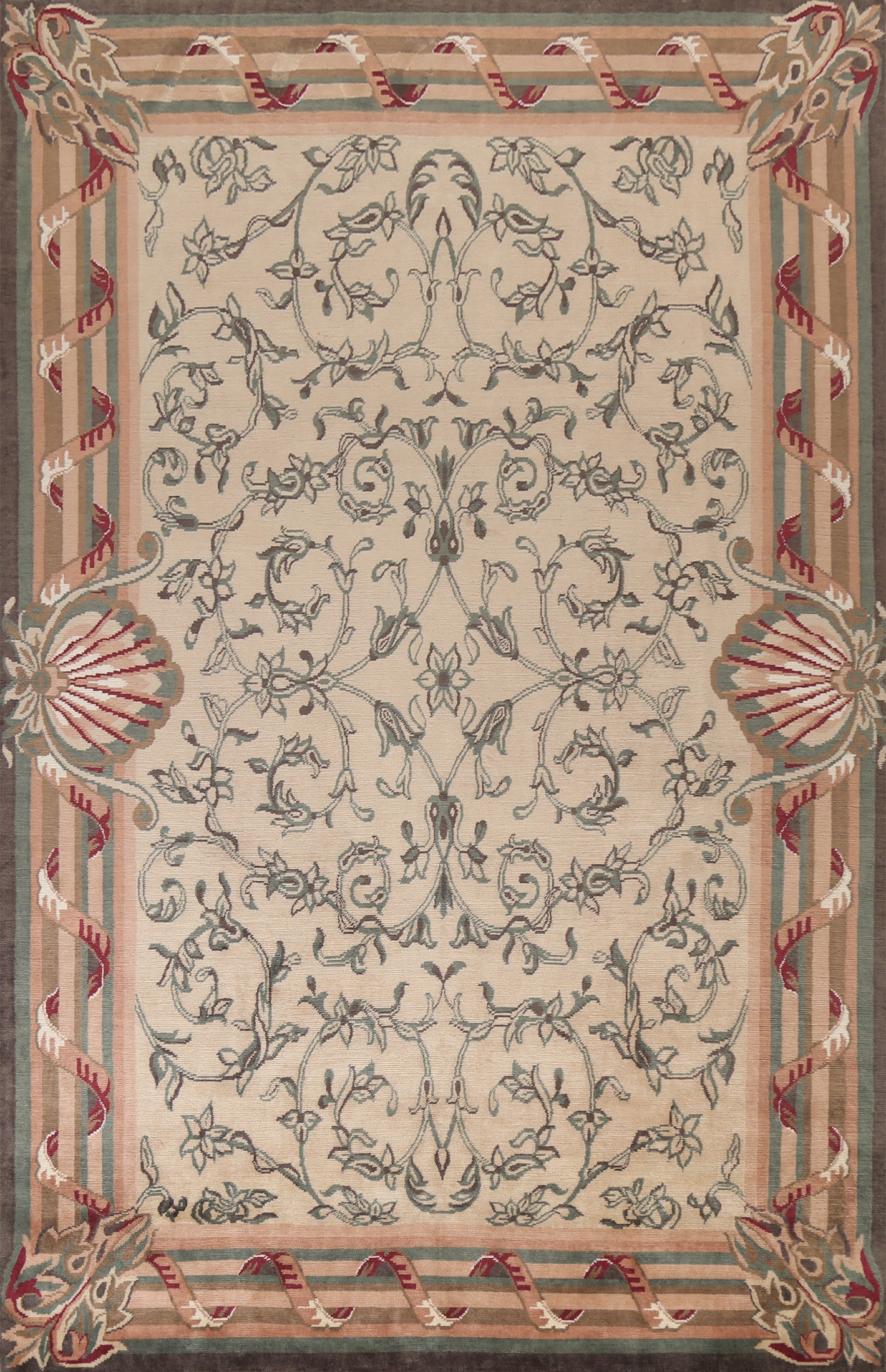 A Beautiful Genuine Nepal Nepalese rug is Hand Knotted by skillful weavers in Nepal with 100% Wool Material. This rug is in New, First Quality condition. dimensions are 11' 10'' X 8' 10'' in foot and 361 X 269 in centimeter. the primary color is Beige & Ivories.