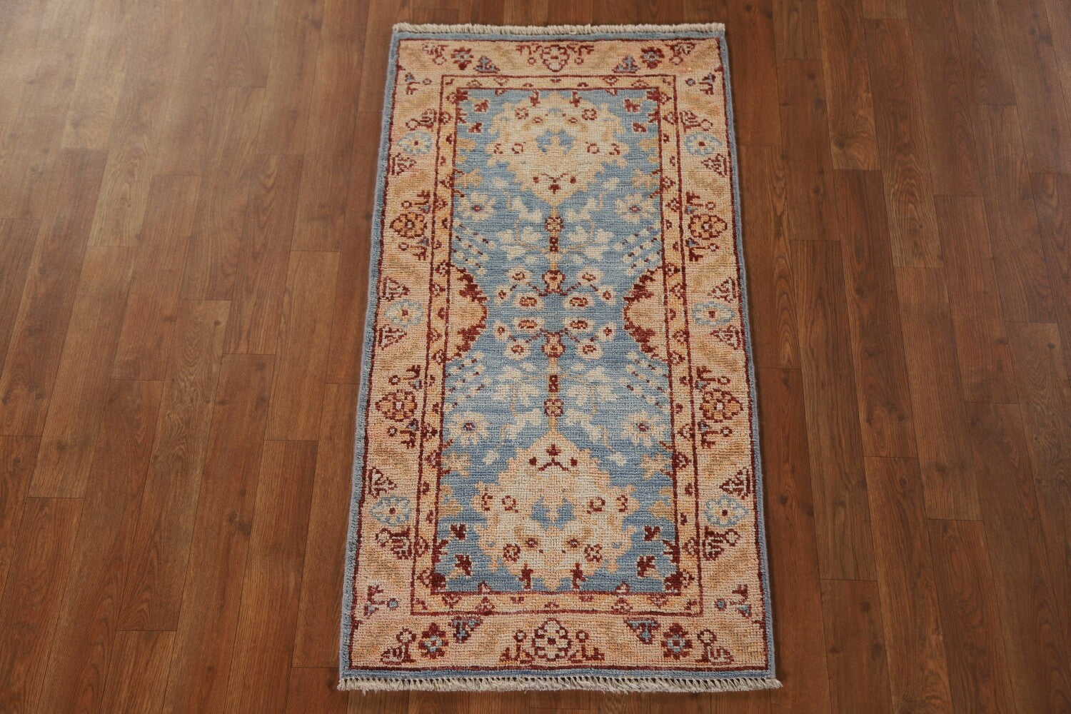 Vegetable Dye Oushak Blue Turkish Foyer Rug 2x4