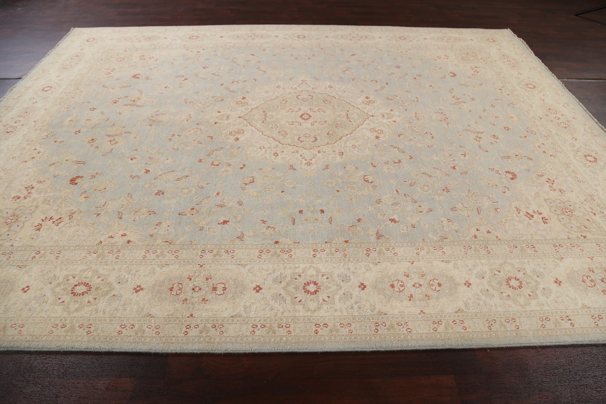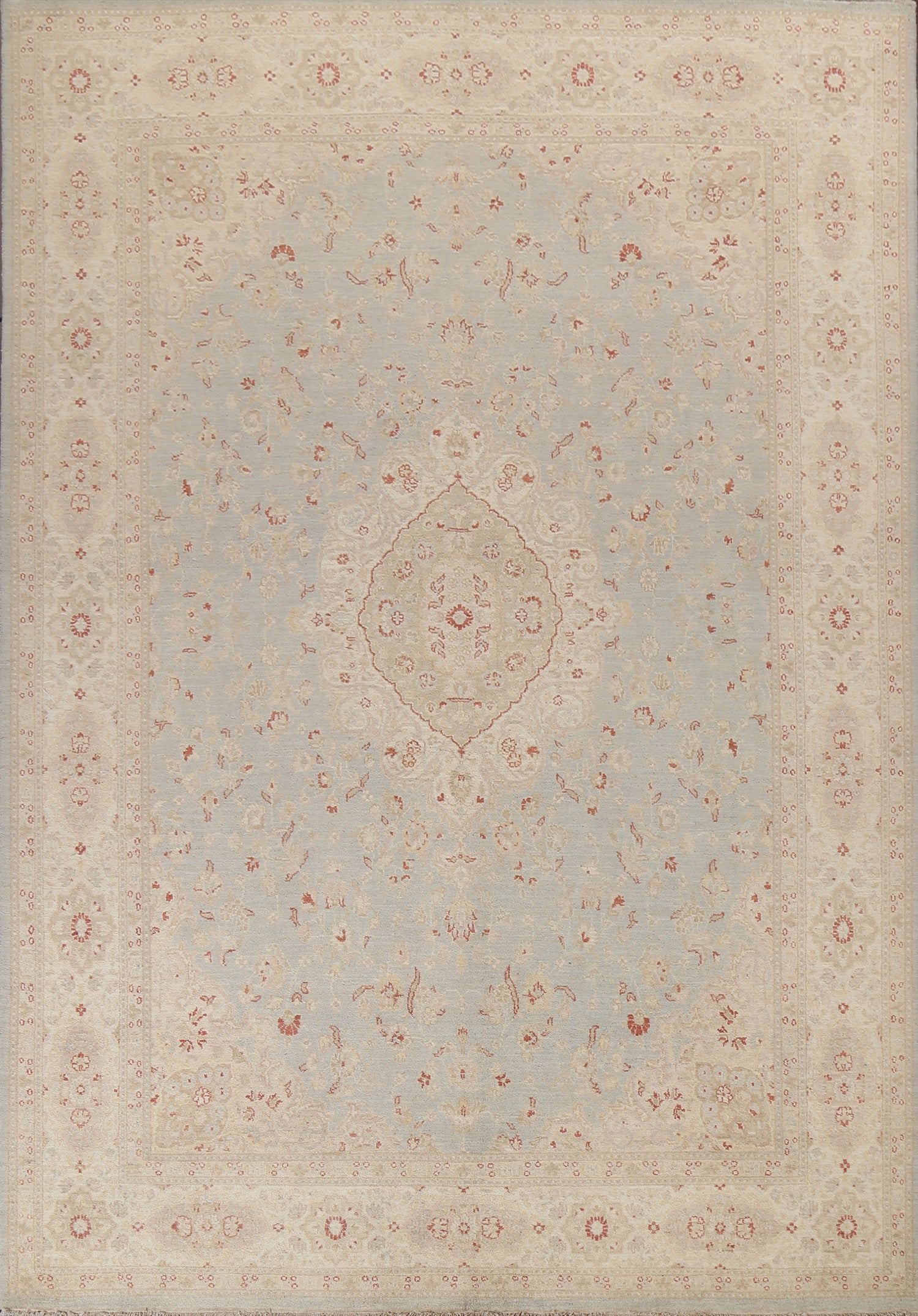 A Beautiful Genuine Pakistan Oushak-Chobi rug is Hand Knotted by skillful weavers in Pakistan with 100% Wool Material. This rug is in New, First Quality condition. dimensions are 11' 8'' X 8' 11'' in foot and 356 X 272 in centimeter. the primary color is Greys & Charcoal.