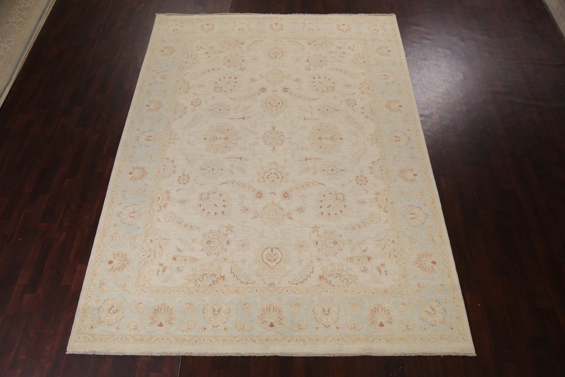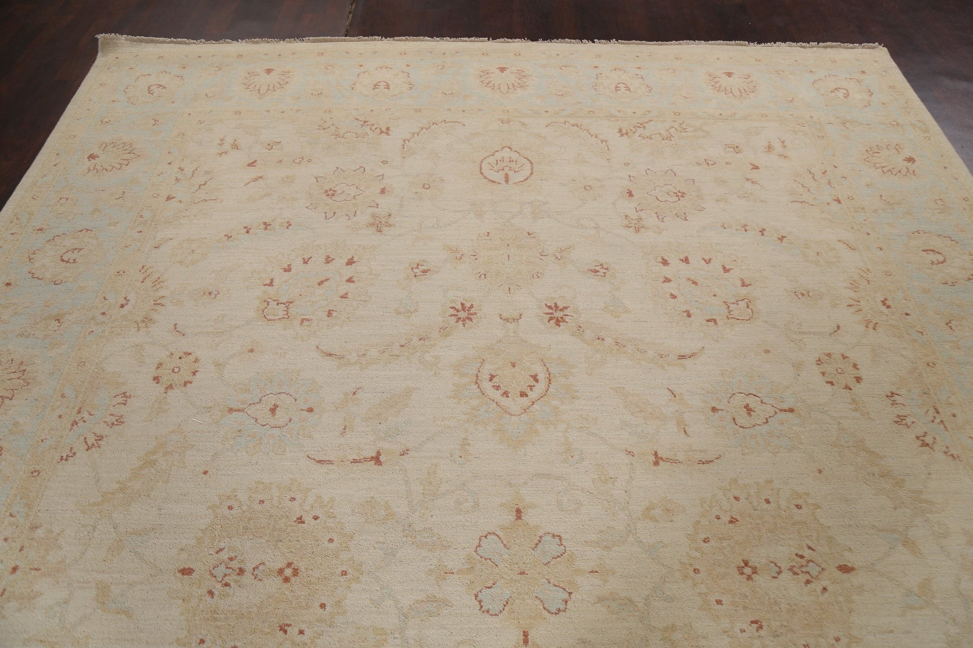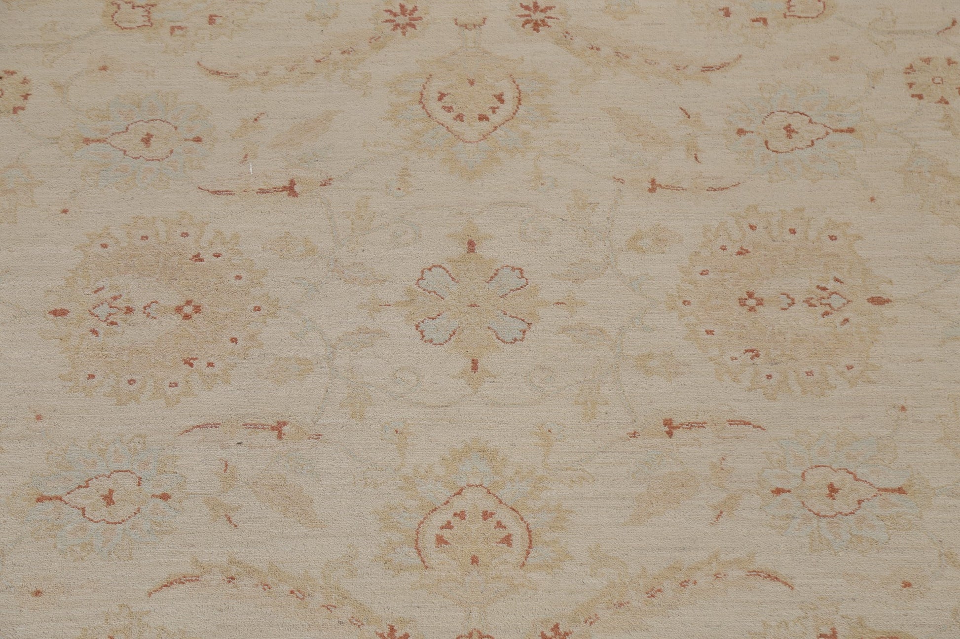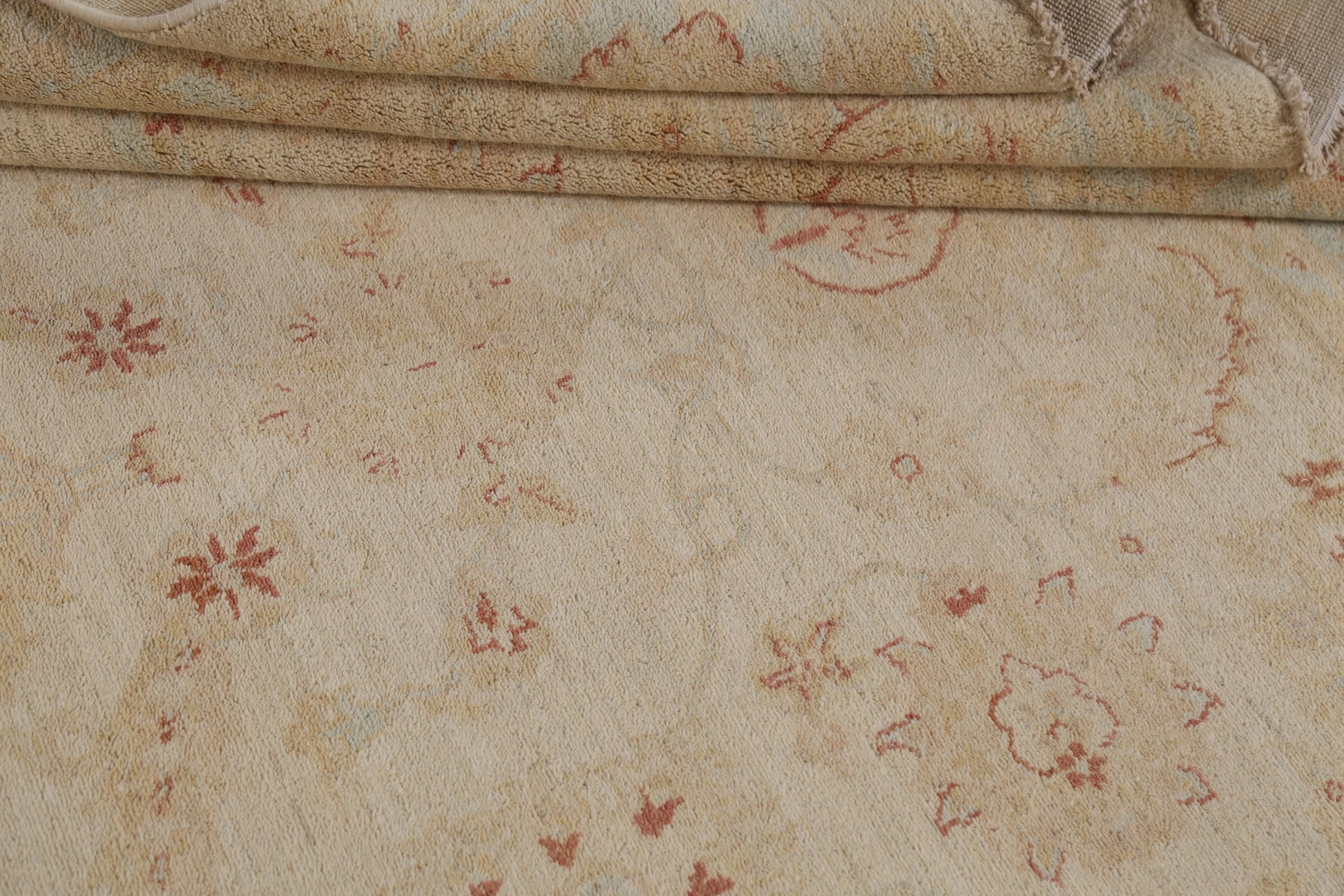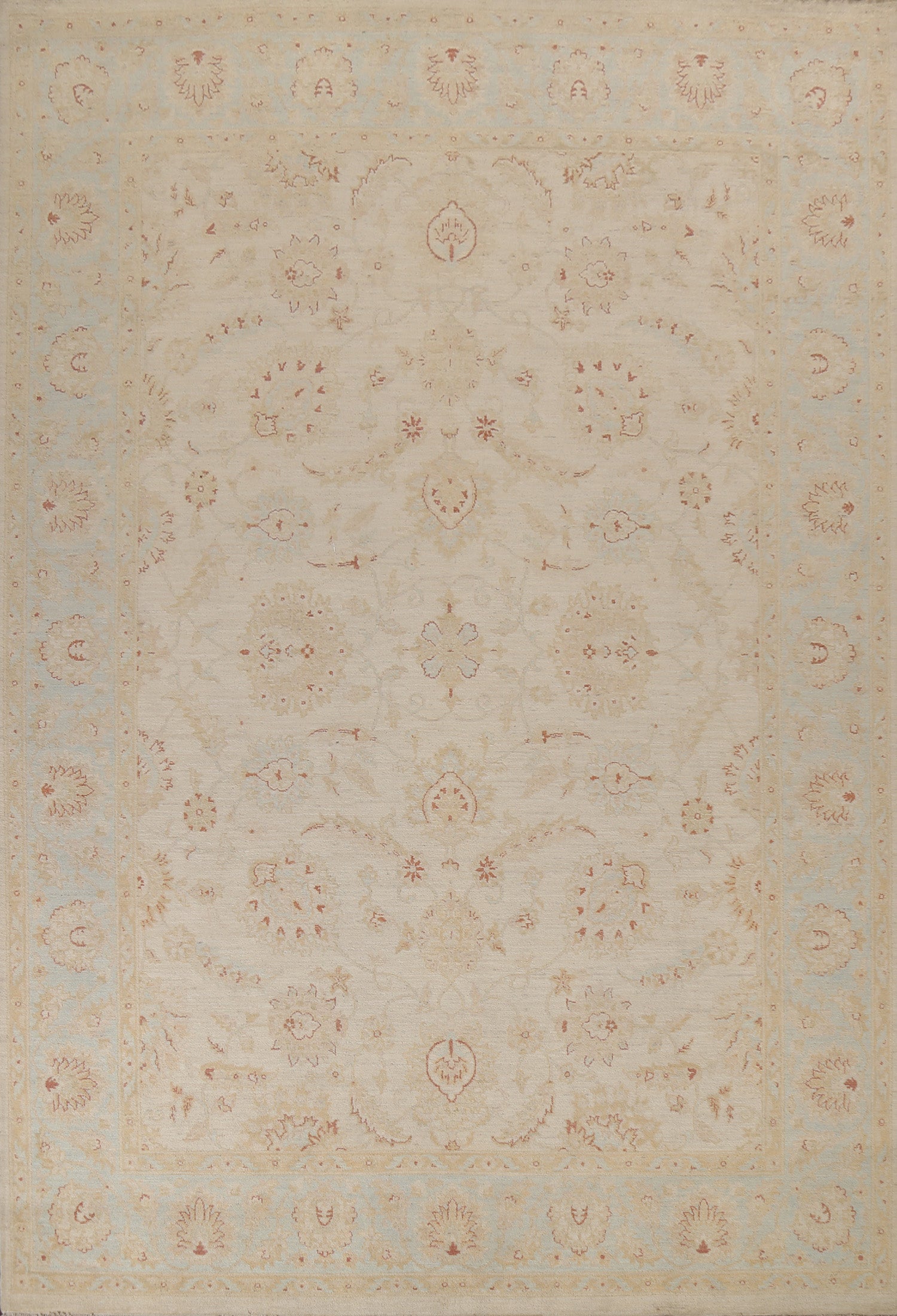 A Beautiful Genuine Pakistan Chobi-Peshawar rug is Hand Knotted by skillful weavers in Pakistan with 100% Wool Material. This rug is in New, First Quality condition. dimensions are 11' 11'' X 8' 11'' in foot and 363 X 272 in centimeter. the primary color is Beige & Ivories.