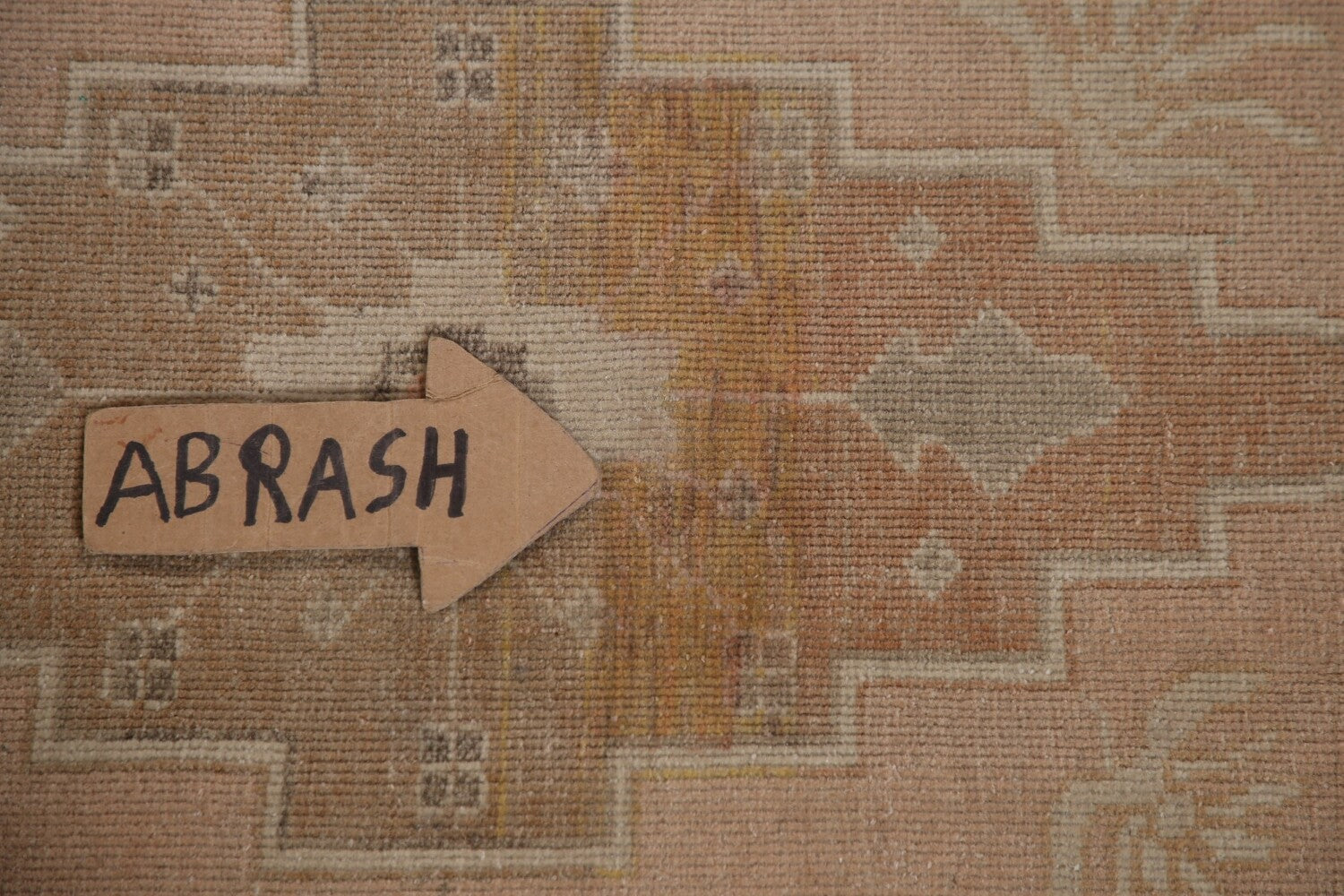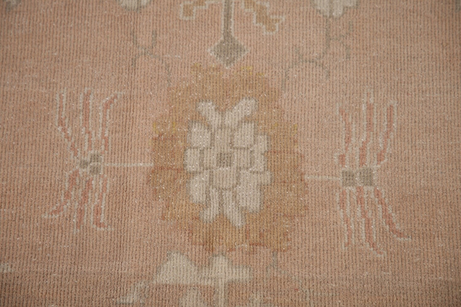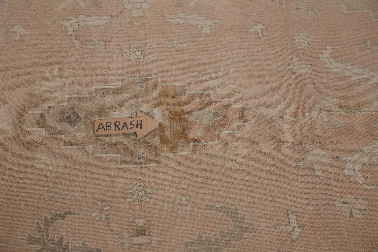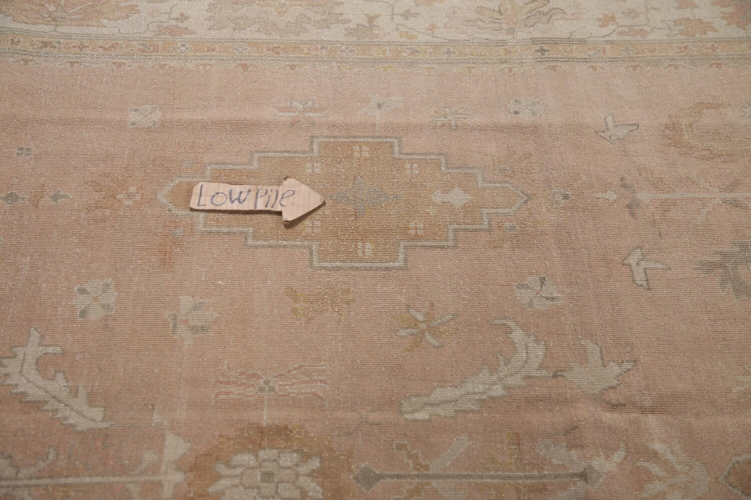 A Beautiful Genuine Egypt Oushak rug is Hand Knotted by skillful weavers in Egypt with 100% Wool Material. This rug is in Very Good (Low Pile-Abrash) condition. dimensions are 10' 8'' X 6' 11'' in foot and 325 X 211 in centimeter. the primary color is Coral.