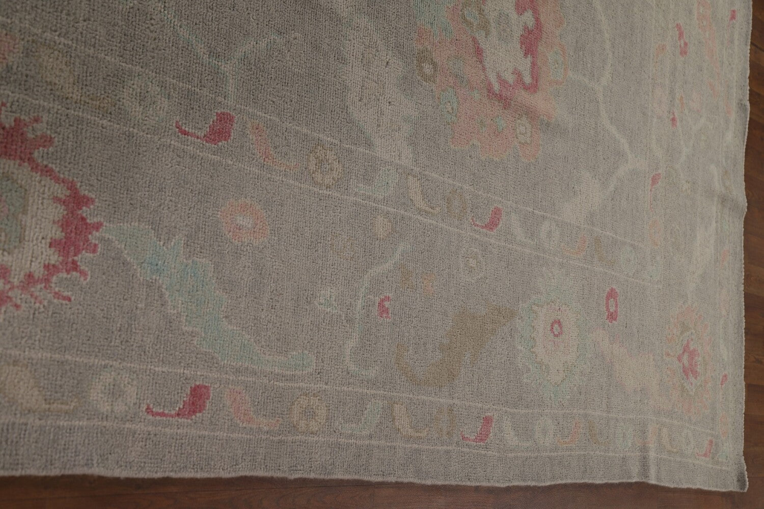 A Beautiful Genuine Turkey Oushak rug is Hand Knotted by skillful weavers in Turkey with 100% Wool Material. This rug is in New, First Quality condition. dimensions are 14' 1'' X 10' 0'' in foot and 429 X 305 in centimeter. the primary color is Greys & Charcoal.
