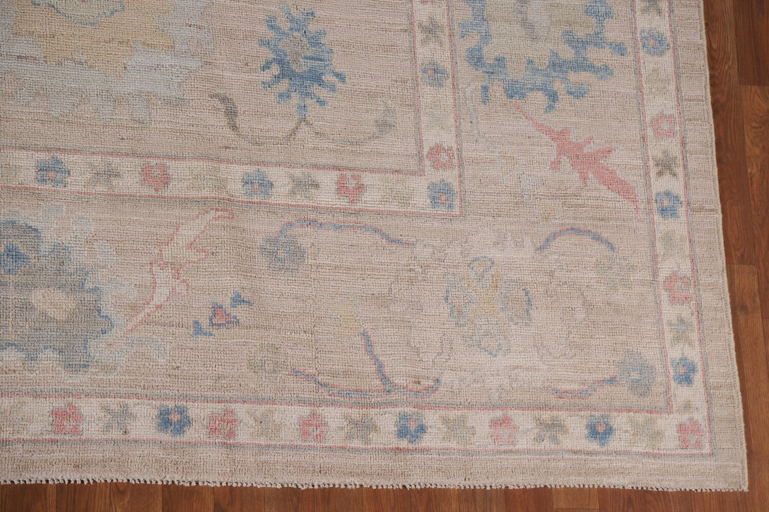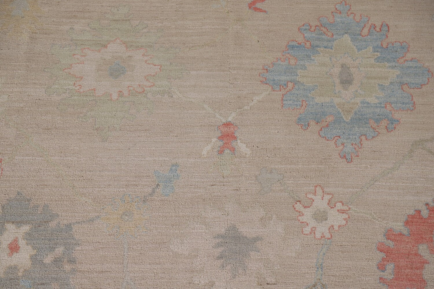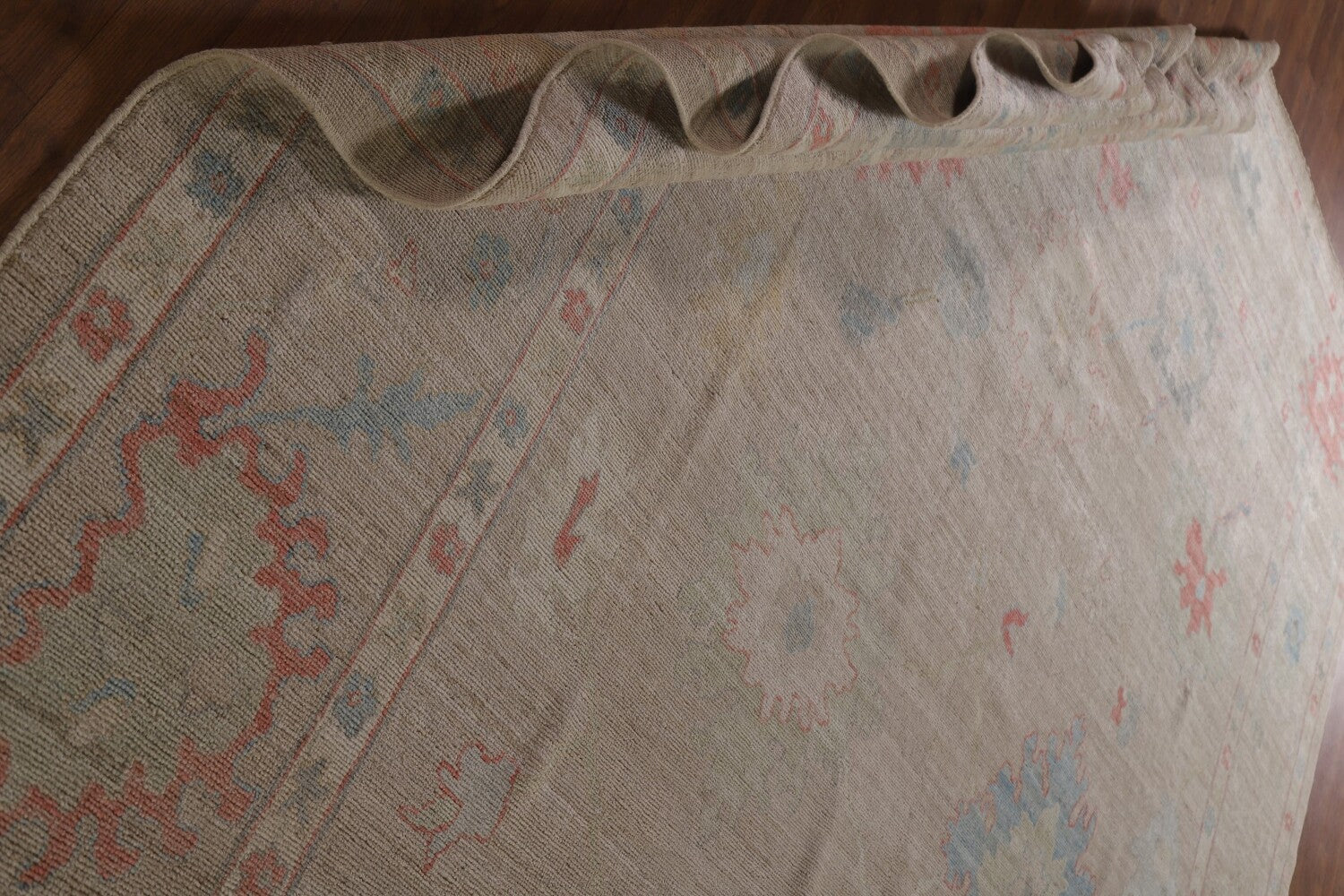 A Beautiful Genuine Turkey Oushak rug is Hand Knotted by skillful weavers in Turkey with 100% Wool Material. This rug is in New, First Quality condition. dimensions are 13' 10'' X 10' 5'' in foot and 422 X 318 in centimeter. the primary color is Beige & Ivories.