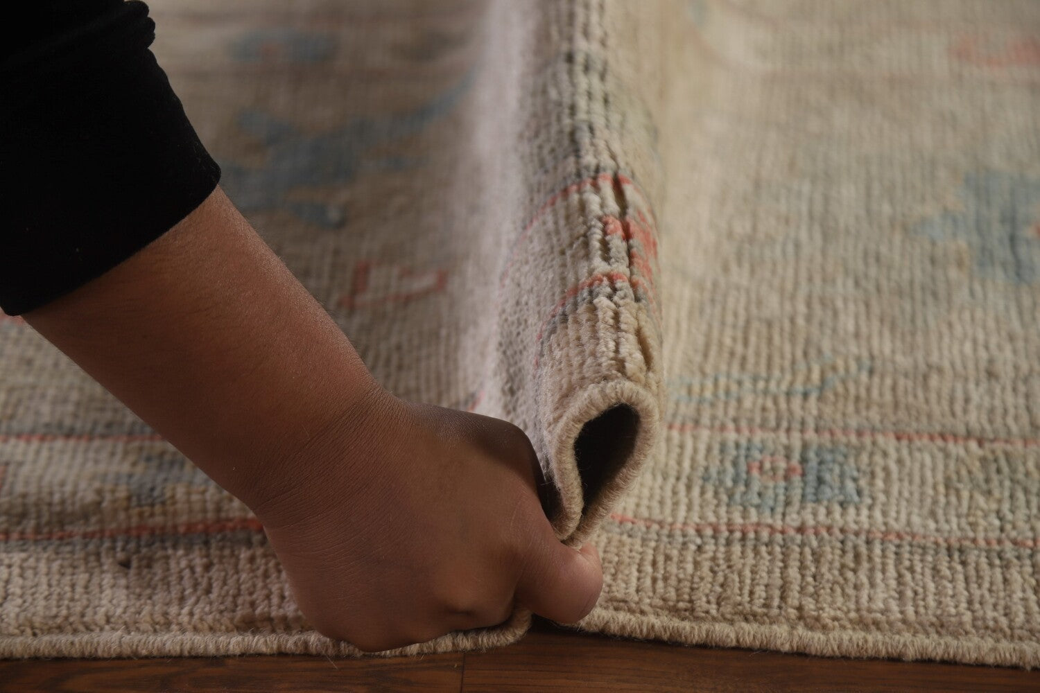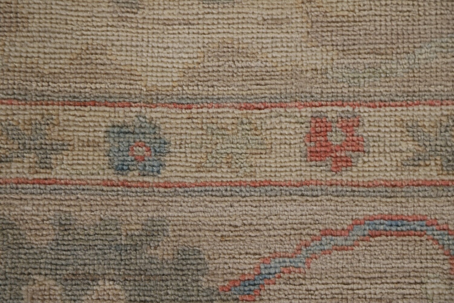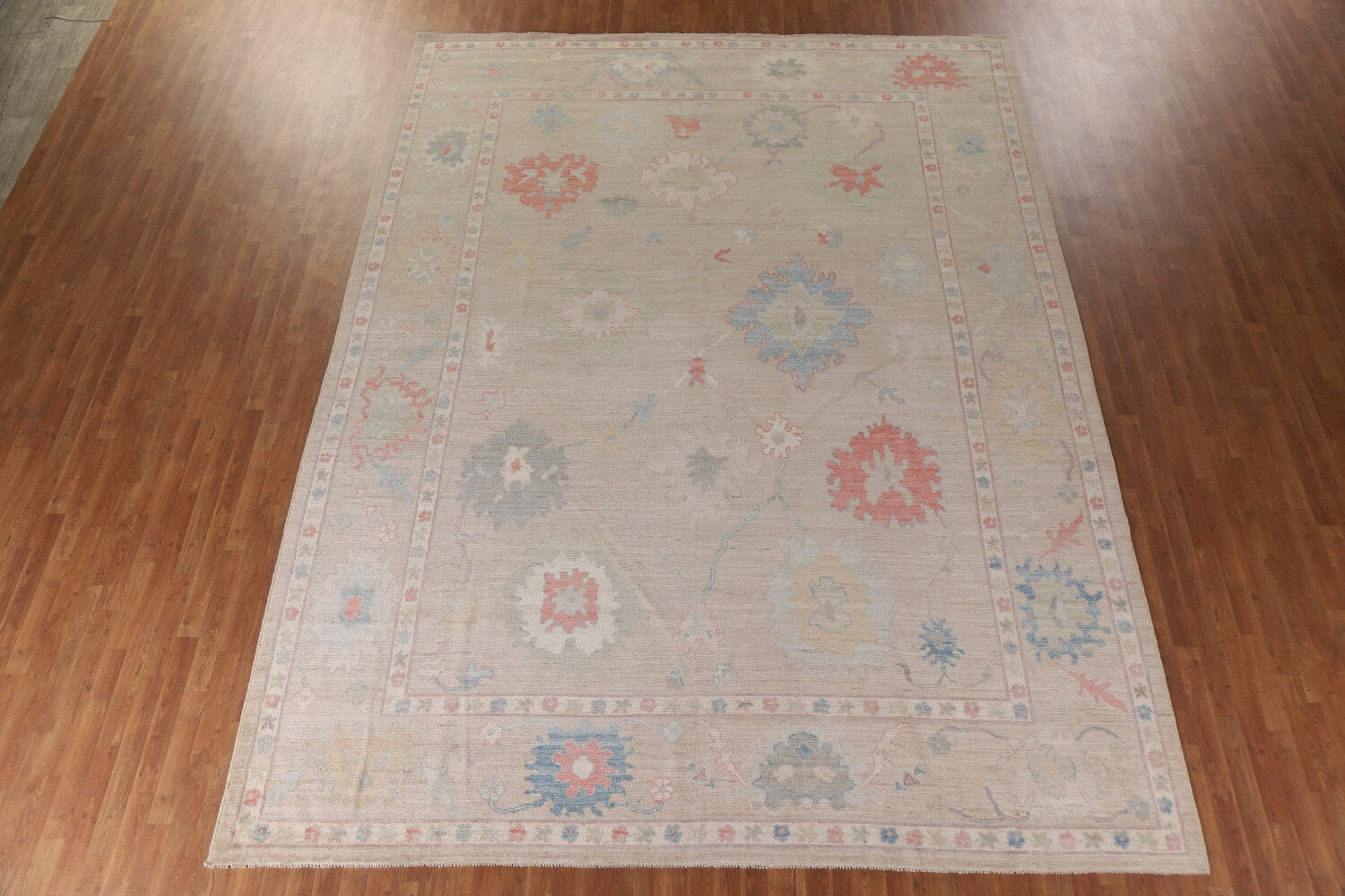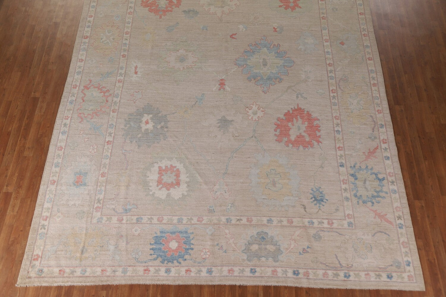 A Beautiful Genuine Turkey Oushak rug is Hand Knotted by skillful weavers in Turkey with 100% Wool Material. This rug is in New, First Quality condition. dimensions are 13' 10'' X 10' 5'' in foot and 422 X 318 in centimeter. the primary color is Beige & Ivories.