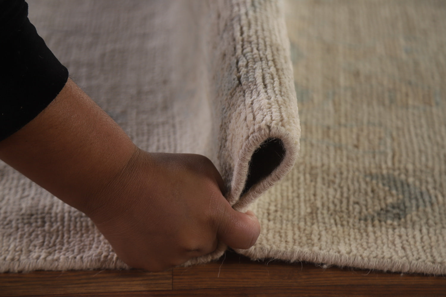 A Beautiful Genuine Turkey Oushak rug is Hand Knotted by skillful weavers in Turkey with 100% Wool Material. This rug is in New, First Quality condition. dimensions are 13' 6'' X 9' 10'' in foot and 411 X 300 in centimeter. the primary color is Beige & Ivories.