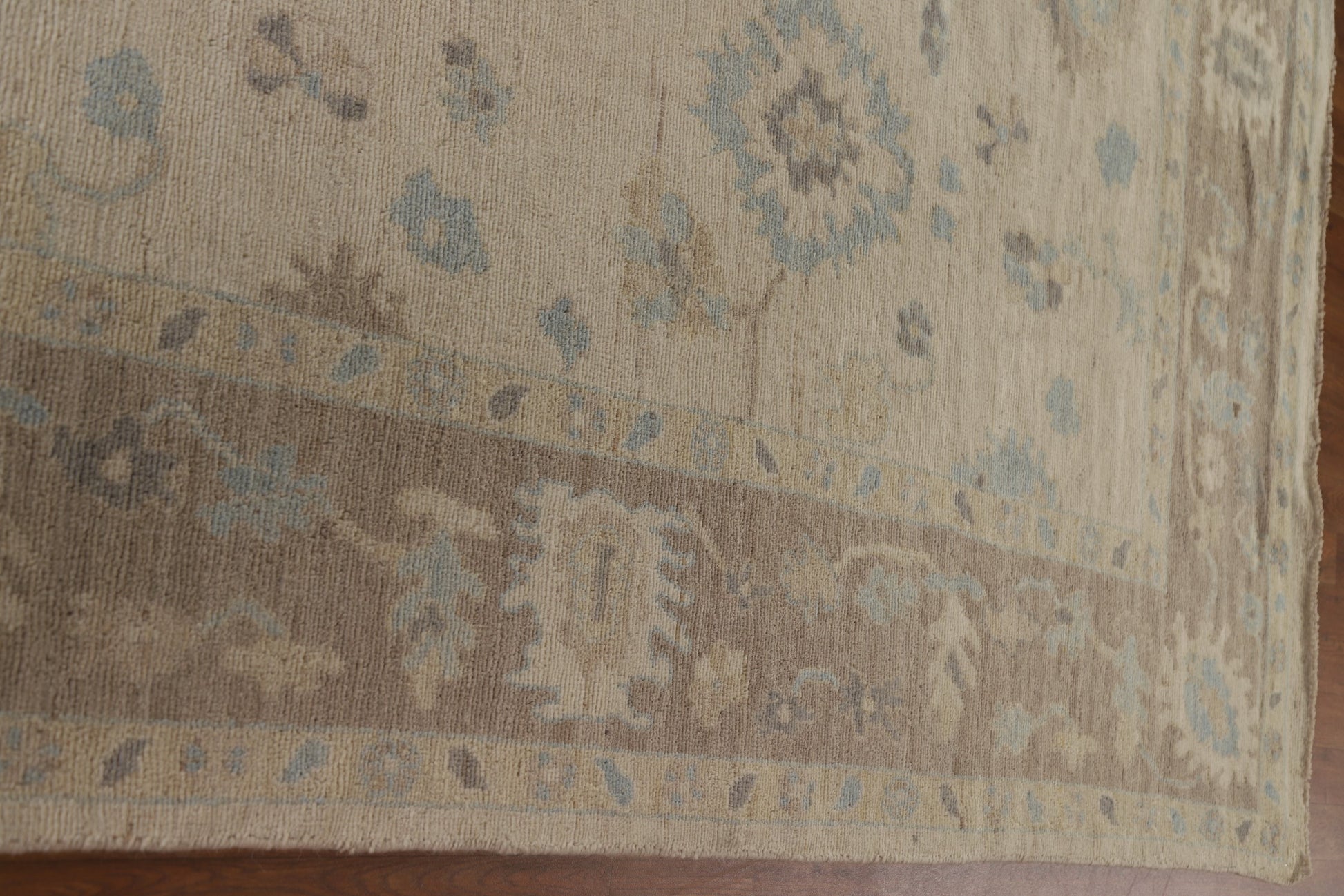 A Beautiful Genuine Turkey Oushak rug is Hand Knotted by skillful weavers in Turkey with 100% Wool Material. This rug is in Brand New-Excellent condition. dimensions are 13' 7'' X 10' 0'' in foot and 414 X 305 in centimeter. the primary color is Beige & Ivories.
