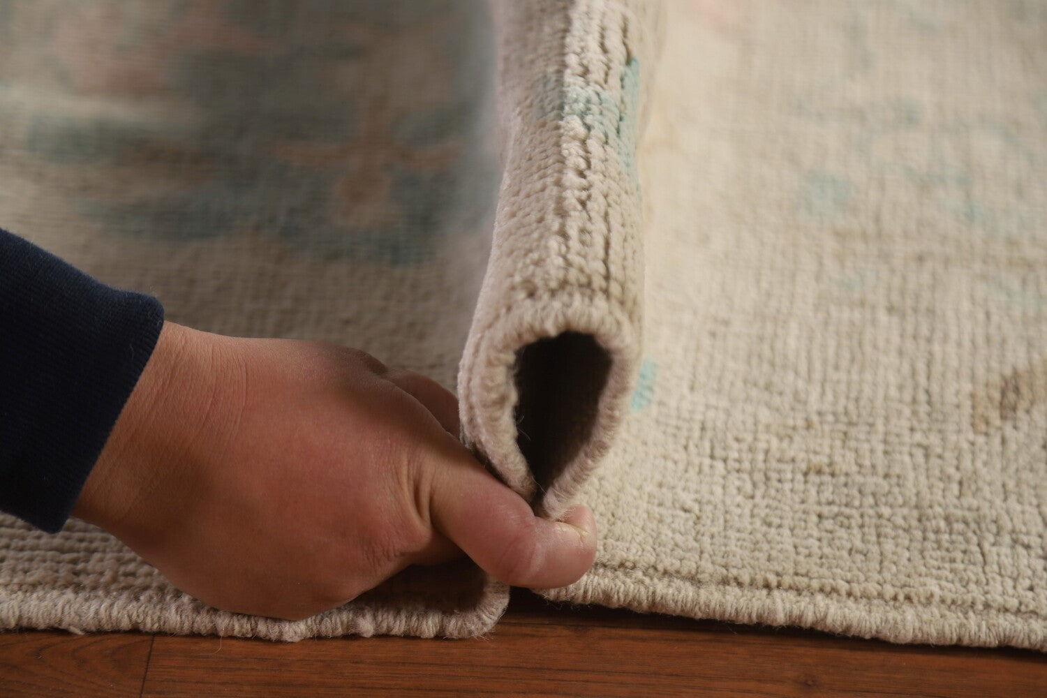 A Beautiful Genuine Turkey Oushak rug is Hand Knotted by skillful weavers in Turkey with 100% Wool Material. This rug is in New, First Quality condition. dimensions are 14' 0'' X 10' 1'' in foot and 427 X 307 in centimeter. the primary color is Beige & Ivories.