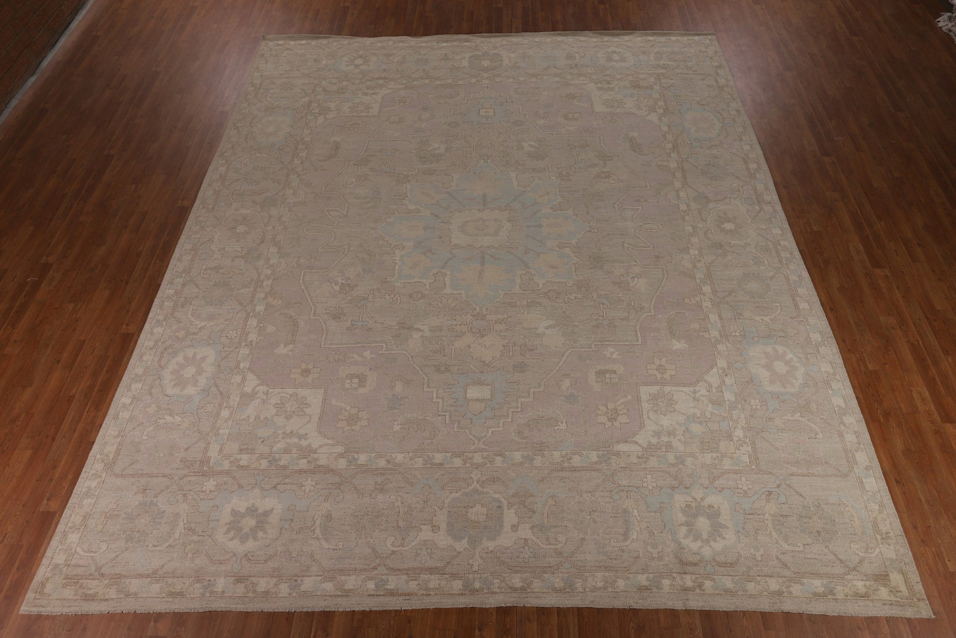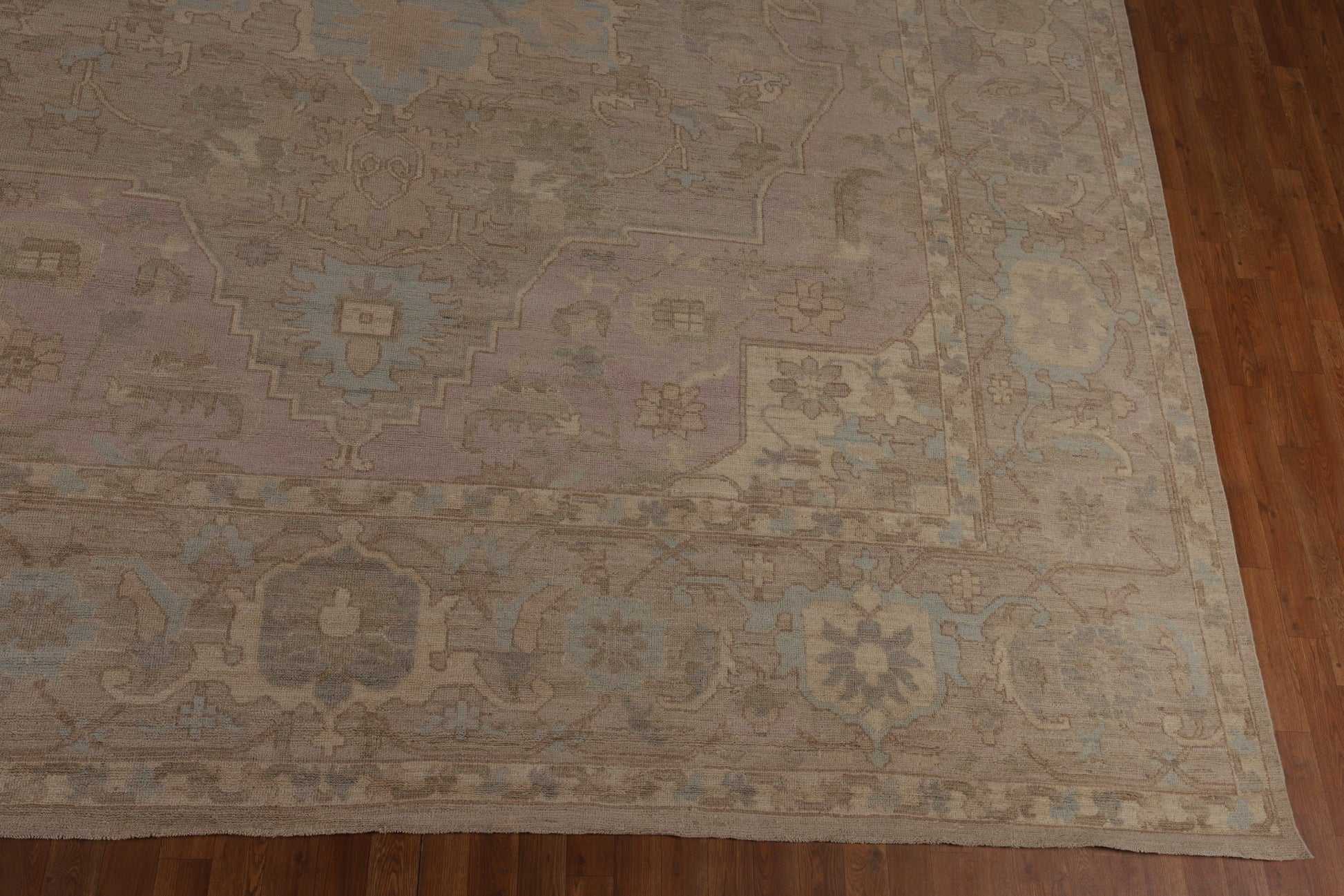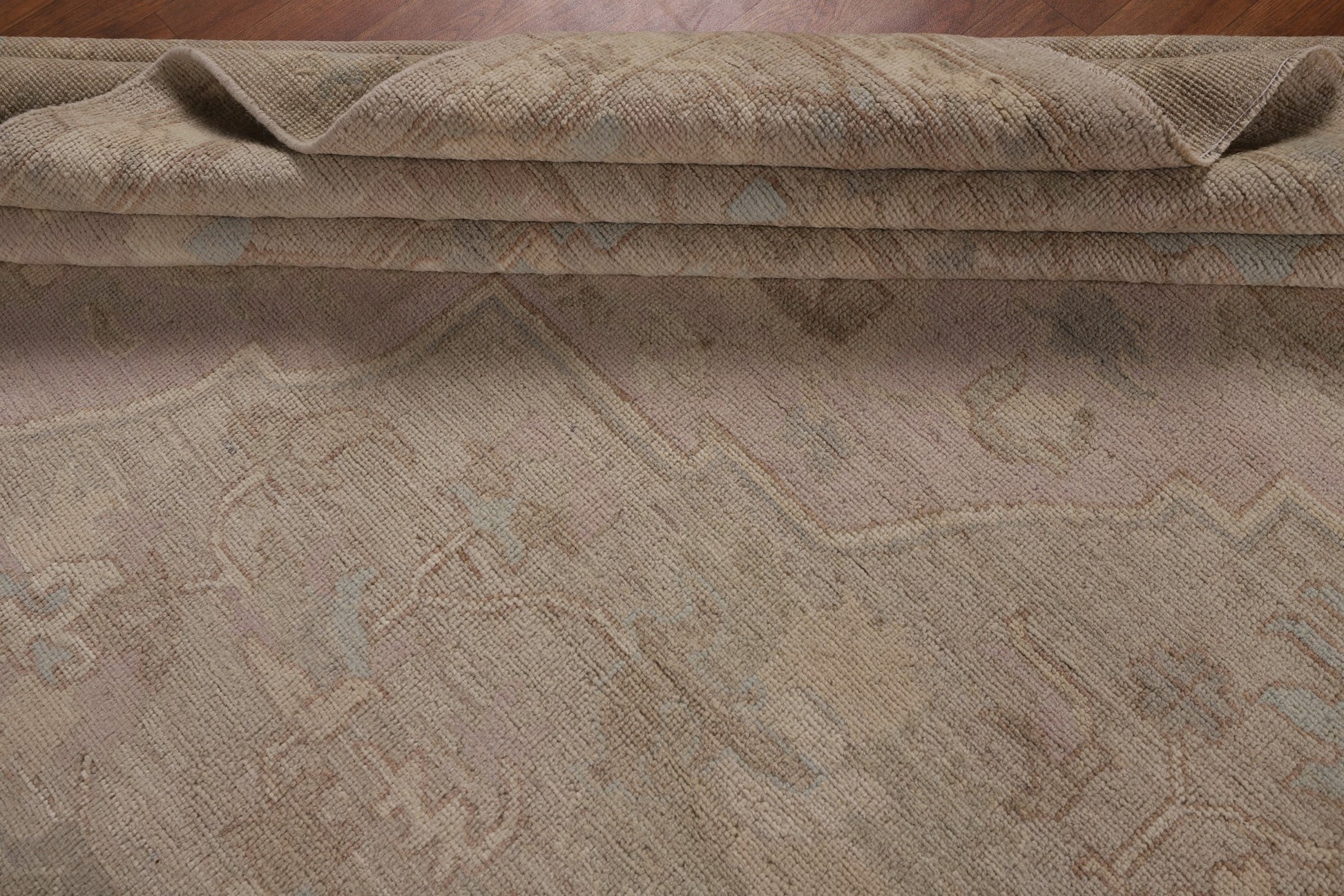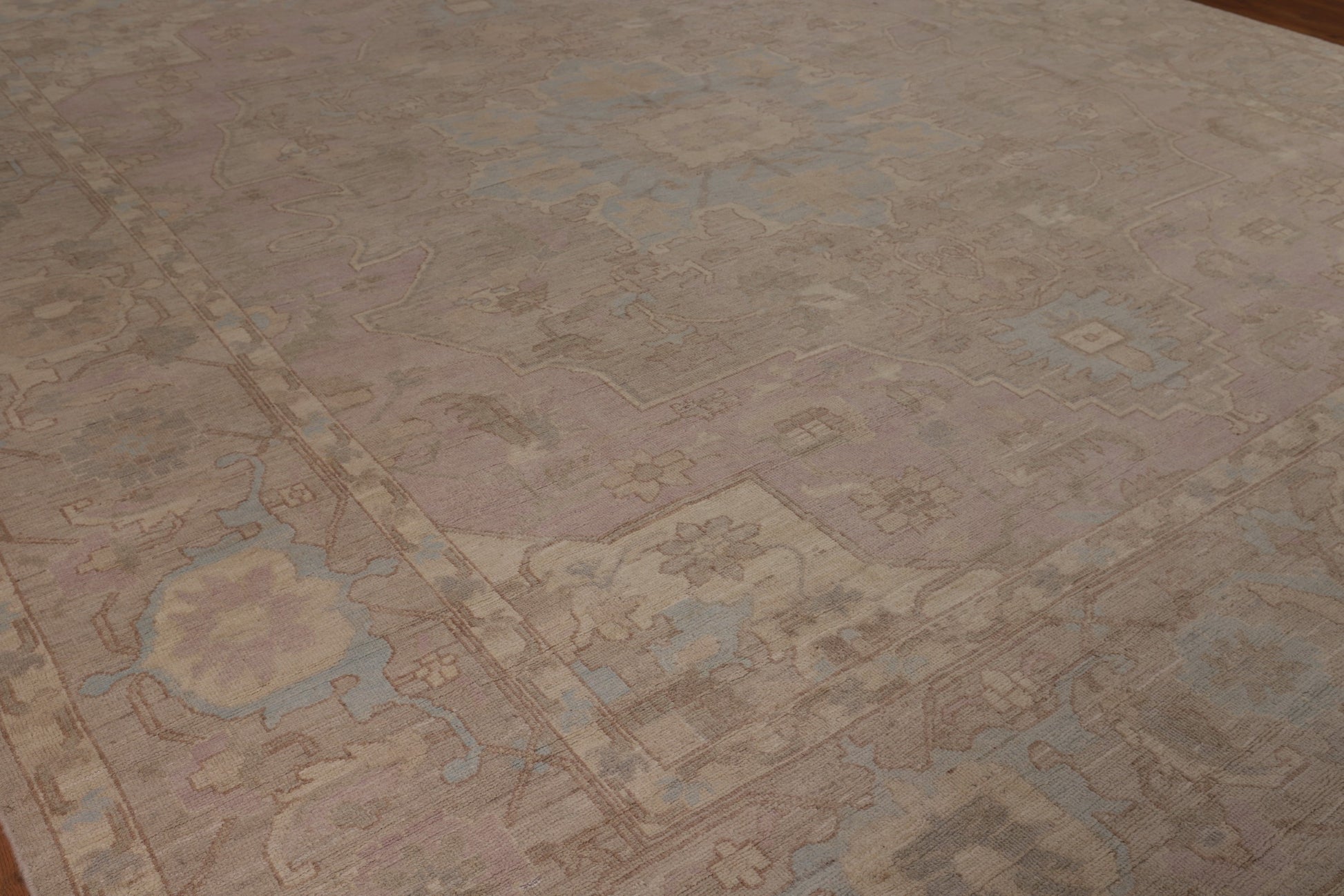 A Beautiful Genuine Turkey Oushak rug is Hand Knotted by skillful weavers in Turkey with 100% Wool Material. This rug is in New, First Quality condition. dimensions are 12' 3'' X 14' 4'' in foot and 373 X 437 in centimeter. the primary color is Beige & Ivories.