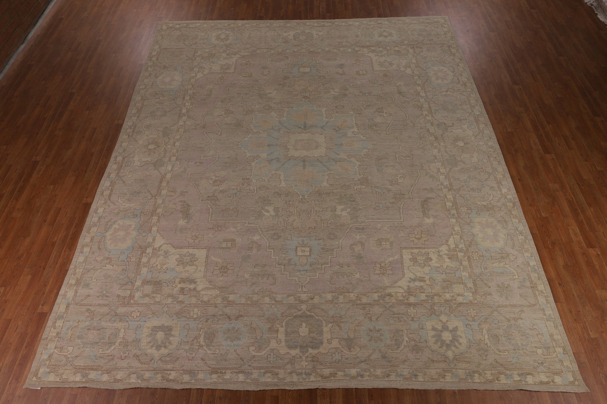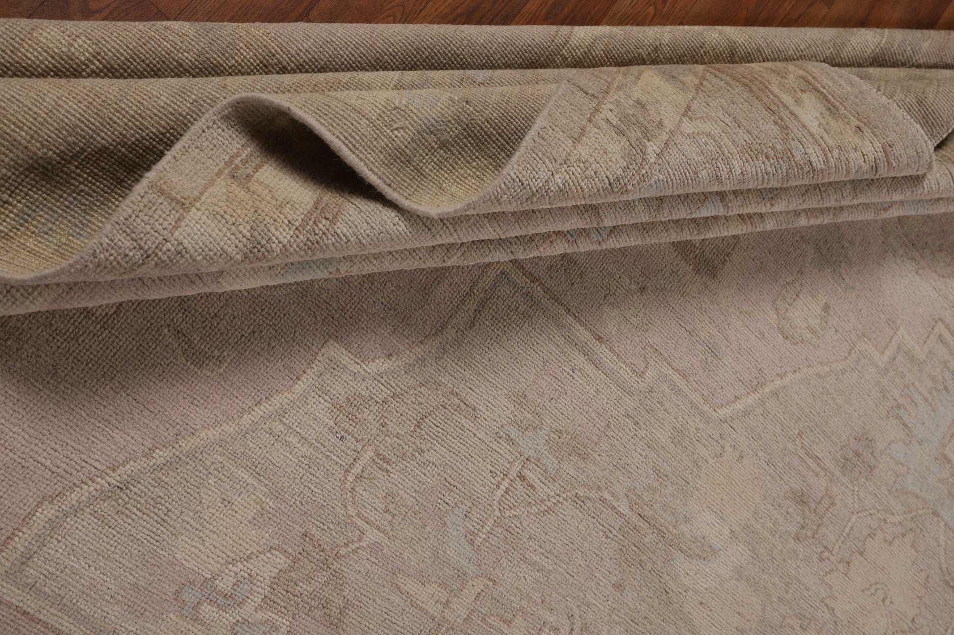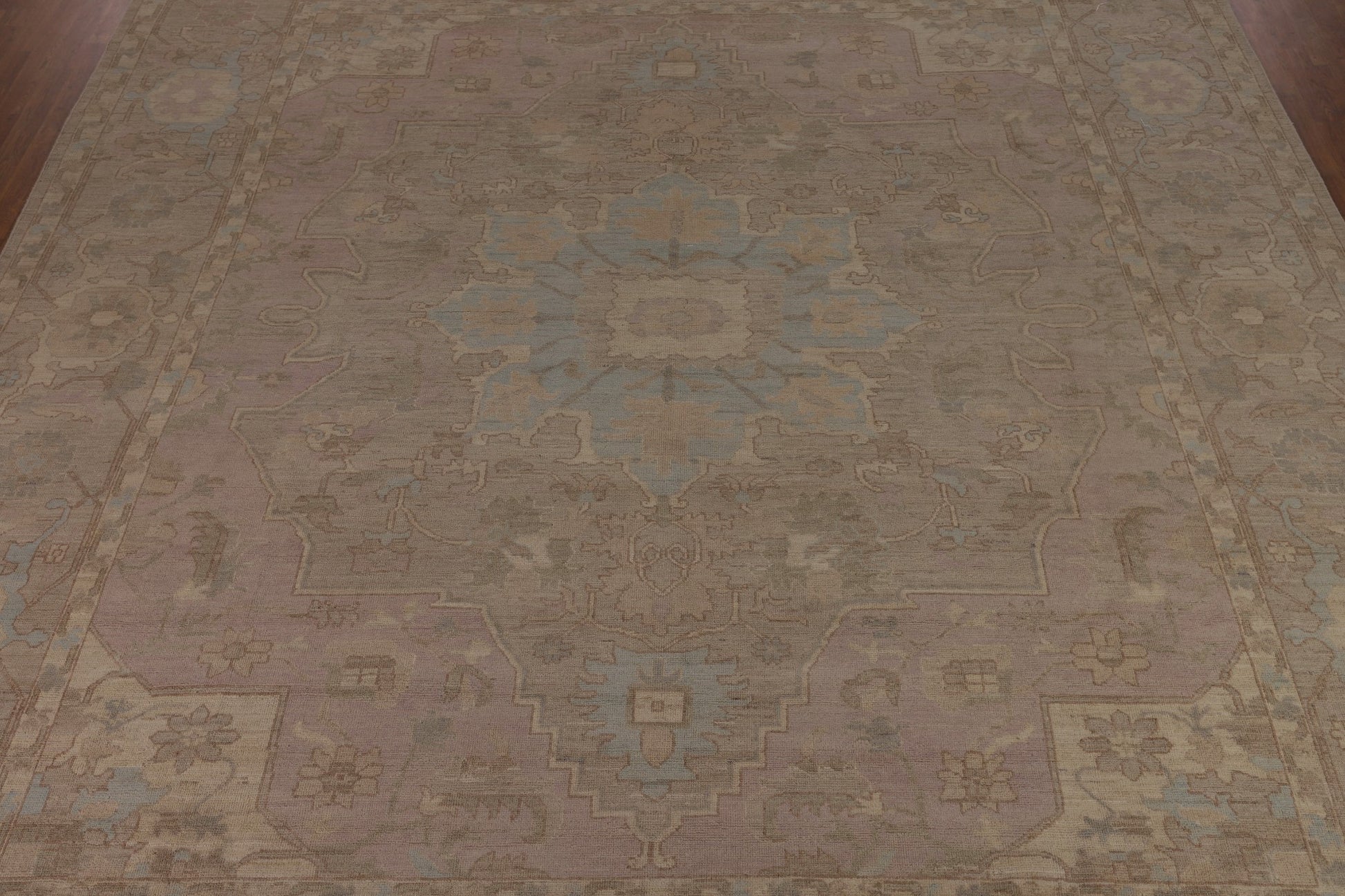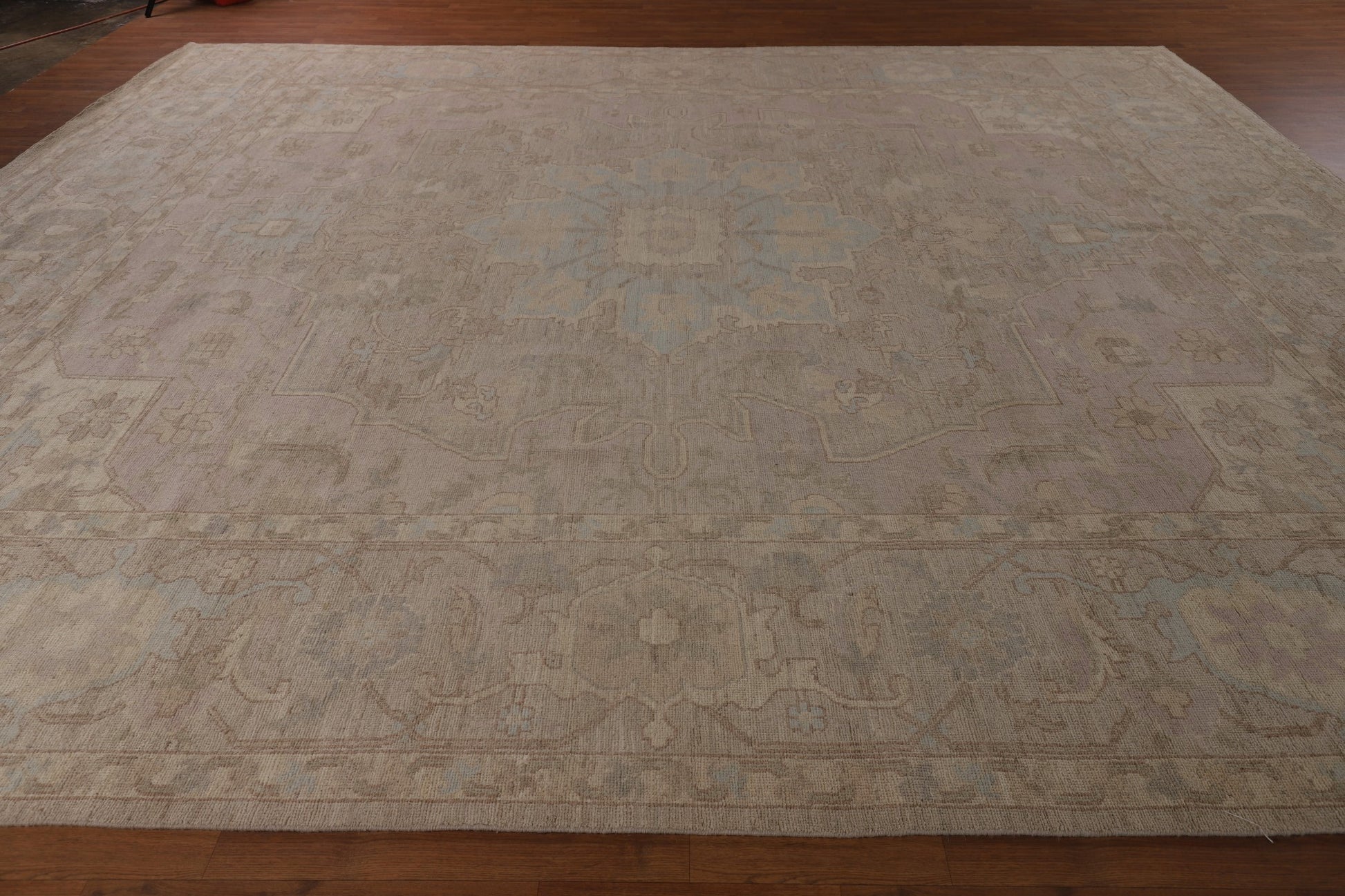 A Beautiful Genuine Turkey Oushak rug is Hand Knotted by skillful weavers in Turkey with 100% Wool Material. This rug is in New, First Quality condition. dimensions are 12' 3'' X 14' 4'' in foot and 373 X 437 in centimeter. the primary color is Beige & Ivories.