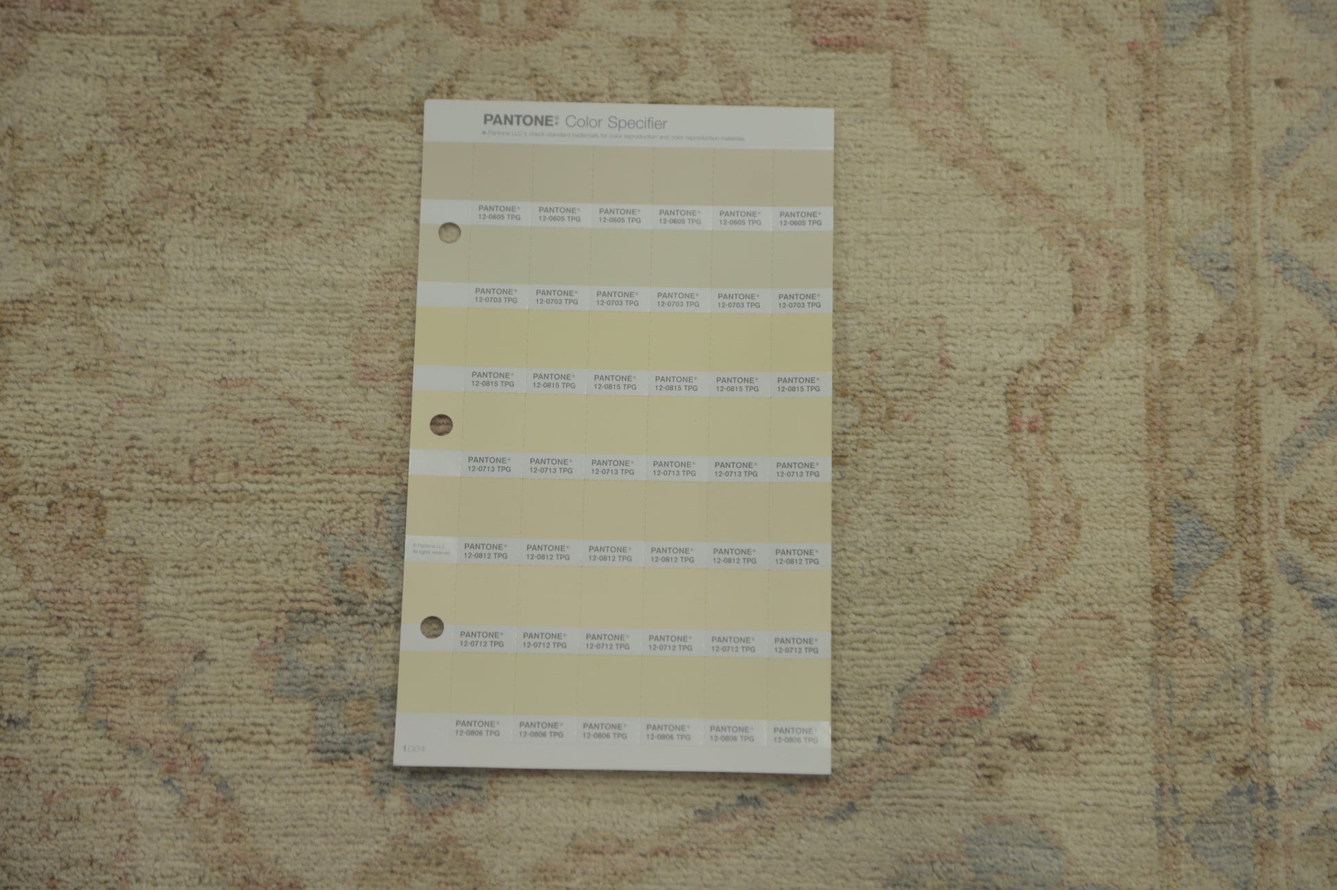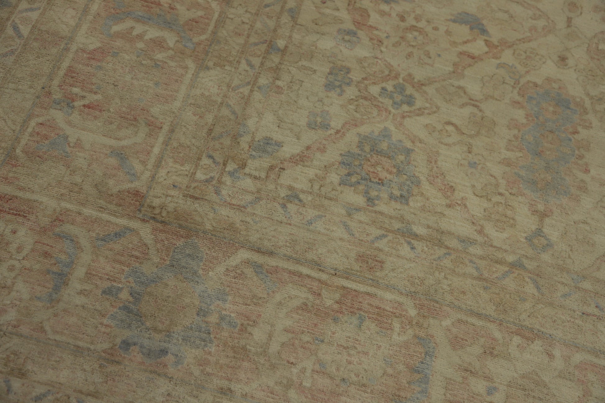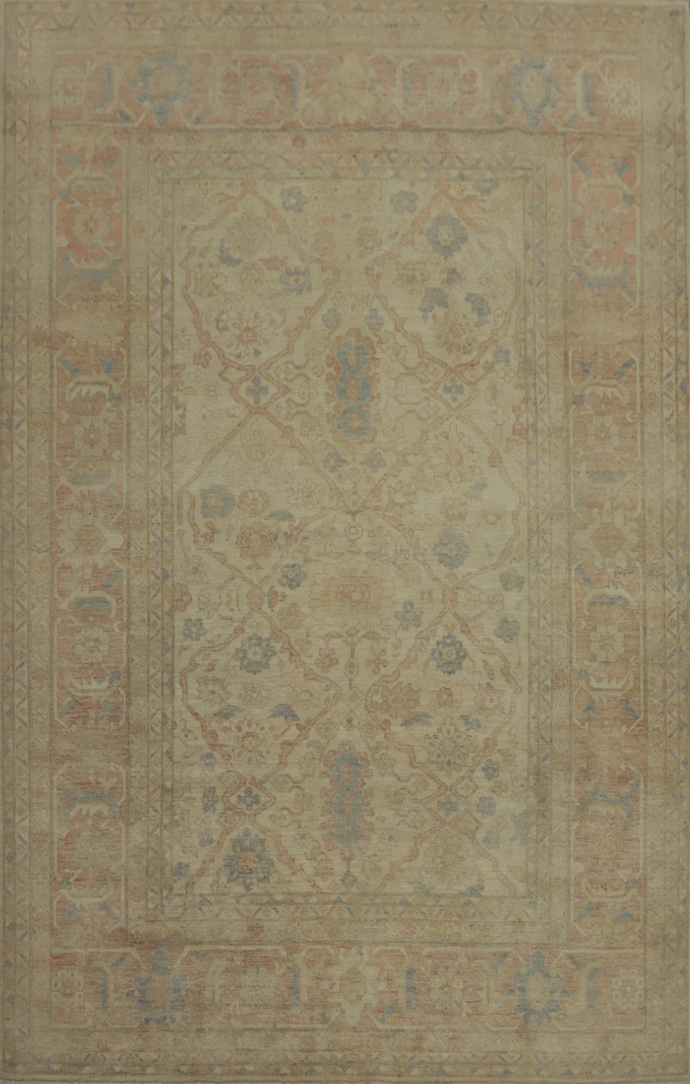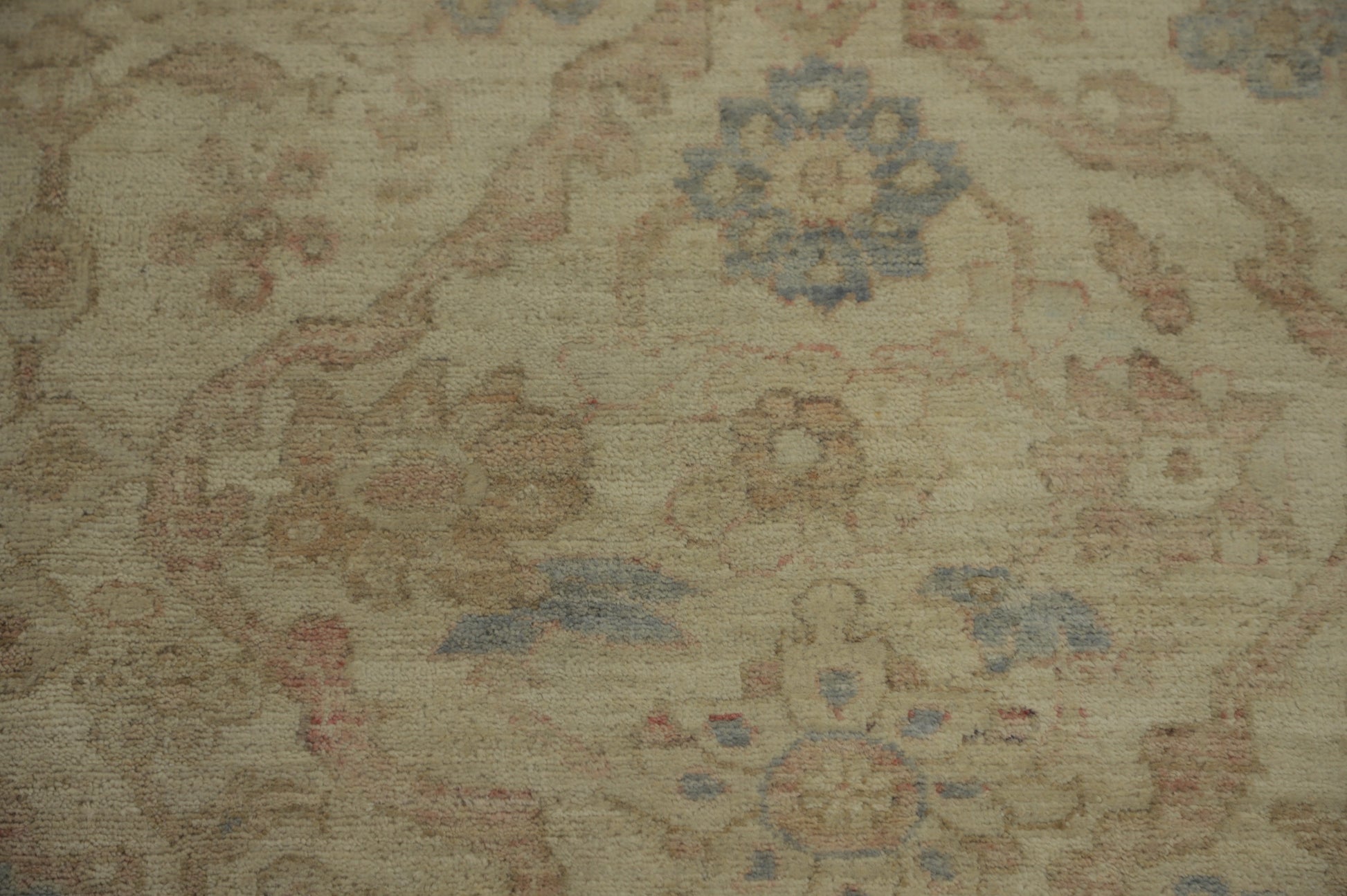 A Beautiful Genuine Pakistan Oushak rug is Hand Knotted by skillful weavers in Pakistan with 100% Wool Material. This rug is in New, First Quality condition. dimensions are 9' 7'' X 7' 1'' in foot and 292 X 216 in centimeter. the primary color is Beige & Ivories.