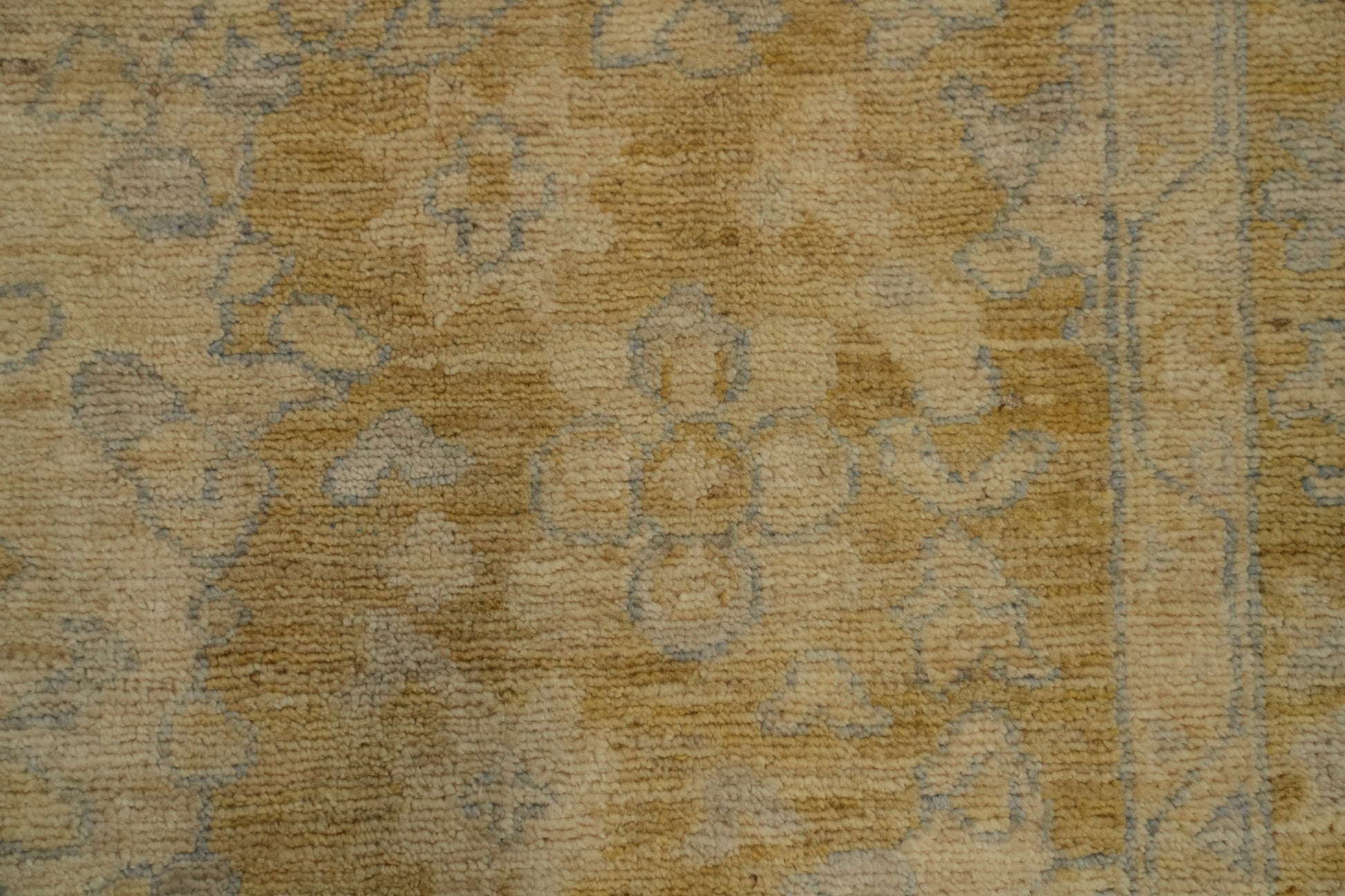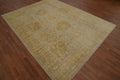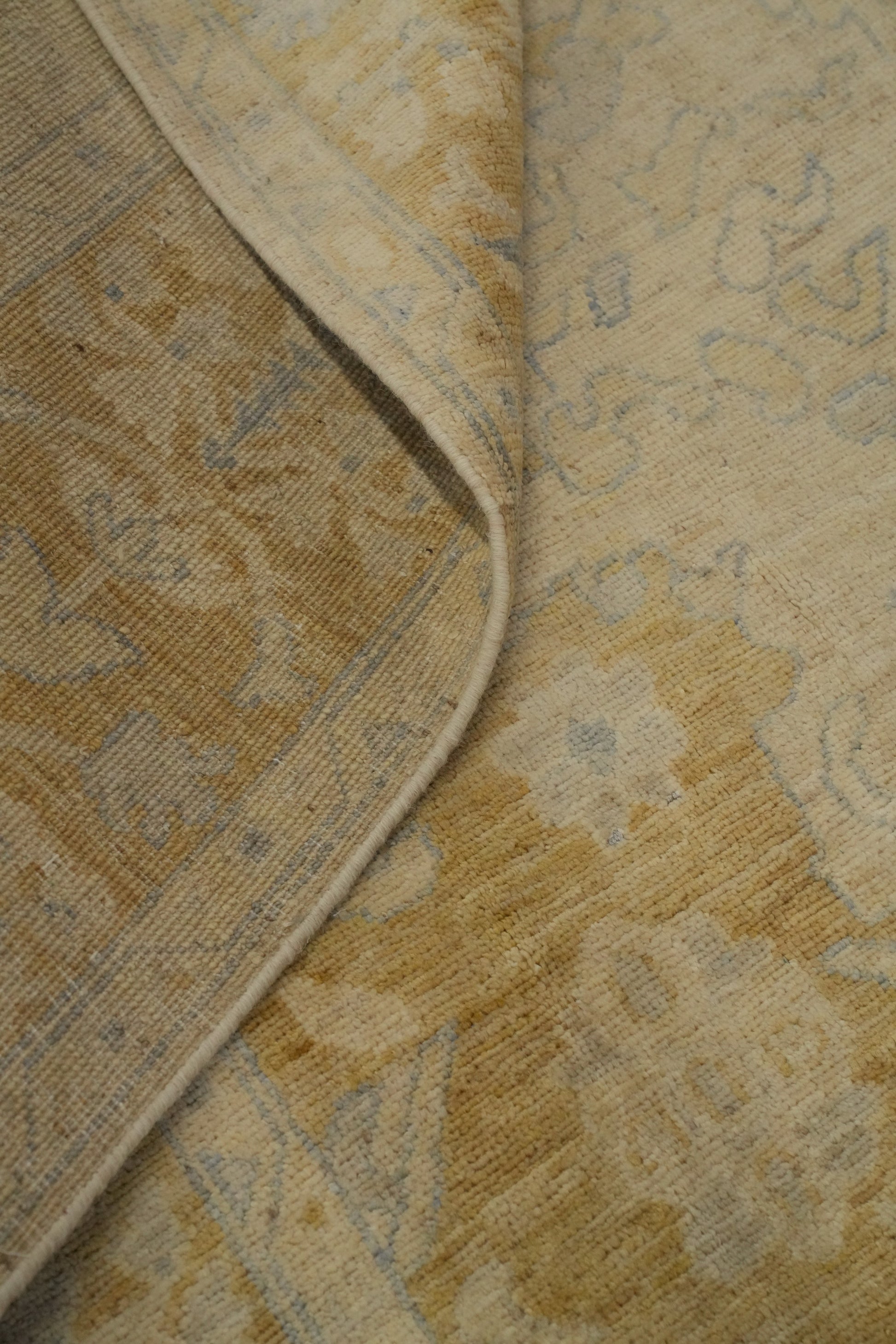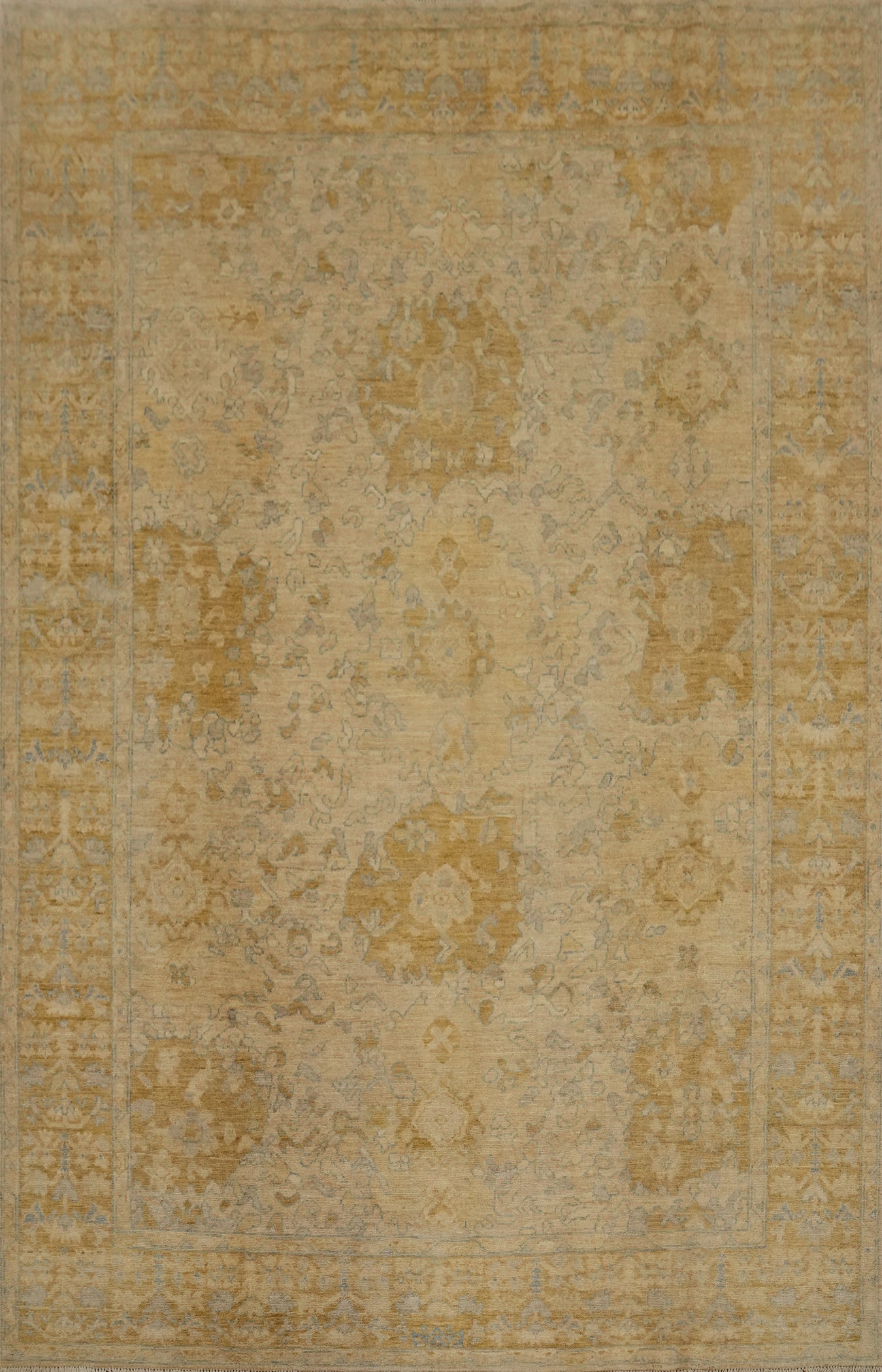 A Beautiful Genuine Pakistan Oushak rug is Hand Knotted by skillful weavers in Pakistan with 100% Wool Material. This rug is in New, First Quality condition. dimensions are 9' 2'' X 6' 10'' in foot and 279 X 208 in centimeter. the primary color is Beige & Ivories.