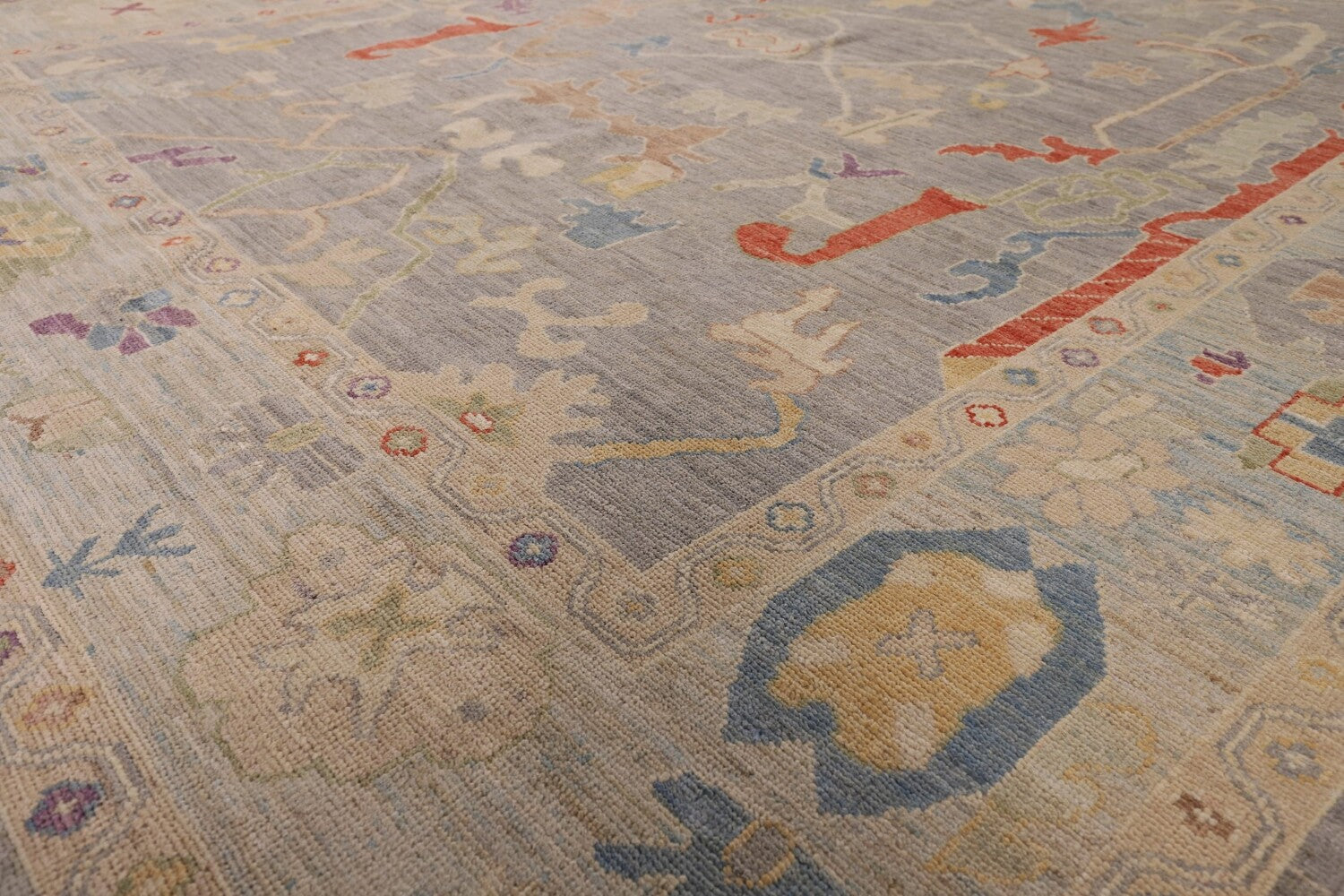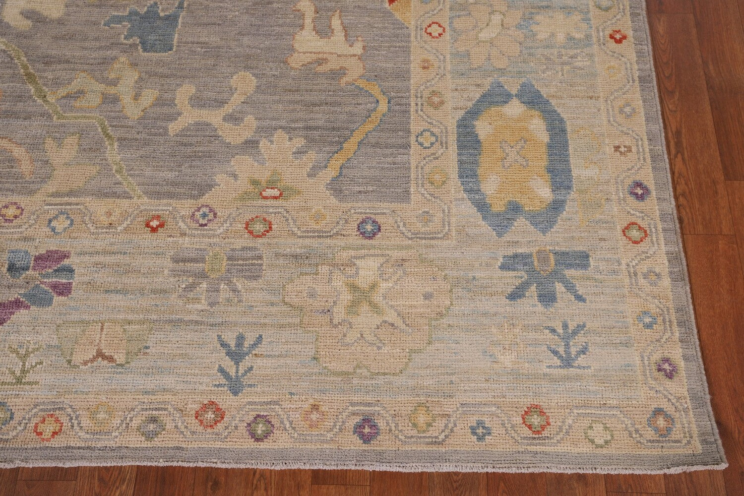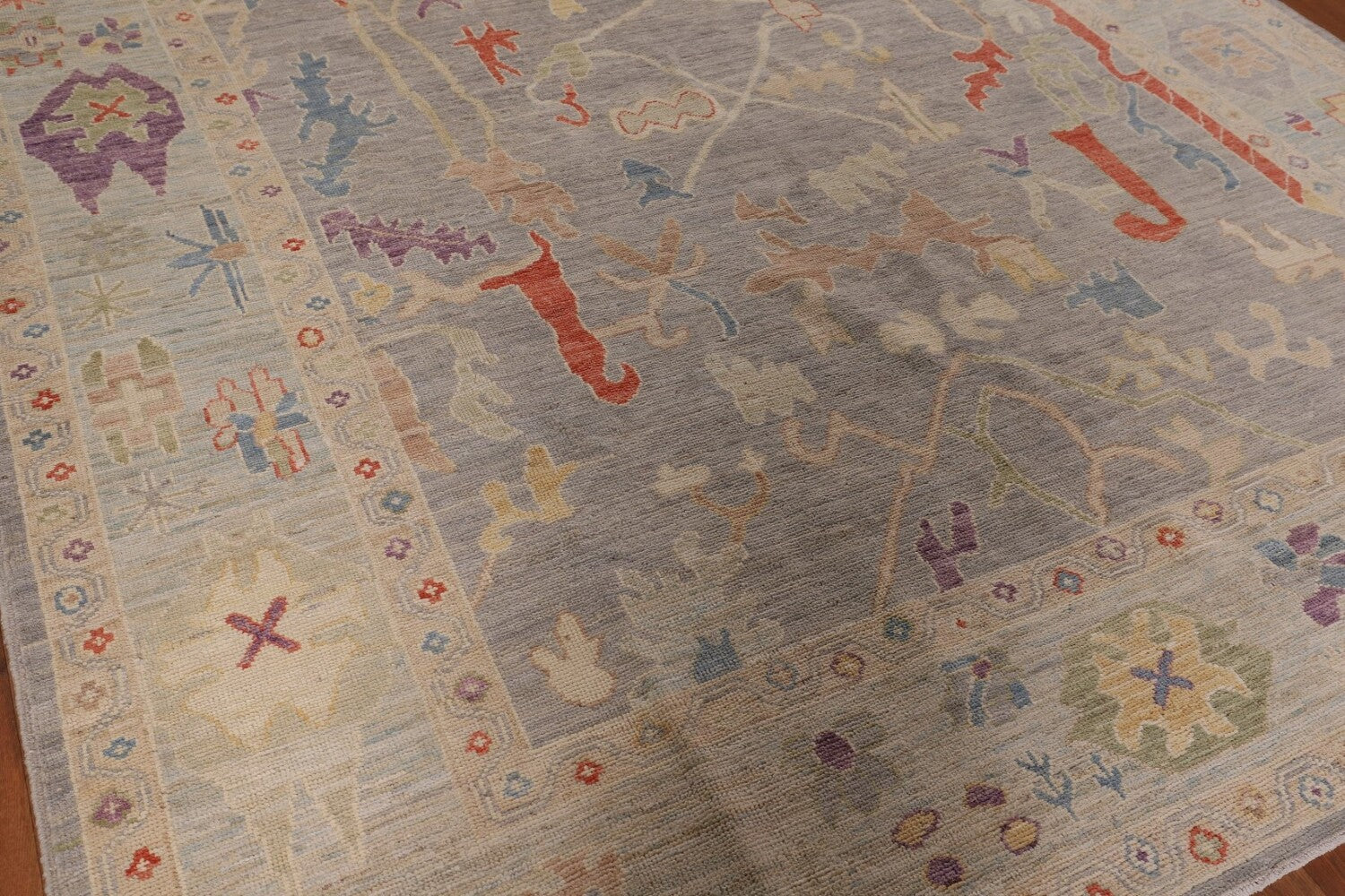 A Beautiful Genuine Turkey Oushak rug is Hand Knotted by skillful weavers in Turkey with 100% Wool Material. This rug is in New, First Quality condition. dimensions are 9' 9'' X 8' 0'' in foot and 297 X 244 in centimeter. the primary color is Greys & Charcoal.