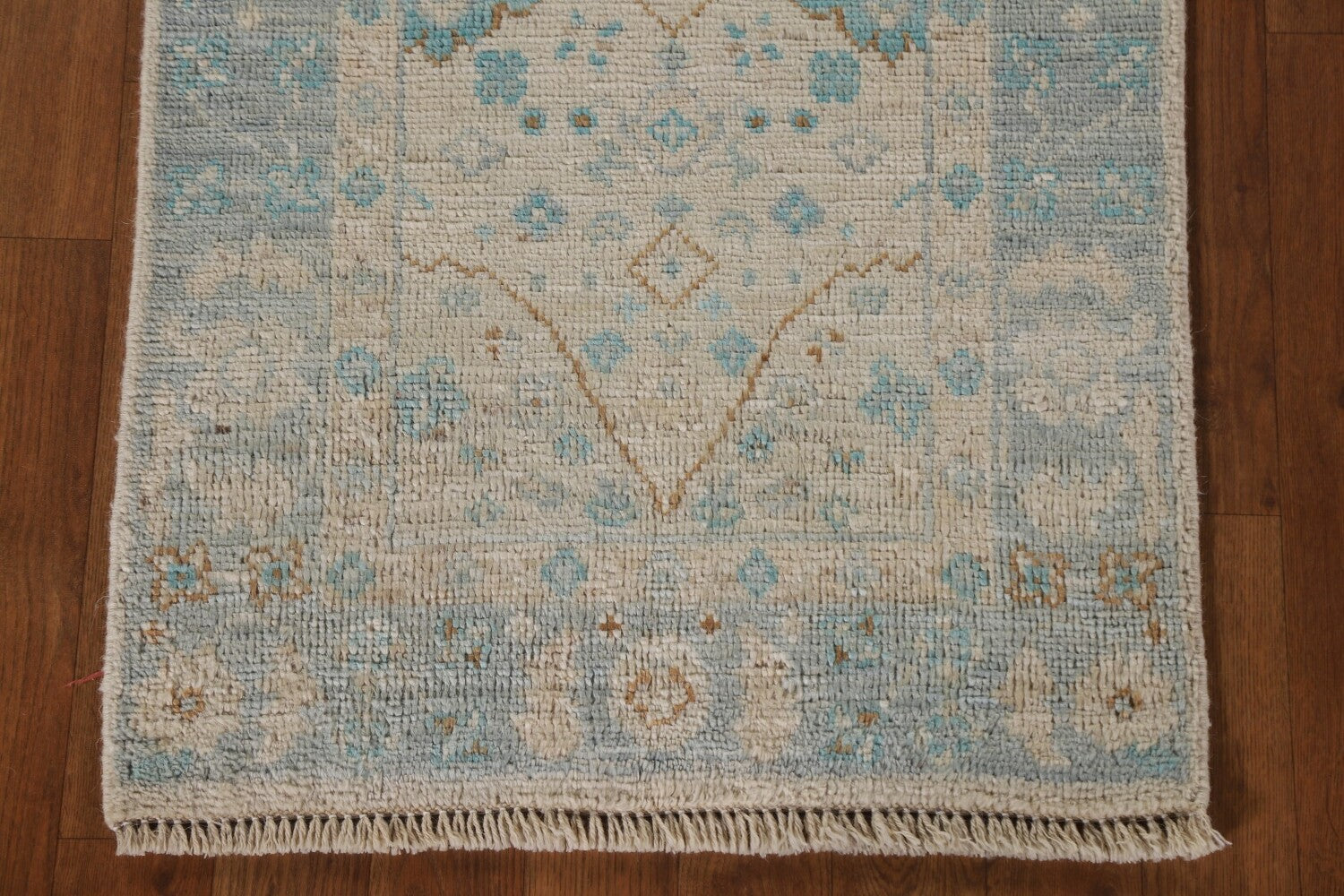 A Beautiful Genuine Turkey Oushak rug is Hand Knotted by skillful weavers in Turkey with 100% Wool Material. This rug is in New, First Quality condition. dimensions are 3' 11'' X 1' 11'' in foot and 119 X 58 in centimeter. the primary color is Beige & Ivories.