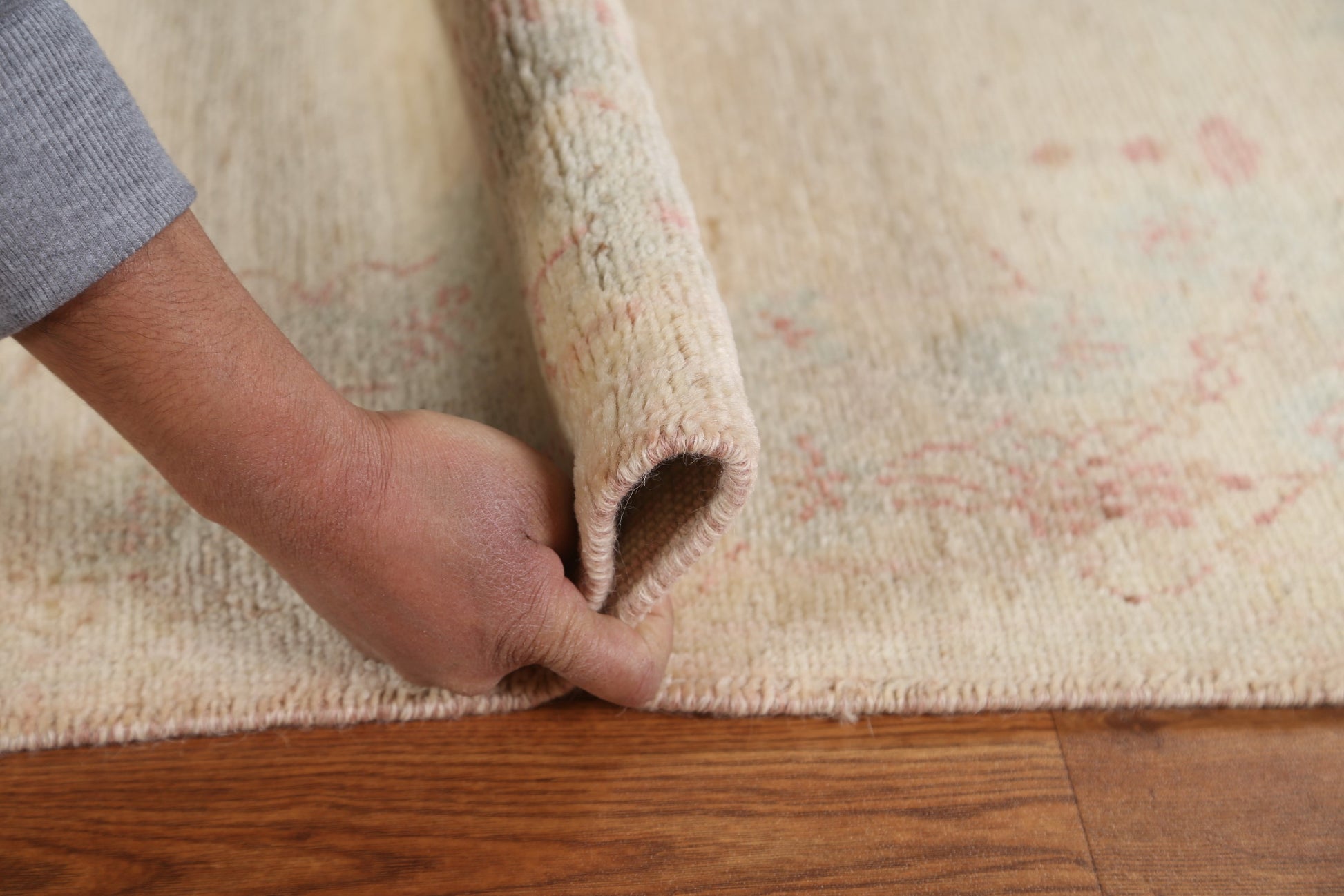 A Beautiful Genuine Turkey Oushak rug is Hand Knotted by skillful weavers in Turkey with 100% Wool Material. This rug is in New, First Quality condition. dimensions are 4' 11'' X 3' 10'' in foot and 150 X 117 in centimeter. the primary color is Beige & Ivories.