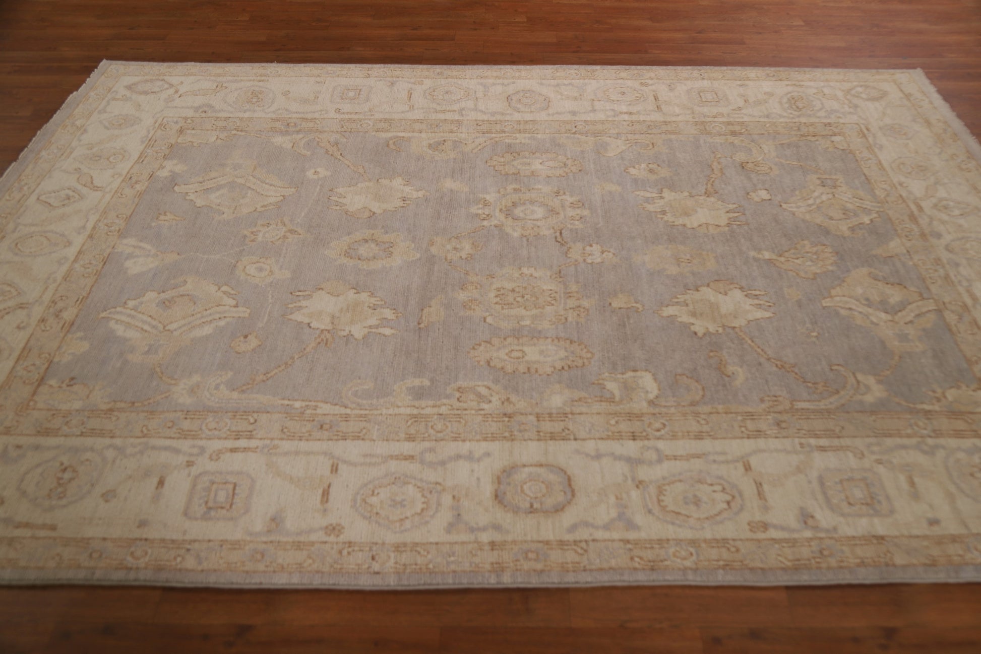 A Beautiful Genuine Turkey Oushak rug is Hand Knotted by skillful weavers in Turkey with 100% Wool Material. This rug is in New, First Quality condition. dimensions are 8' 10'' X 5' 10'' in foot and 269 X 178 in centimeter. the primary color is Greys & Charcoal.