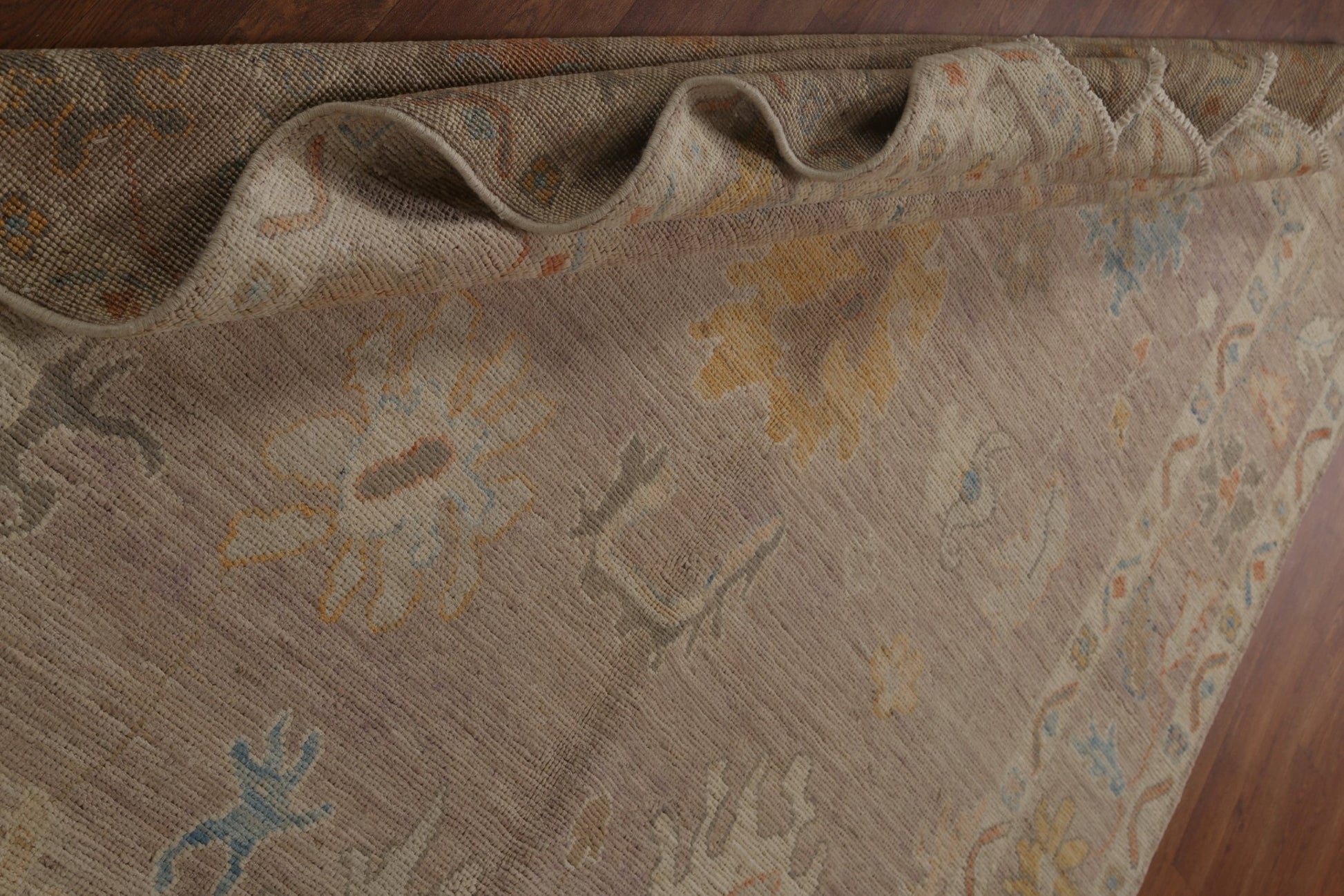 A Beautiful Genuine Turkey Oushak rug is Hand Knotted by skillful weavers in Turkey with 100% Wool Material. This rug is in condition. dimensions are 9' 2'' X 5' 10'' in foot and 279 X 178 in centimeter. the primary color is Brown.