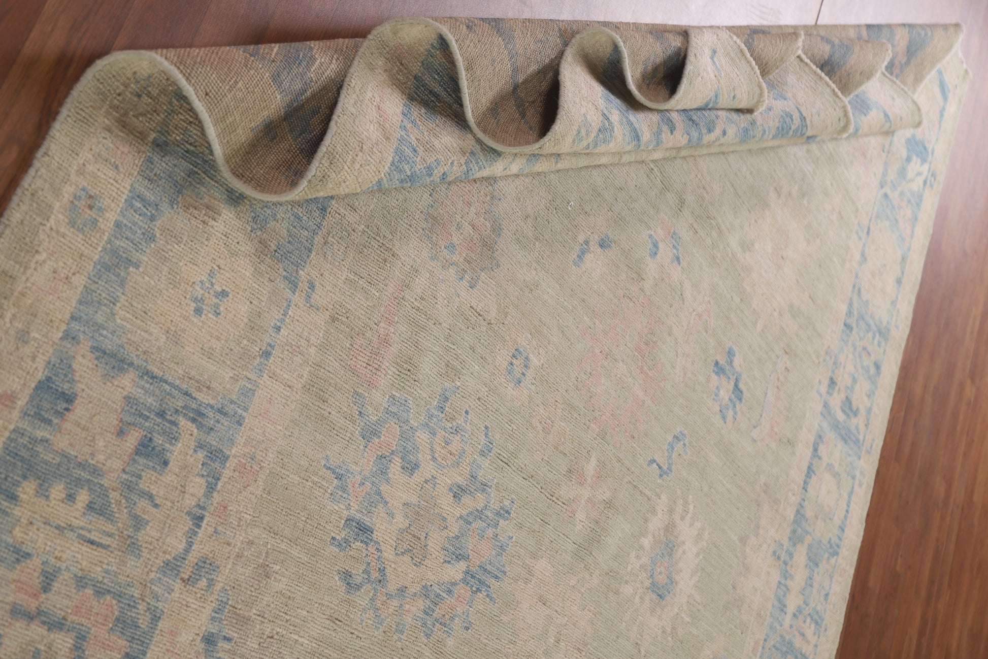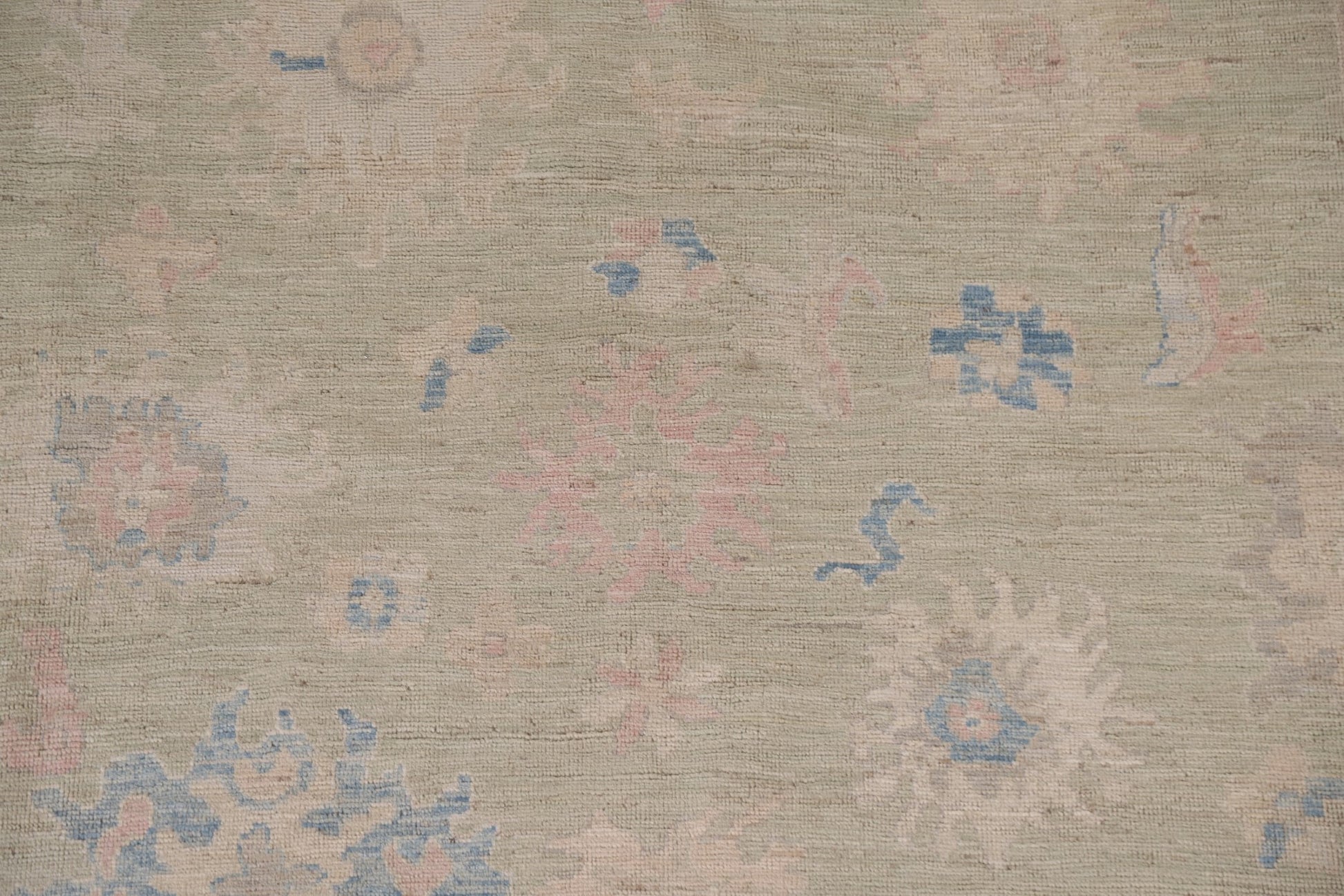 A Beautiful Genuine Turkey Oushak rug is Hand Knotted by skillful weavers in Turkey with 100% Wool Material. This rug is in New, First Quality condition. dimensions are 9' 9'' X 7' 9'' in foot and 297 X 236 in centimeter. the primary color is Green.