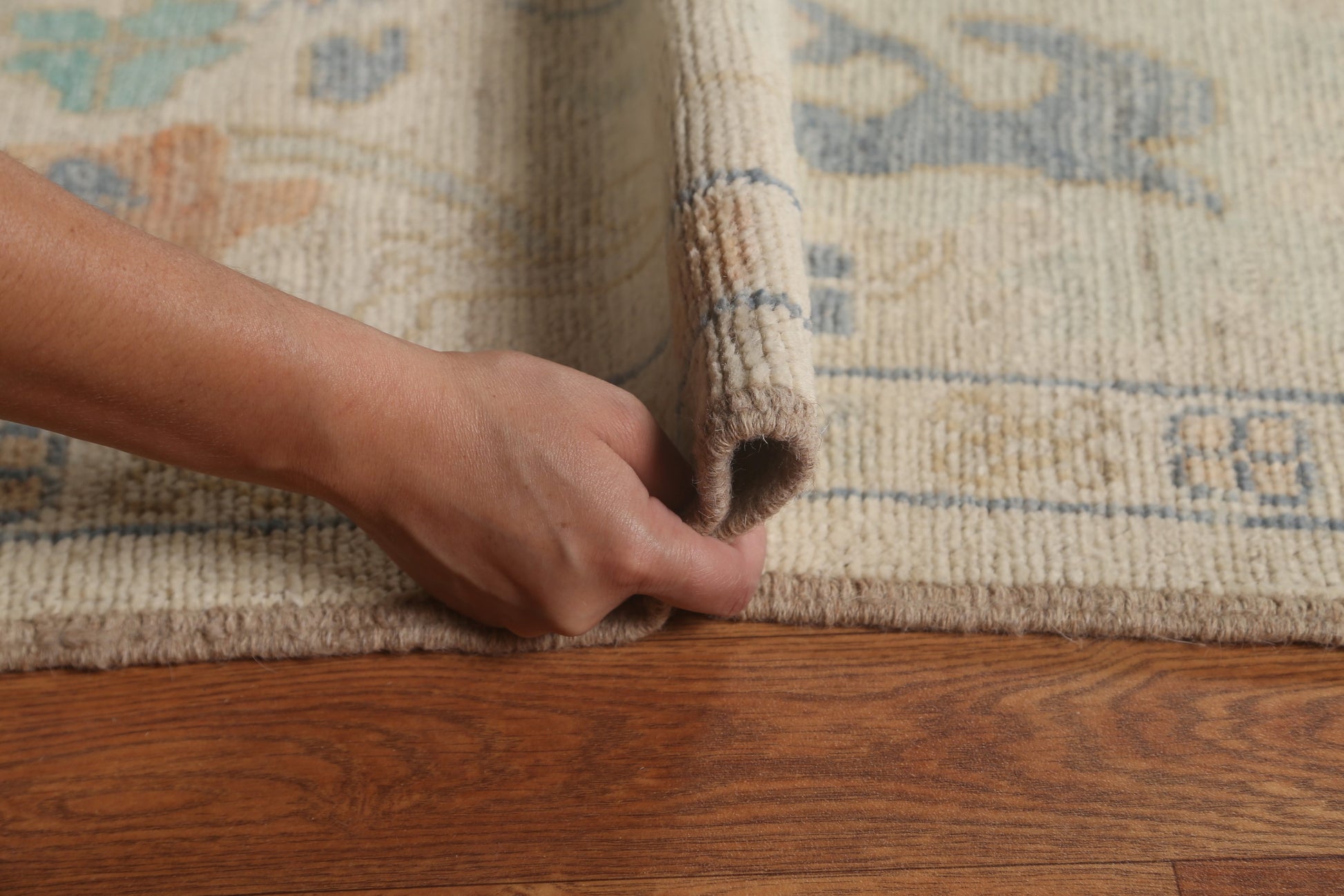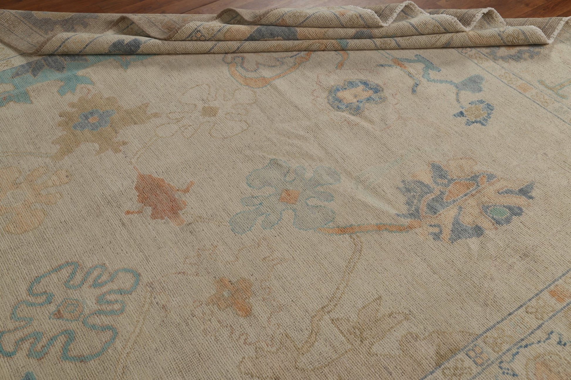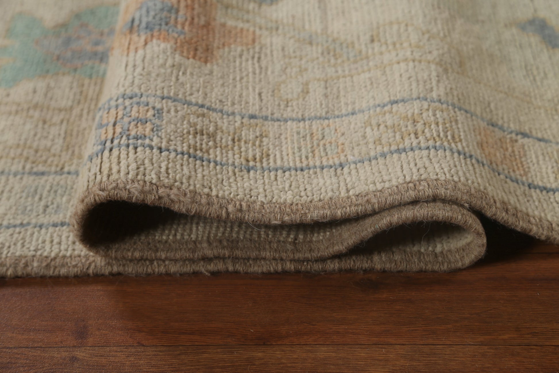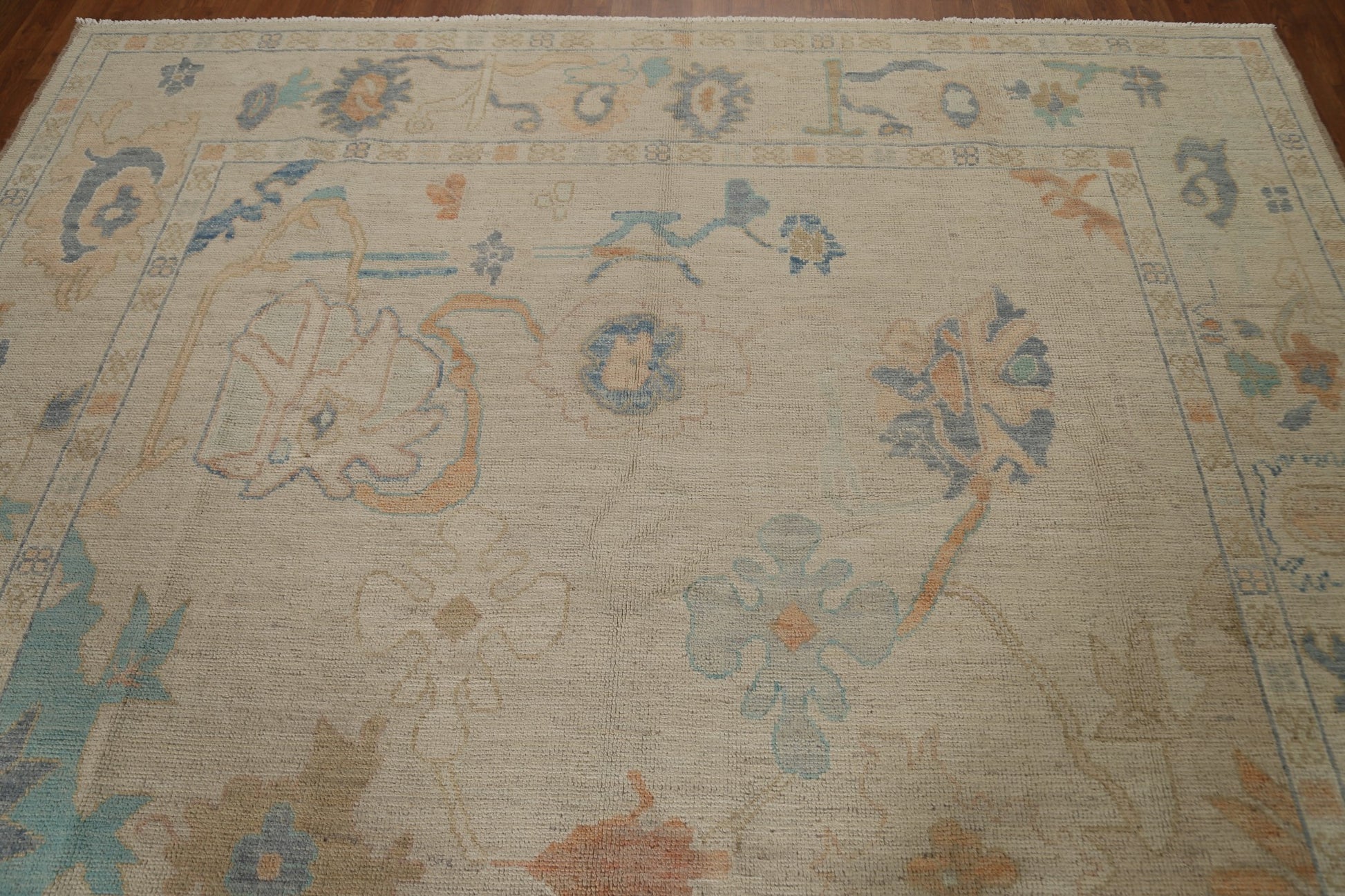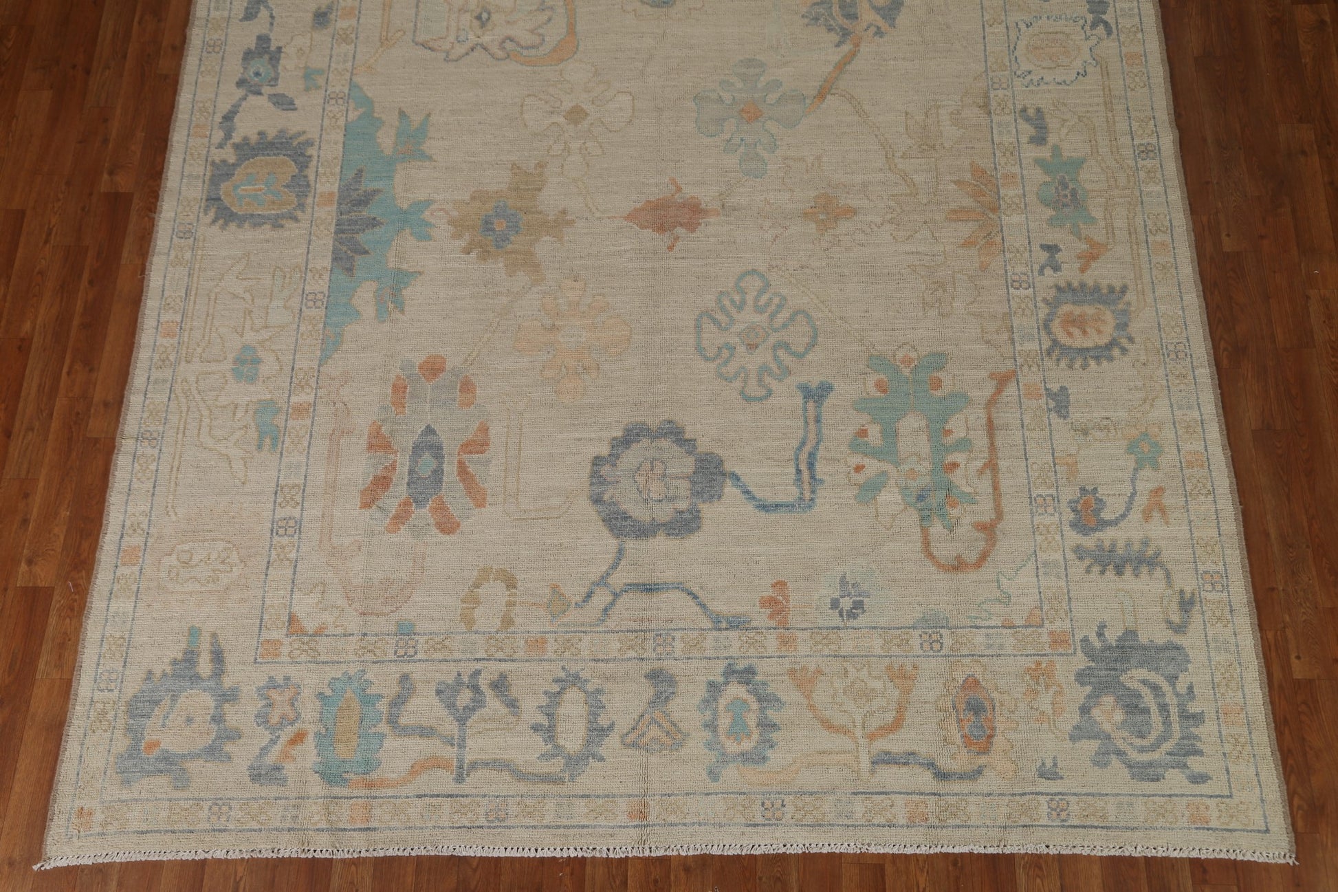 A Beautiful Genuine Turkey Oushak rug is Hand Knotted by skillful weavers in Turkey with 100% Wool Material. This rug is in New, First Quality condition. dimensions are 9' 11'' X 7' 11'' in foot and 302 X 241 in centimeter. the primary color is Beige & Ivories.