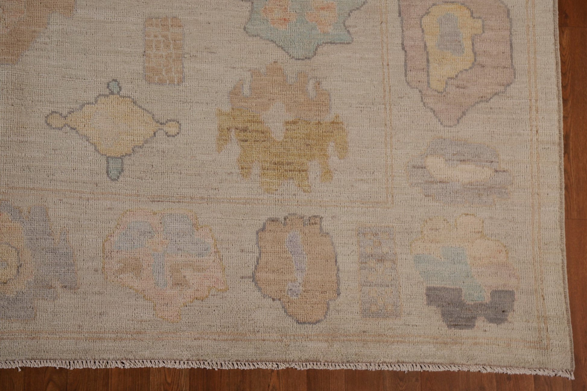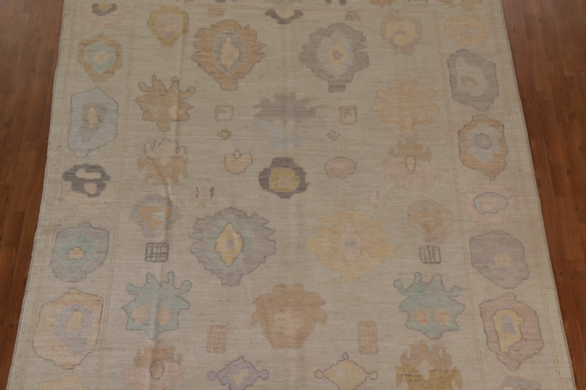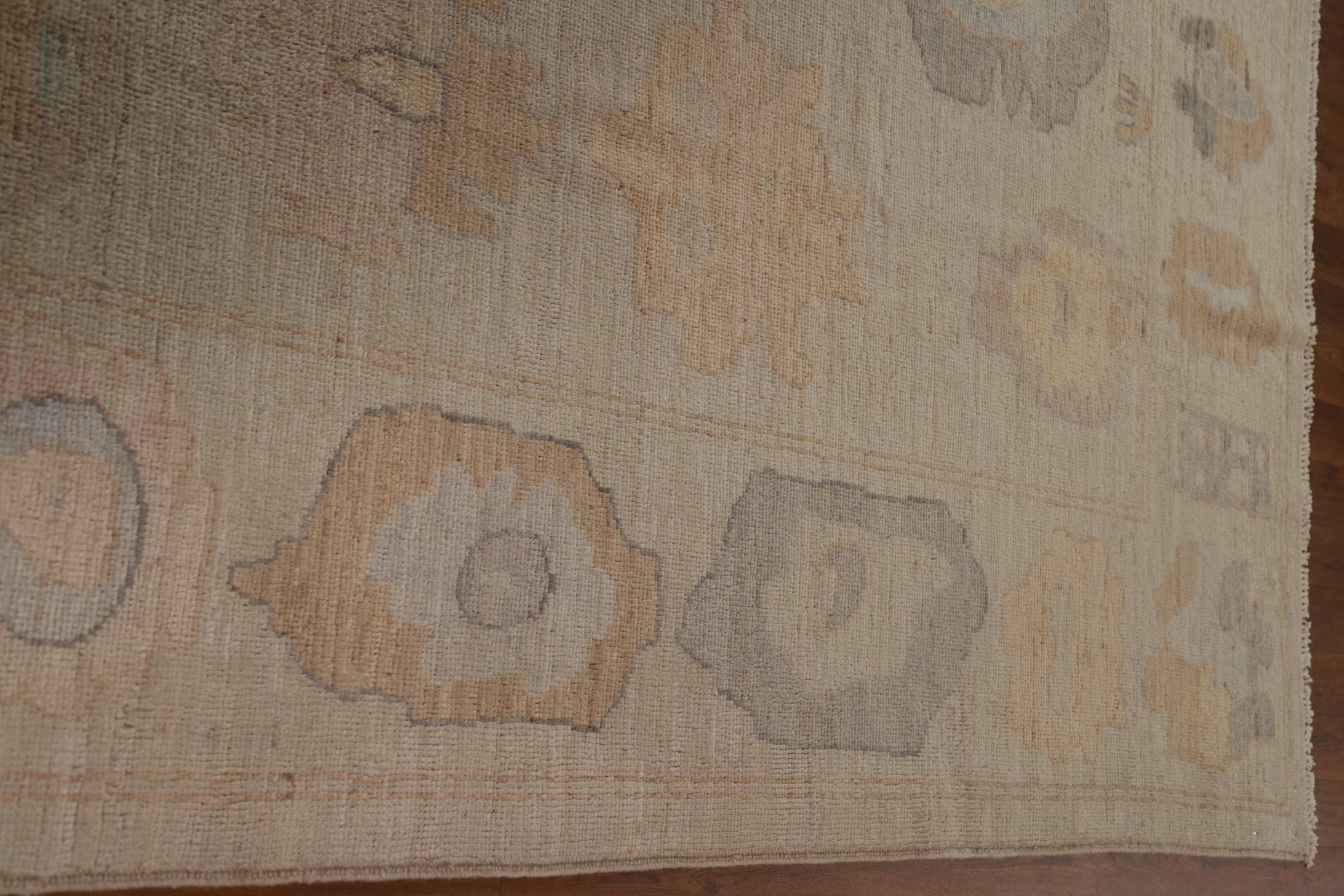 A Beautiful Genuine Turkey Oushak rug is Hand Knotted by skillful weavers in Turkey with 100% Wool Material. This rug is in condition. dimensions are 9' 10'' X 8' 2'' in foot and 300 X 249 in centimeter. the primary color is Beige & Ivories.