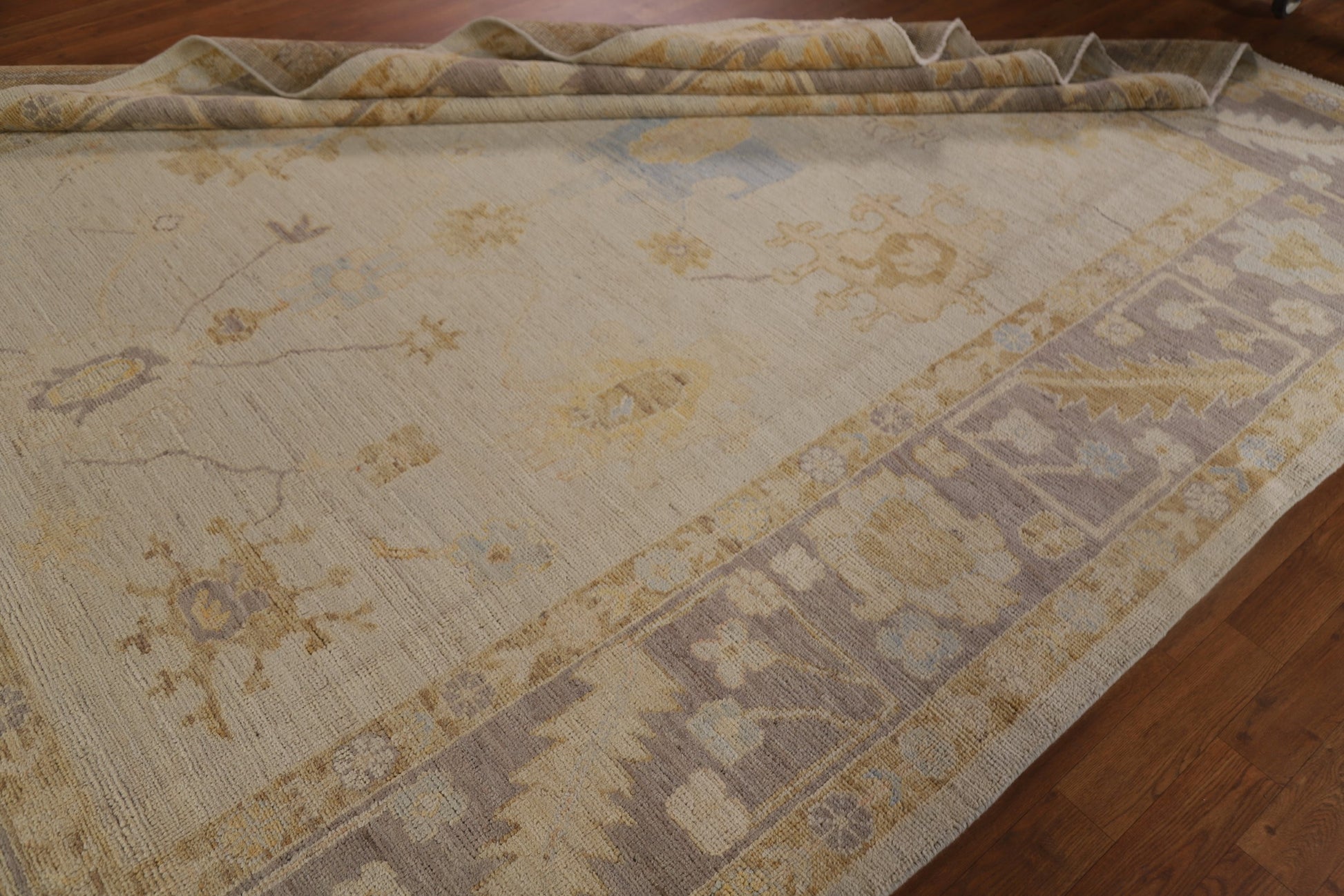 A Beautiful Genuine Turkey Oushak rug is Hand Knotted by skillful weavers in Turkey with 100% Wool Material. This rug is in New, First Quality condition. dimensions are 10' 1'' X 8' 1'' in foot and  307 X 246 in centimeter. the primary color is Beige & Ivories.