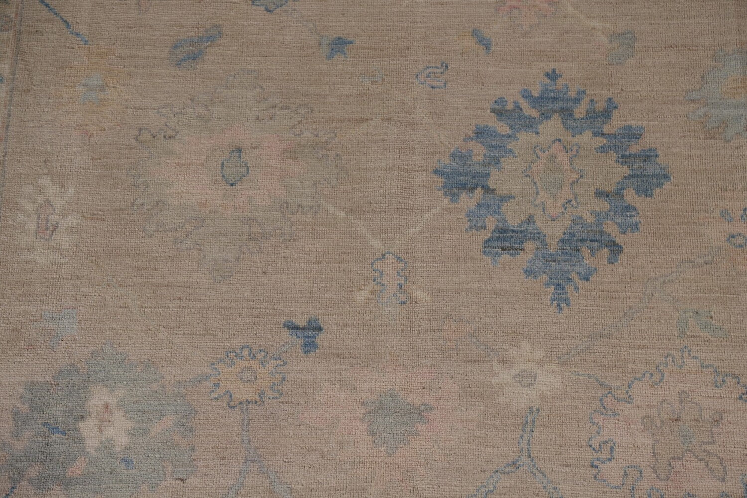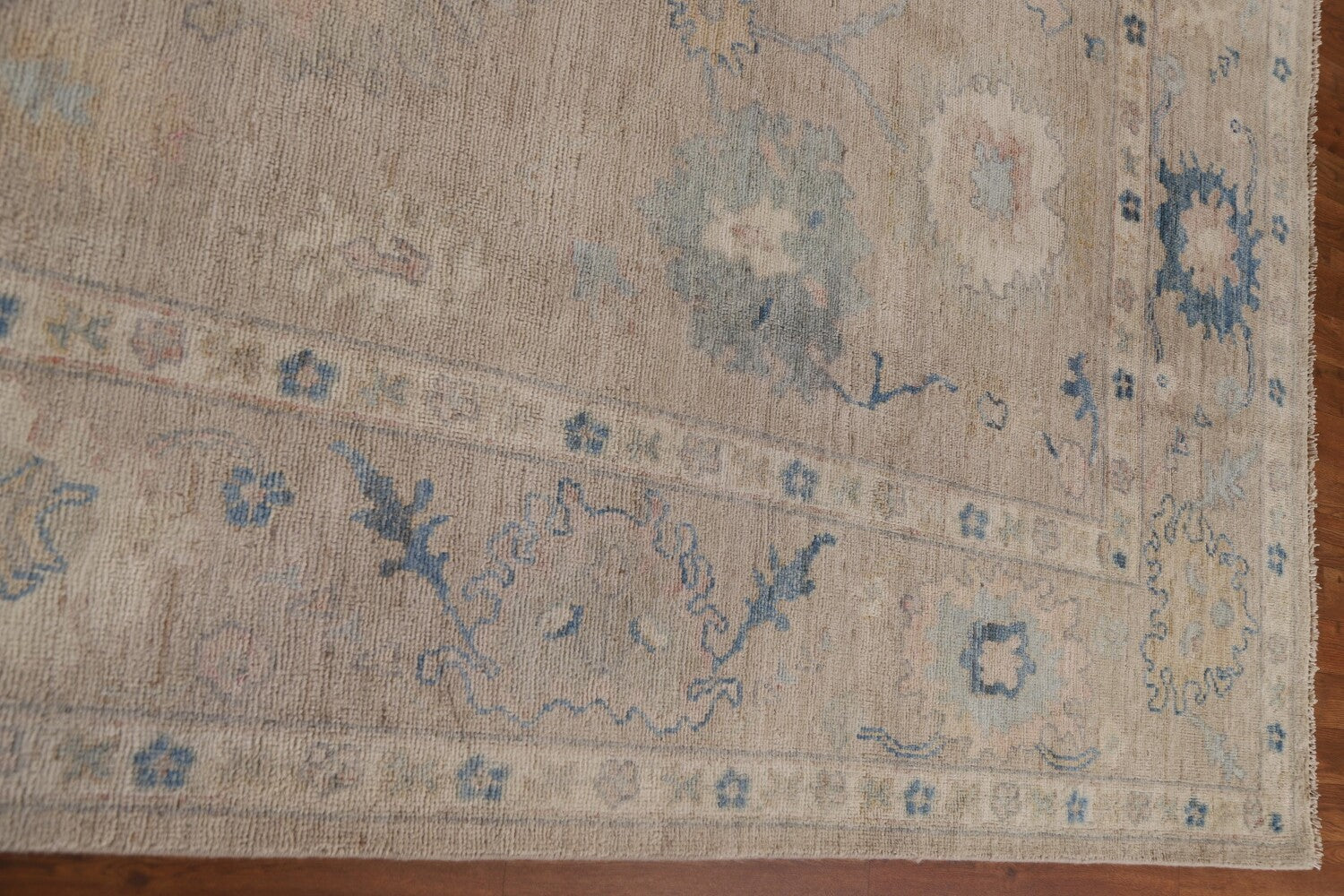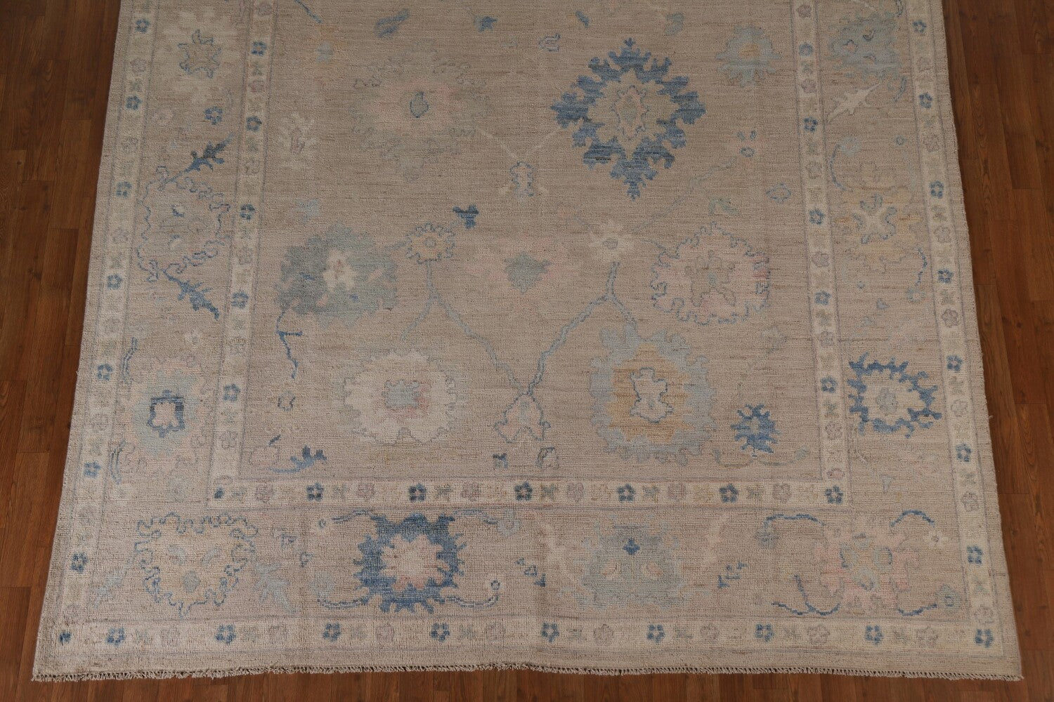 A Beautiful Genuine Turkey Oushak rug is Hand Knotted by skillful weavers in Turkey with 100% Wool Material. This rug is in New, First Quality condition. dimensions are 10' 1'' X 8' 0'' in foot and 307 X 244 in centimeter. the primary color is Beige & Ivories.