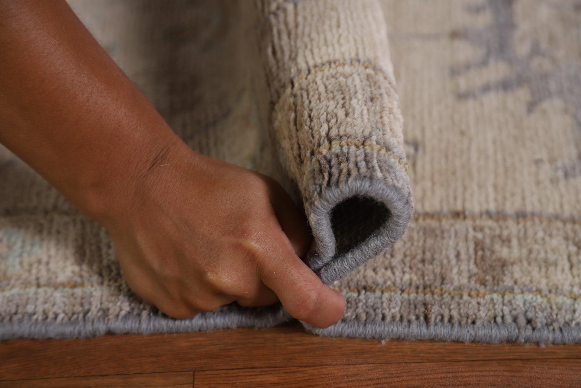 A Beautiful Genuine Turkey Oushak rug is Hand Knotted by skillful weavers in Turkey with 100% Wool Material. This rug is in New, First Quality condition. dimensions are 11' 8'' X 8' 11'' in foot and 356 X 272 in centimeter. the primary color is Greys & Charcoal.