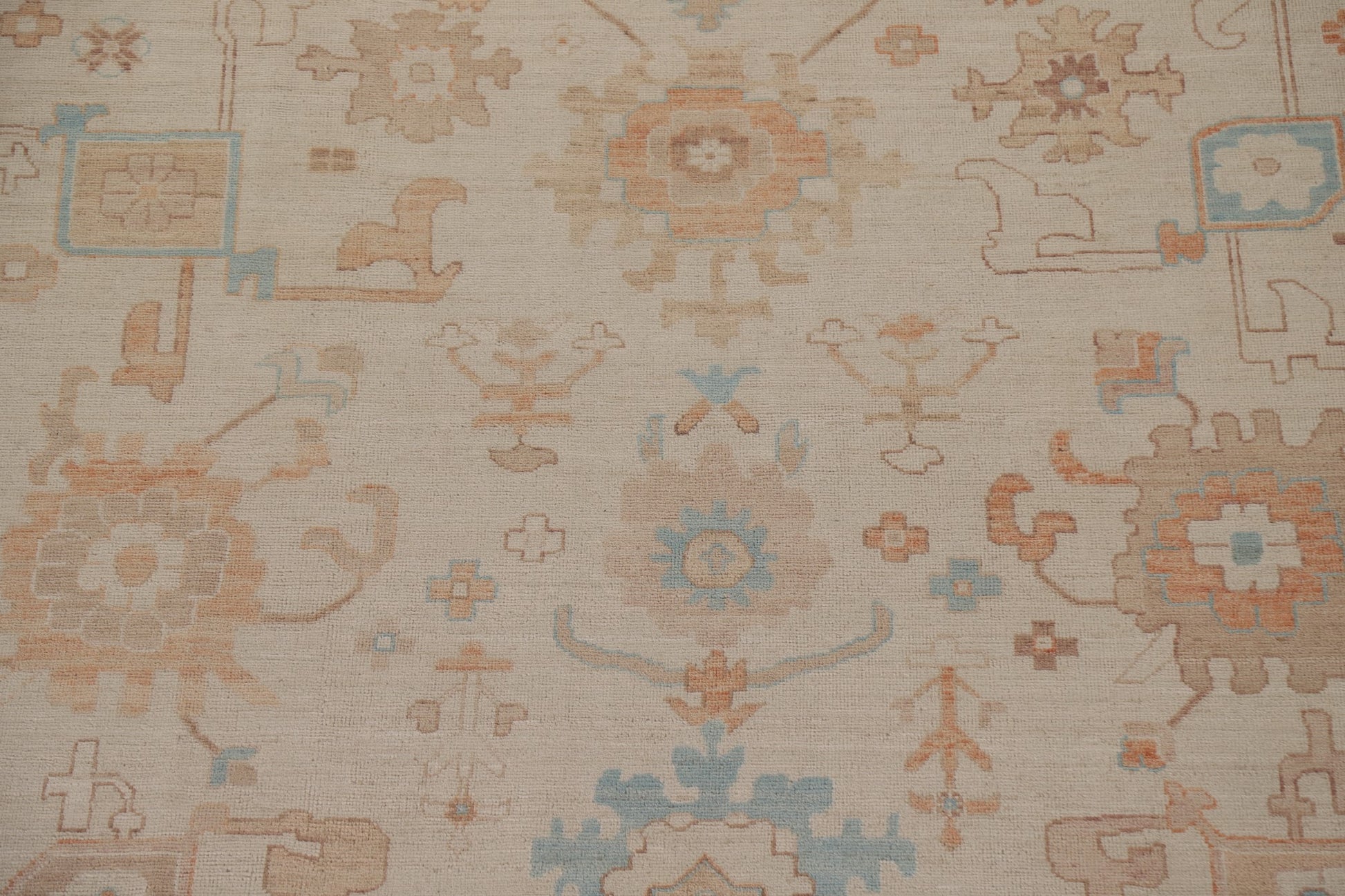 A Beautiful Genuine Turkey Oushak rug is Hand Knotted by skillful weavers in Turkey with 100% Wool Material. This rug is in Brand New-Excellent condition. dimensions are 11' 8'' X 9' 0'' in foot and 356 X 274 in centimeter. the primary color is Beige & Ivories.