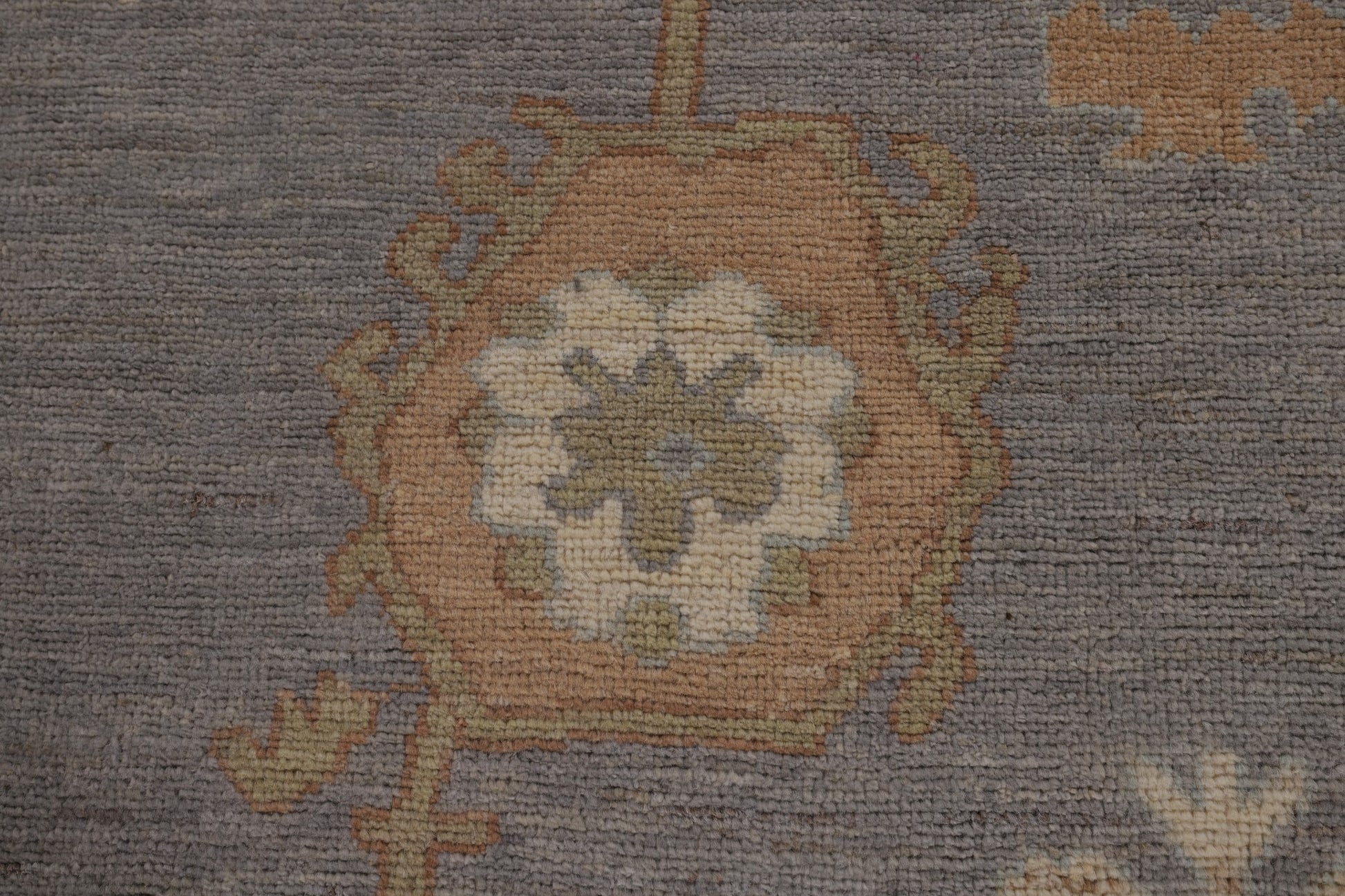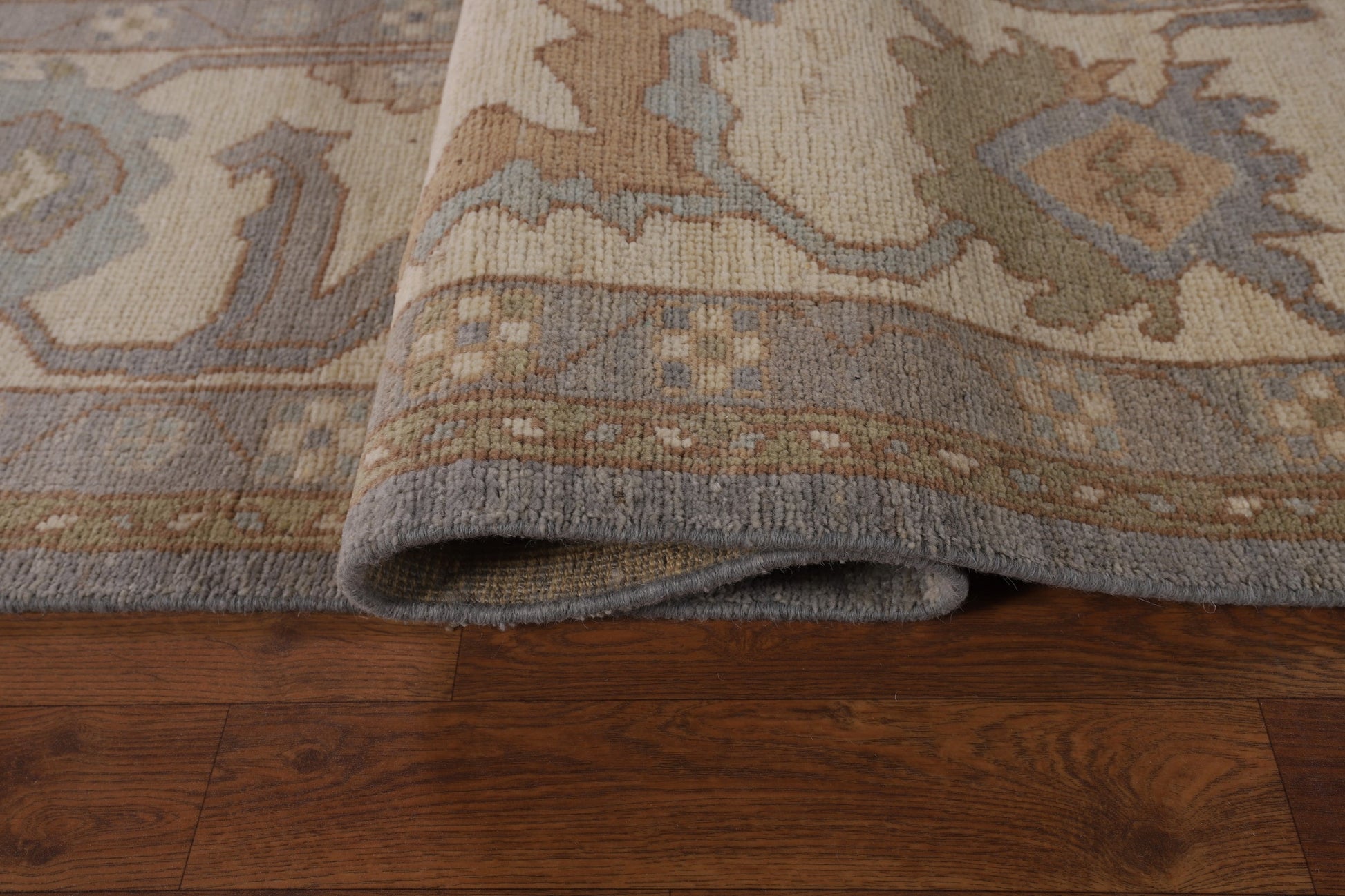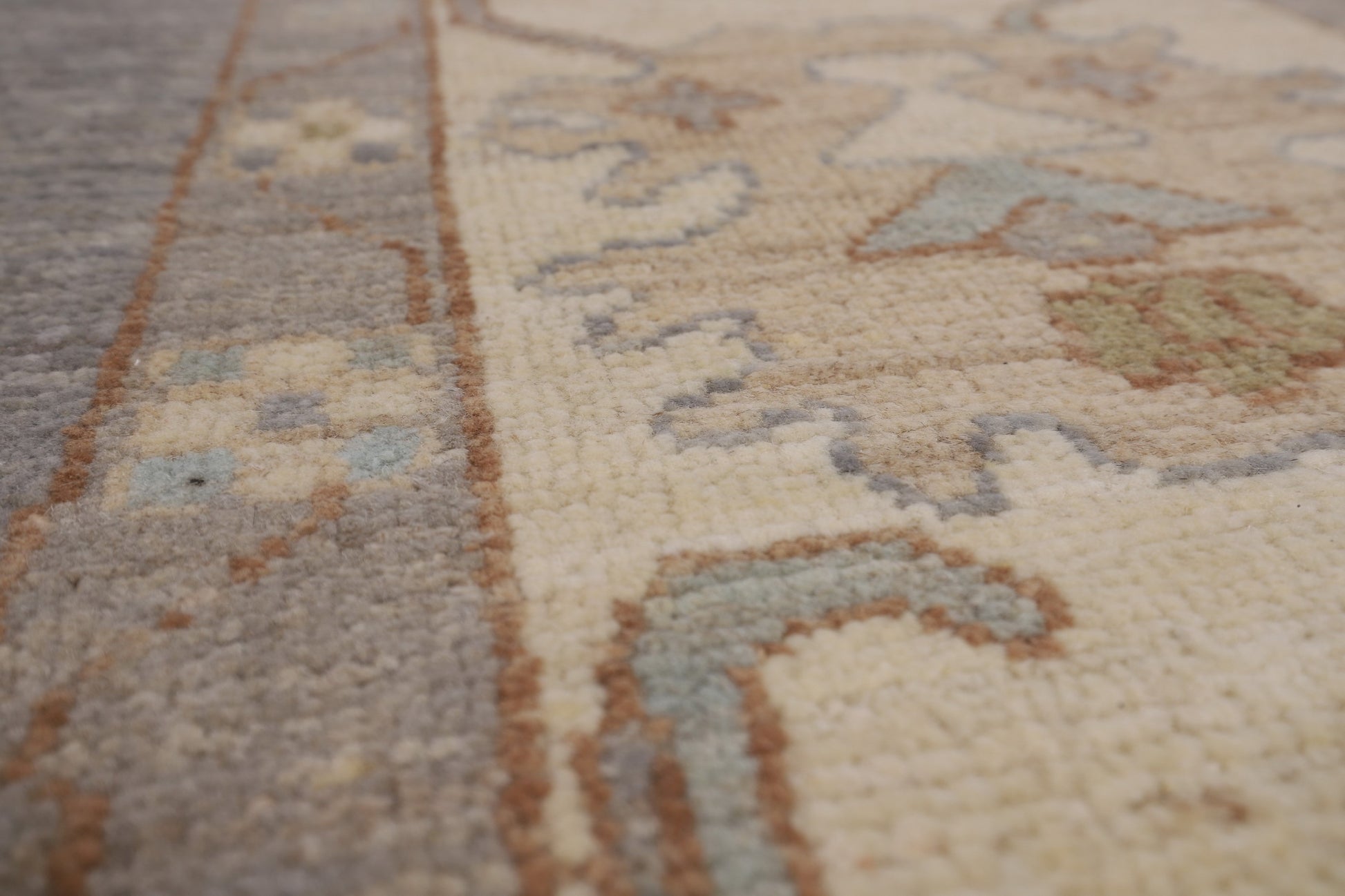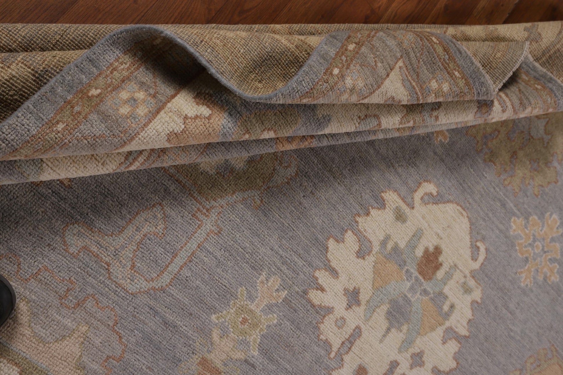A Beautiful Genuine Turkey Oushak rug is Hand Knotted by skillful weavers in Turkey with 100% Wool Material. This rug is in New, First Quality condition. dimensions are 11' 9'' X 9' 5'' in foot and 358 X 287 in centimeter. the primary color is Greys & Charcoal.