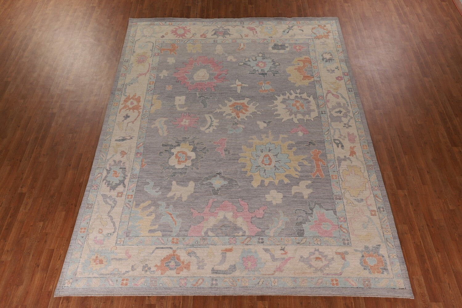 A Beautiful Genuine Turkey Oushak rug is Hand Knotted by skillful weavers in Turkey with 100% Wool Material. This rug is in New, First Quality condition. dimensions are 11' 11'' X 9' 3'' in foot and 363 X 282 in centimeter. the primary color is Greys & Charcoal.