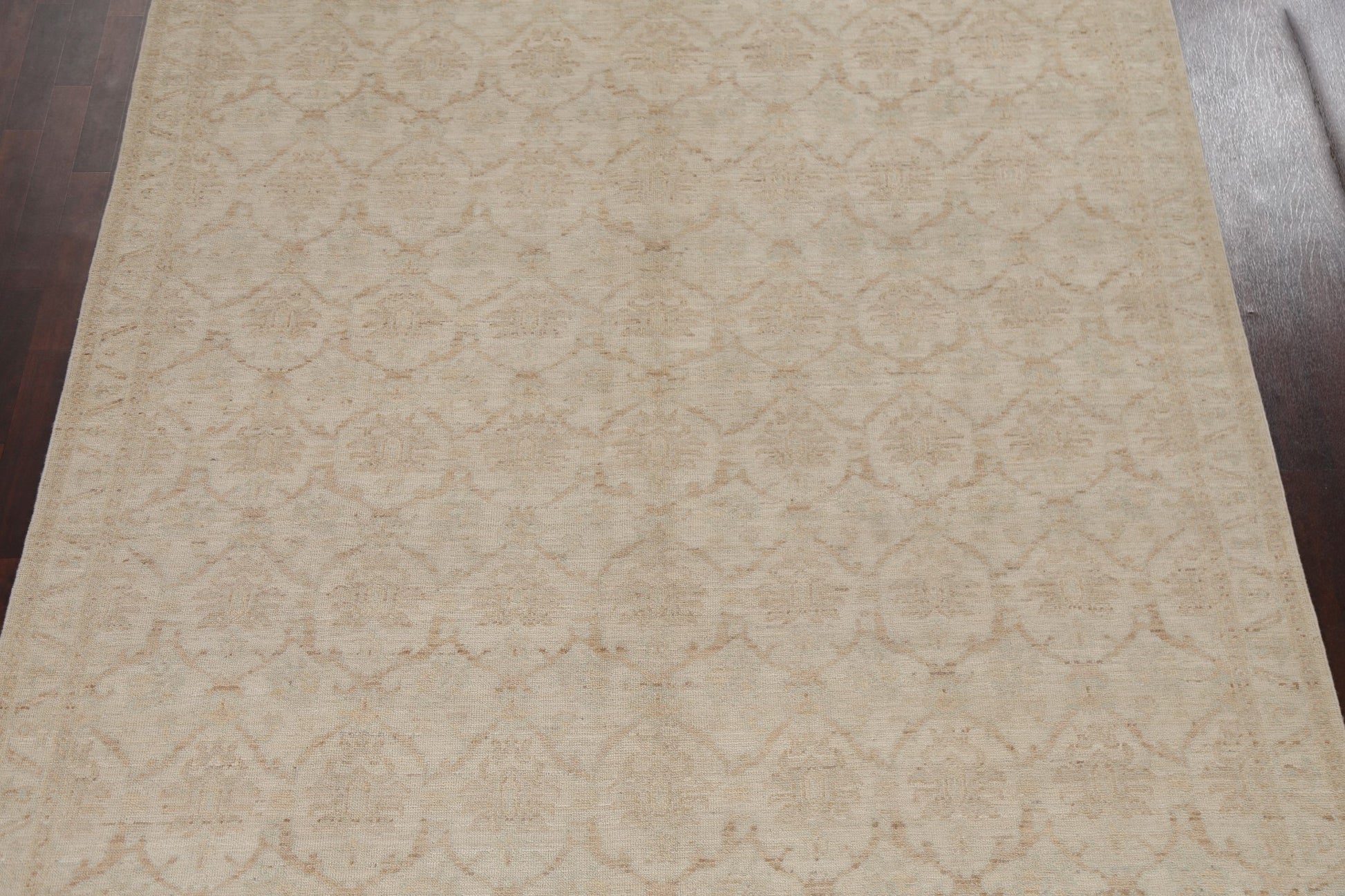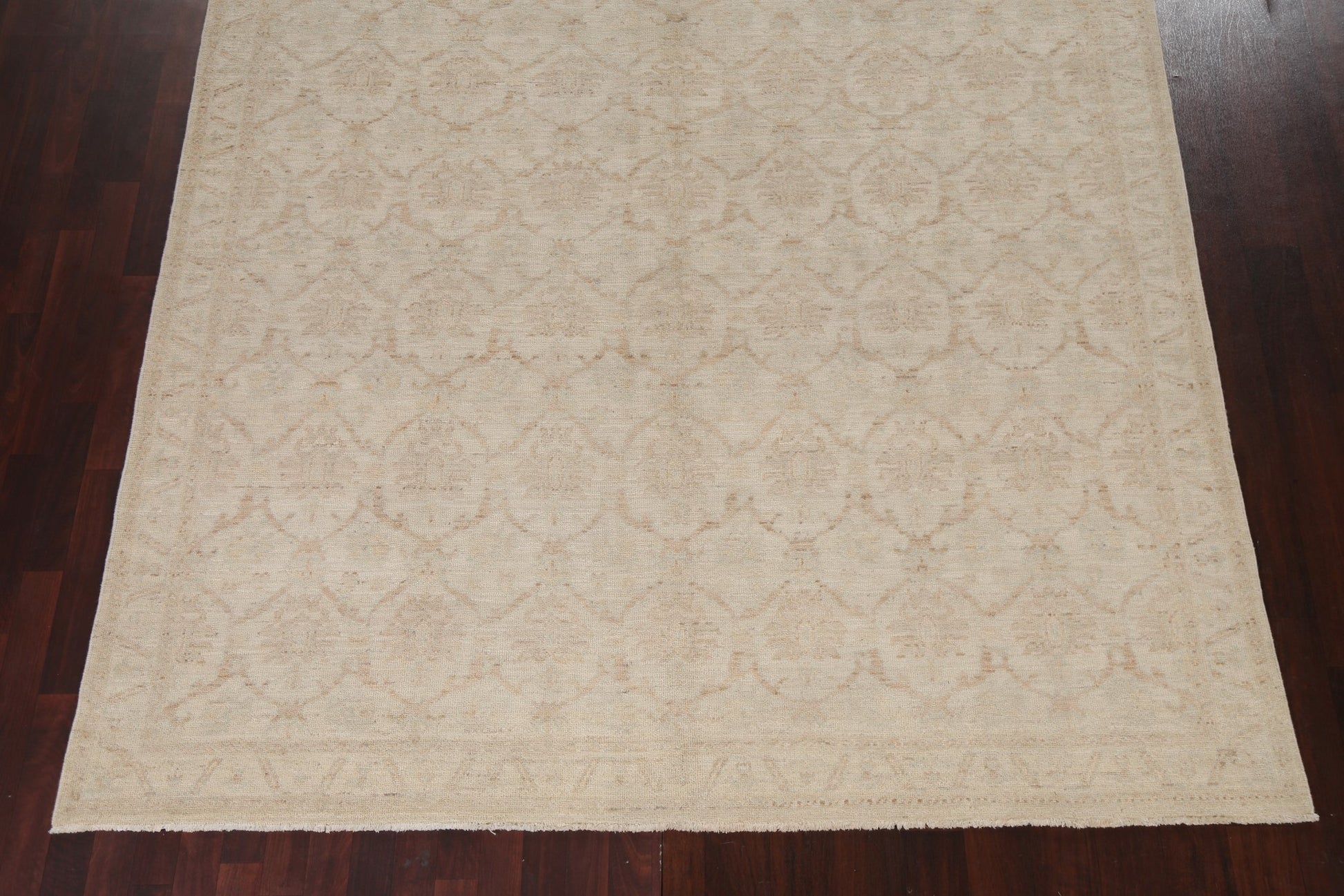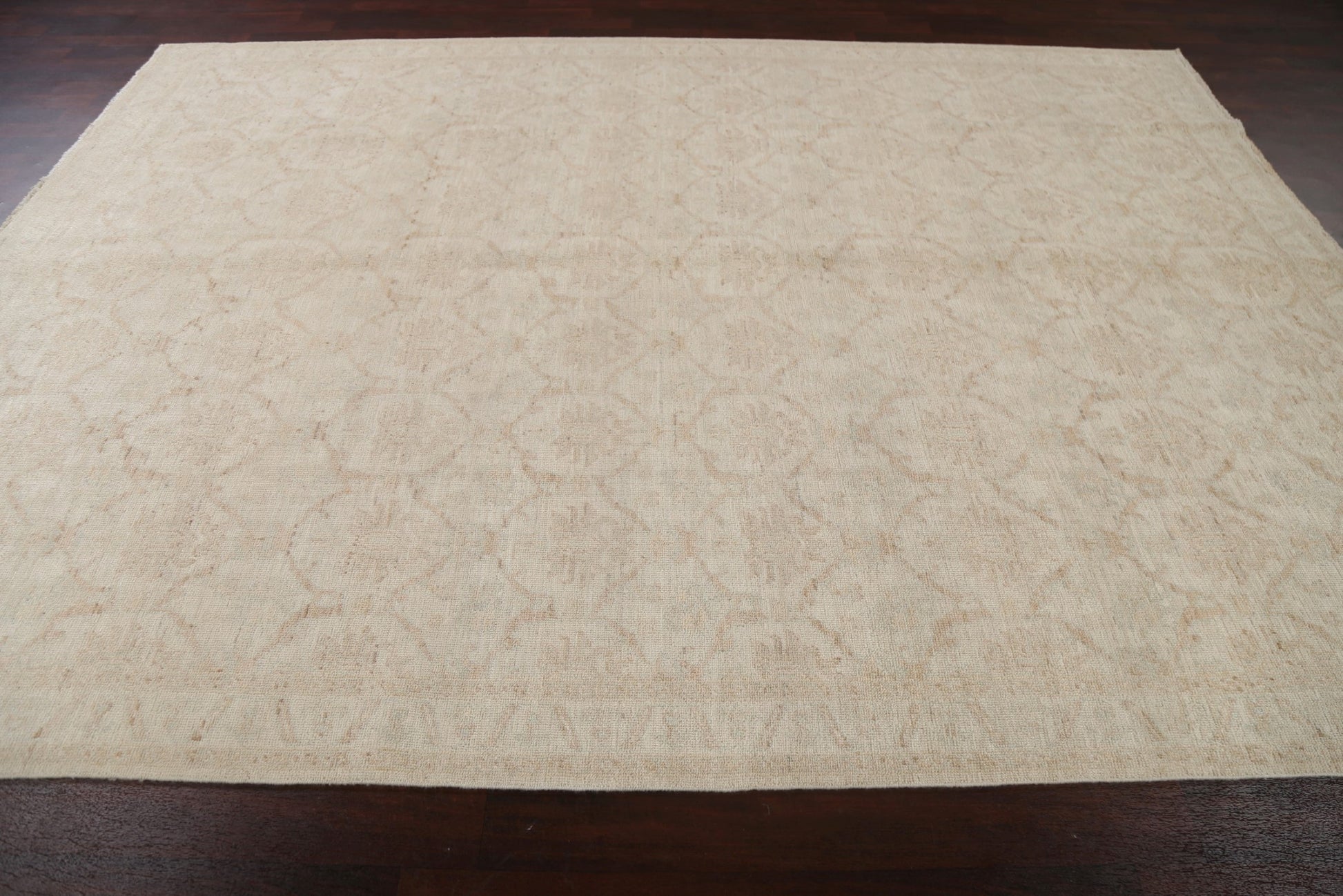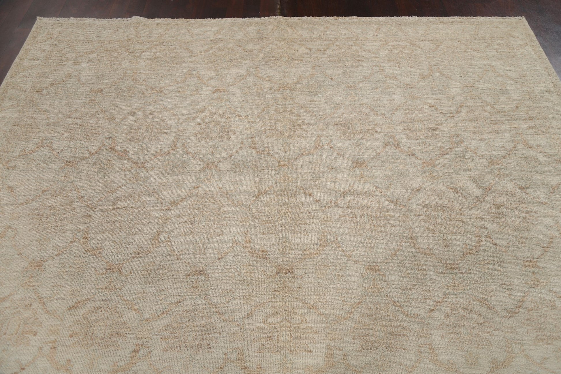 A Beautiful Genuine Turkey Oushak rug is Hand Knotted by skillful weavers in Turkey with 100% Wool Material. This rug is in New, First Quality condition. dimensions are 10' 11'' X 7' 10'' in foot and 333 X 239 in centimeter. the primary color is Beige & Ivories.