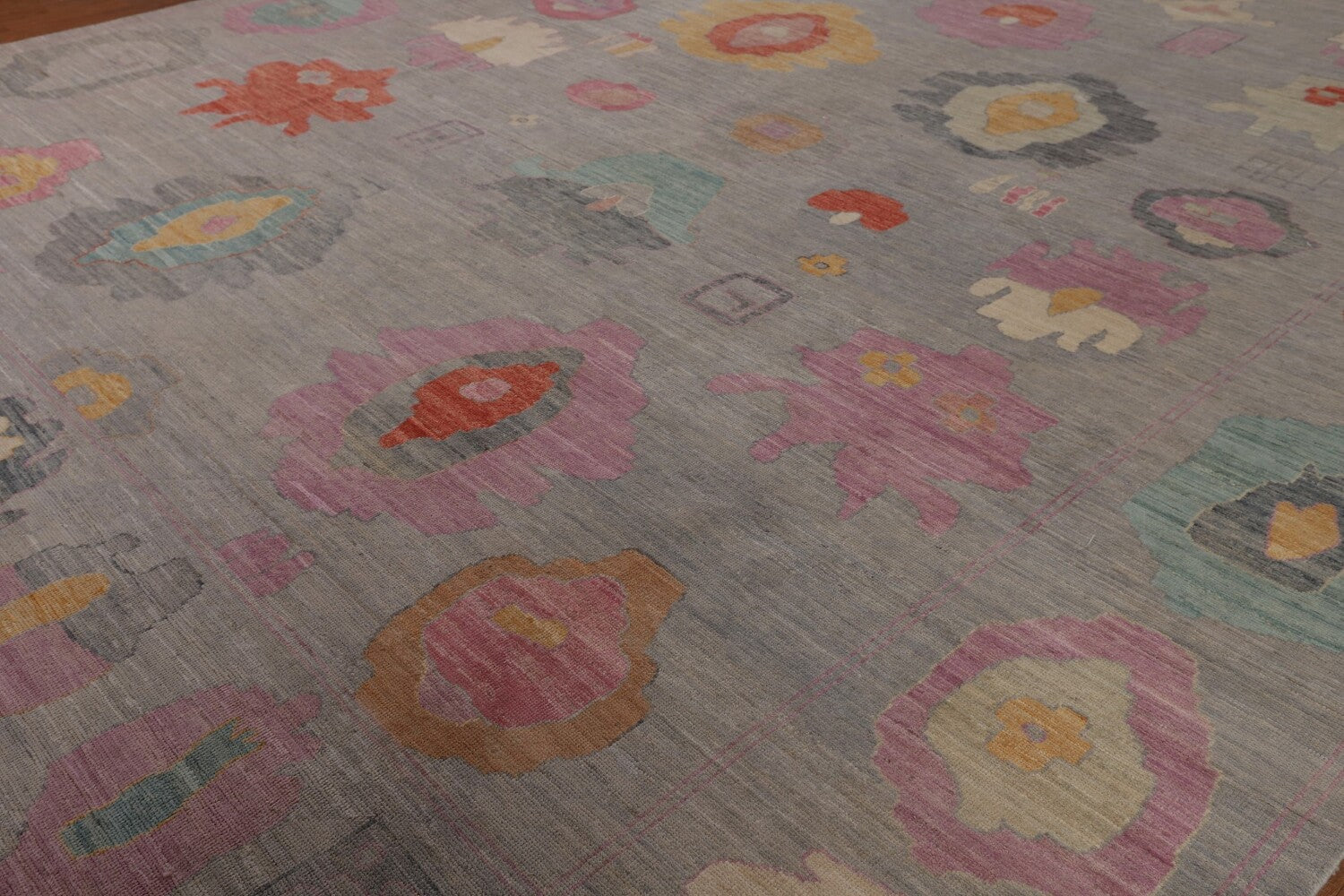 A Beautiful Genuine Turkey Oushak rug is Hand Knotted by skillful weavers in Turkey with 100% Wool Material. This rug is in New, First Quality condition. dimensions are 14' 10'' X 12' 1'' in foot and 452 X 368 in centimeter. the primary color is Greys & Charcoal.