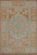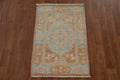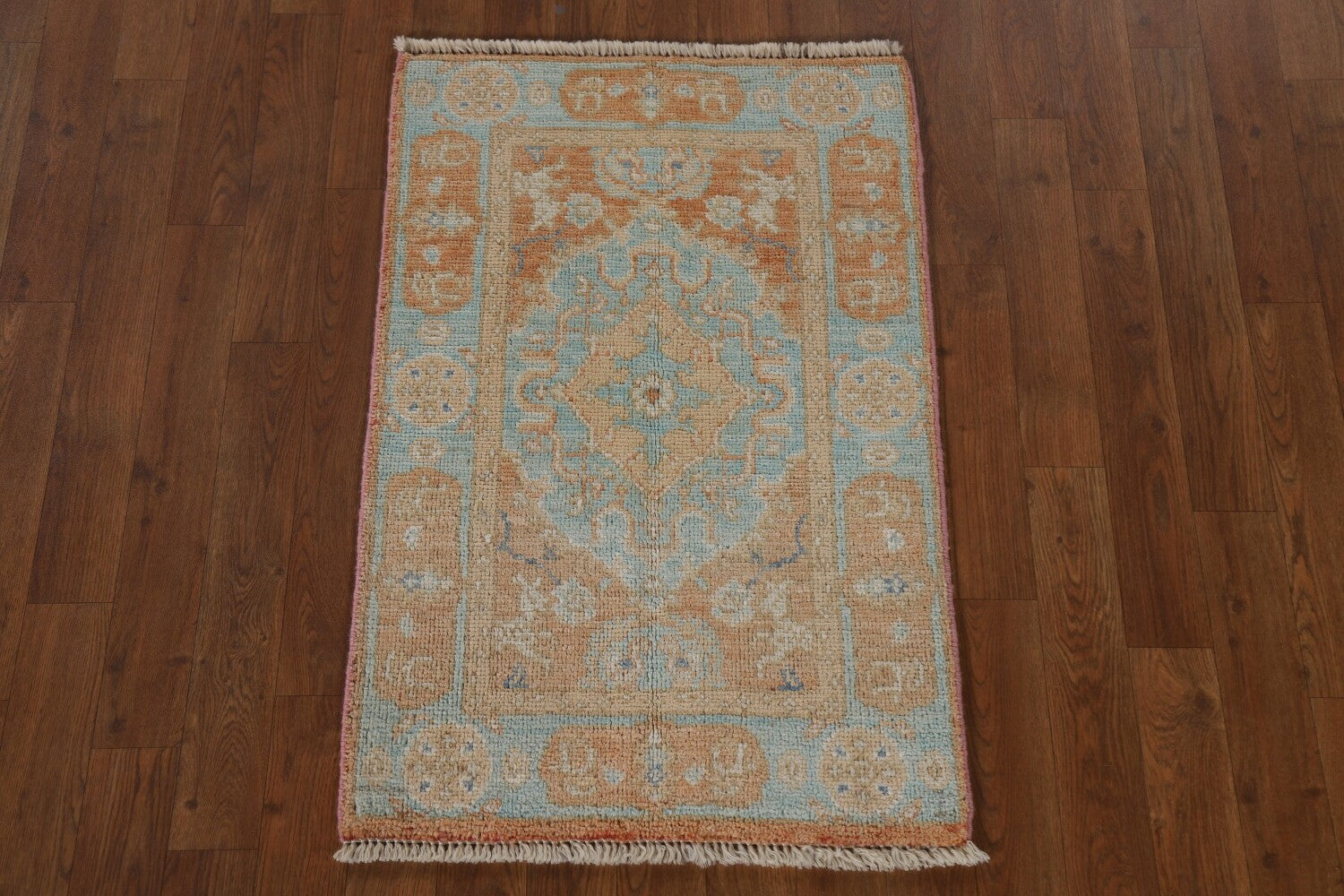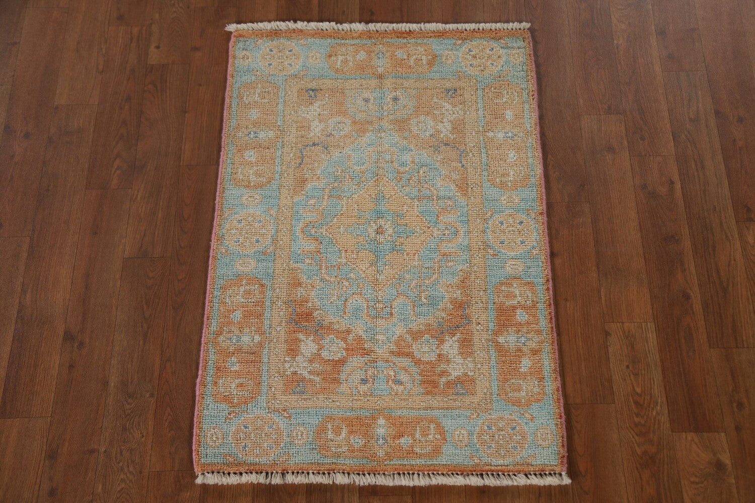 A Beautiful Genuine Turkey Oushak rug is Hand Knotted by skillful weavers in Turkey with 100% Wool Material. This rug is in New, First Quality condition. dimensions are 3' 0'' X 1' 11'' in foot and 91 X 58 in centimeter. the primary color is Navy Blue & Blues.