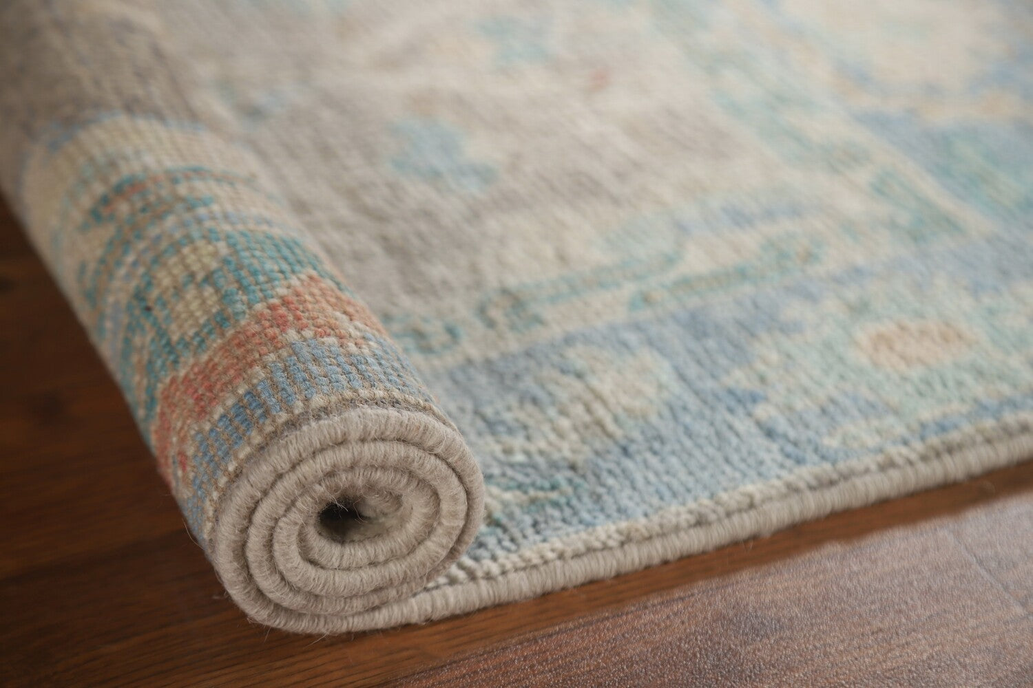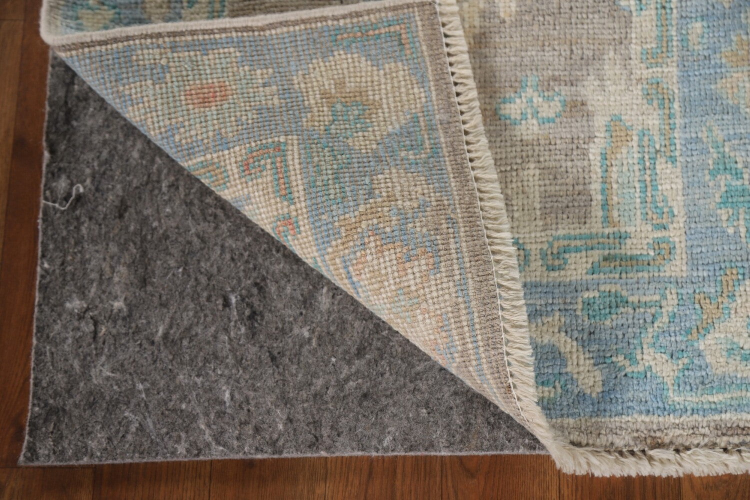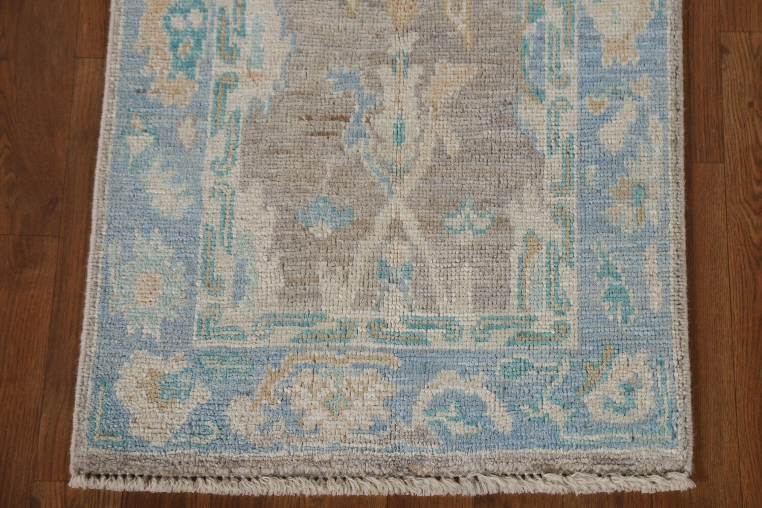 A Beautiful Genuine Turkey Oushak rug is Hand Knotted by skillful weavers in Turkey with 100% Wool Material. This rug is in New, First Quality condition. dimensions are 3' 1'' X 1' 11'' in foot and 94 X 58 in centimeter. the primary color is Greys & Charcoal.