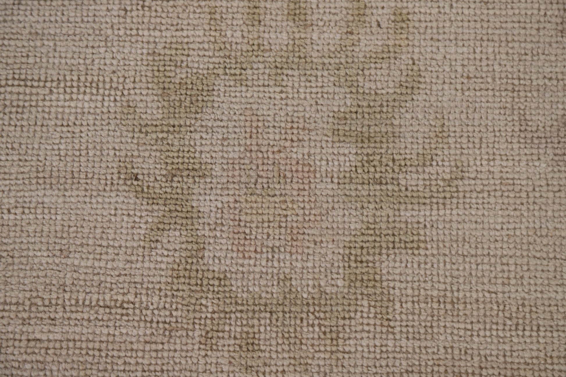 A Beautiful Genuine Turkey Oushak rug is Hand Knotted by skillful weavers in Turkey with 100% Wool Material. This rug is in condition. dimensions are 8' 2'' X 3' 3'' in foot and 249 X 99 in centimeter. the primary color is Beige & Ivories.