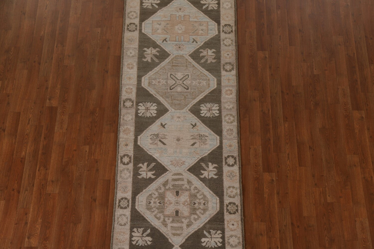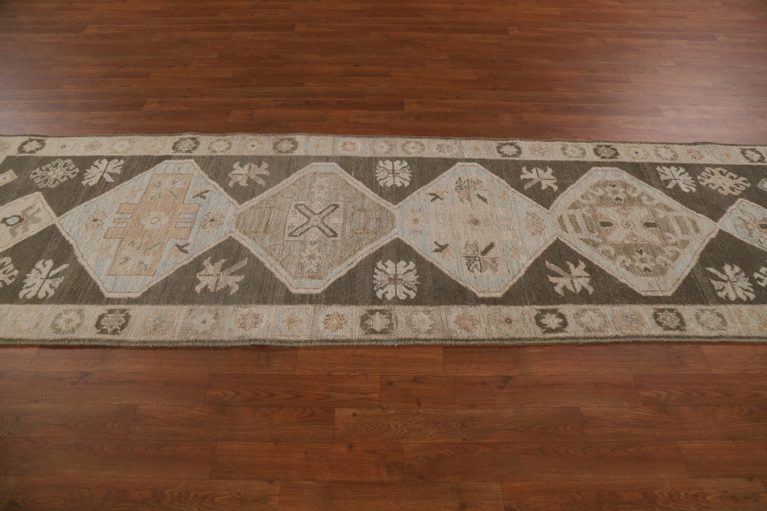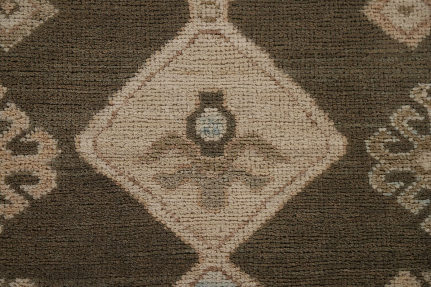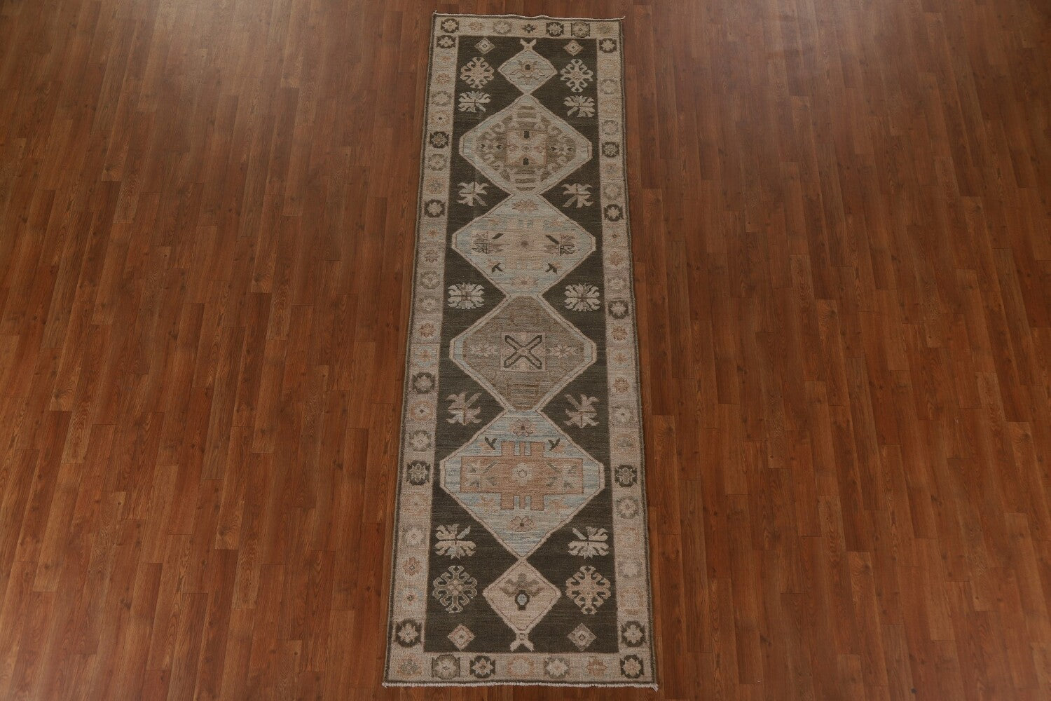 A Beautiful Genuine Turkey Oushak rug is Hand Knotted by skillful weavers in Turkey with 100% Wool Material. This rug is in New, First Quality condition. dimensions are 9' 5'' X 2' 10'' in foot and 287 X 86 in centimeter. the primary color is Brown.