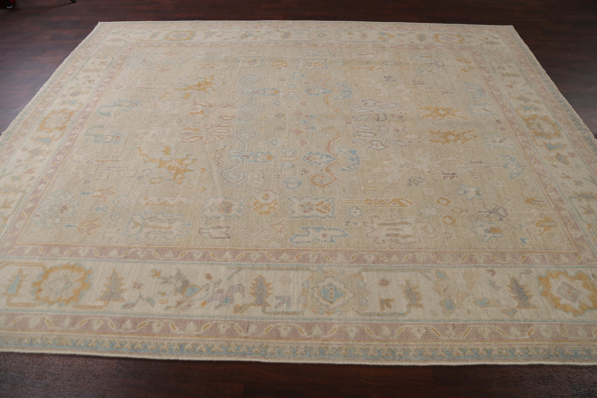 A Beautiful Genuine Turkey Oushak rug is Hand Knotted by skillful weavers in Turkey with 100% Wool Material. This rug is in New, First Quality condition. dimensions are 10' 1'' X 8' 1'' in foot and 307 X 246 in centimeter. the primary color is Green.