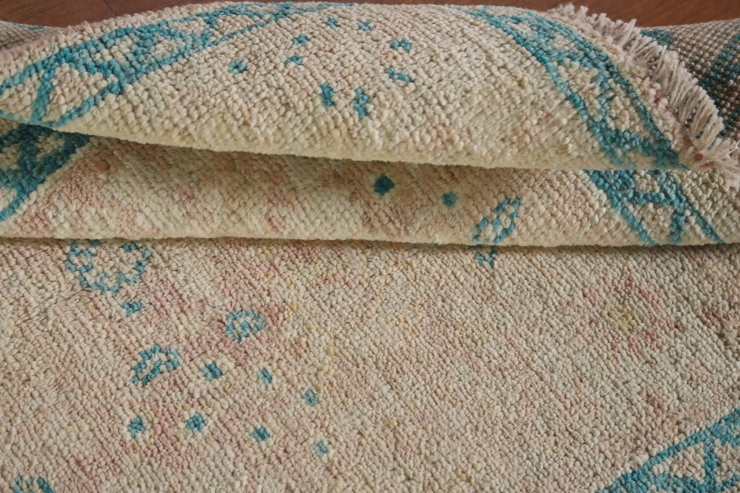 A Beautiful Genuine Turkey Oushak rug is Hand Knotted by skillful weavers in Turkey with 100% Wool Material. This rug is in New, First Quality condition. dimensions are 3' 10'' X 3' 1'' in foot and 117 X 94 in centimeter. the primary color is Peach.