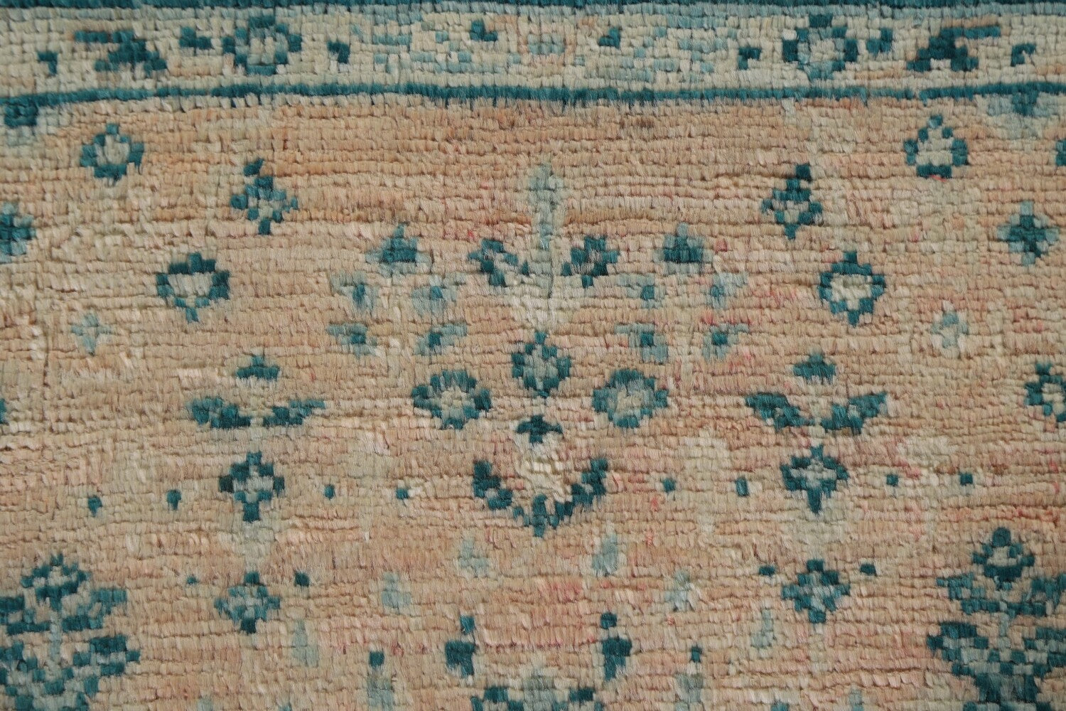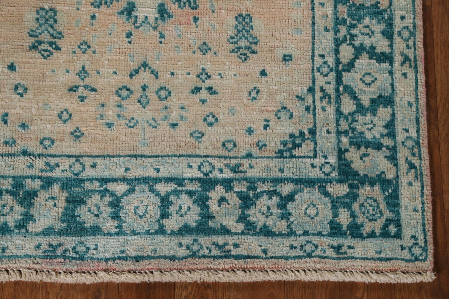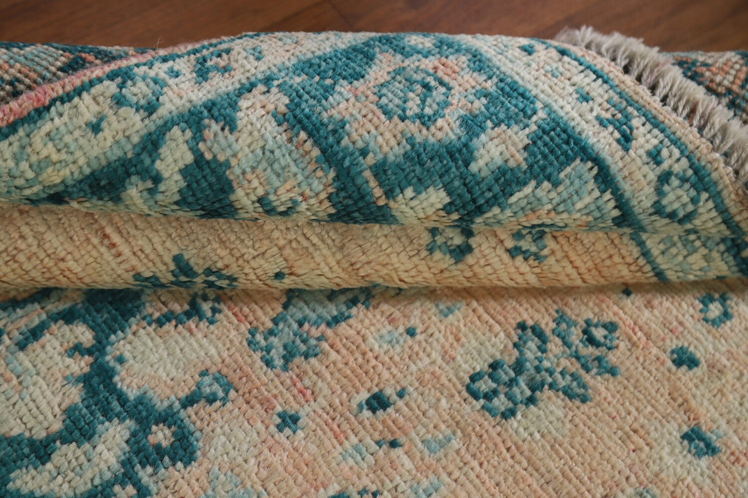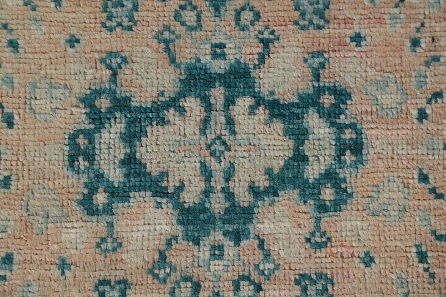 A Beautiful Genuine Turkey Oushak rug is Hand Knotted by skillful weavers in Turkey with 100% Wool Material. This rug is in New, First Quality condition. dimensions are 3' 11'' X 2' 11'' in foot and 119 X 89 in centimeter. the primary color is Peach.