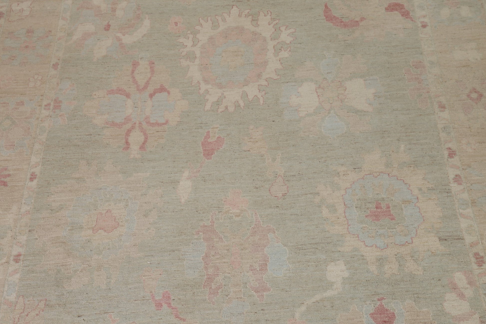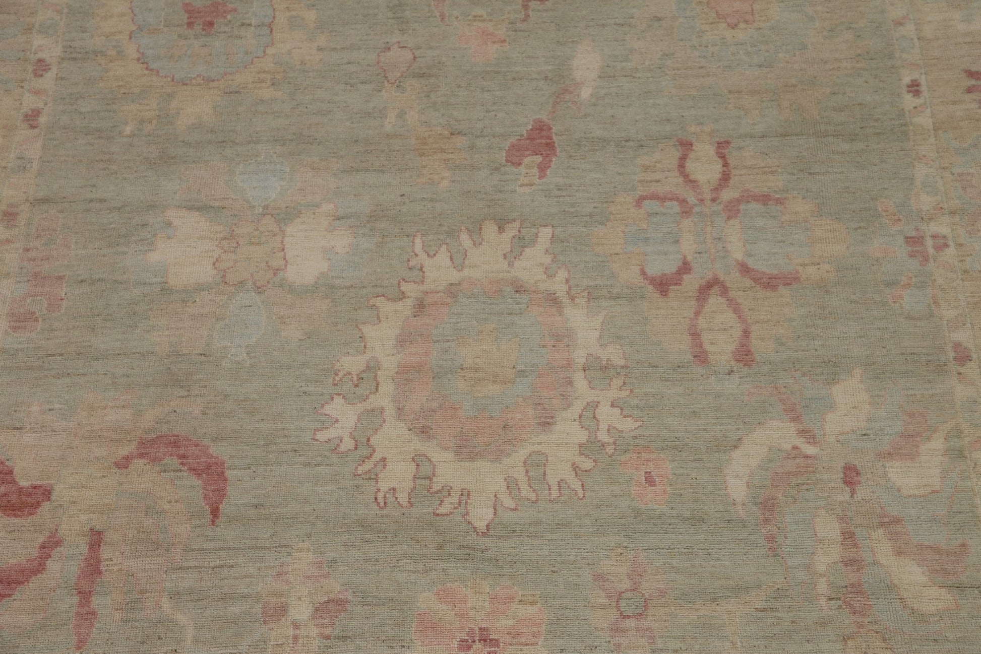 A Beautiful Genuine Turkey Oushak rug is Hand Knotted by skillful weavers in Turkey with 100% Wool Material. This rug is in New, First Quality condition. dimensions are 12' 4'' X 9' 6'' in foot and 376 X 290 in centimeter. the primary color is Green.
