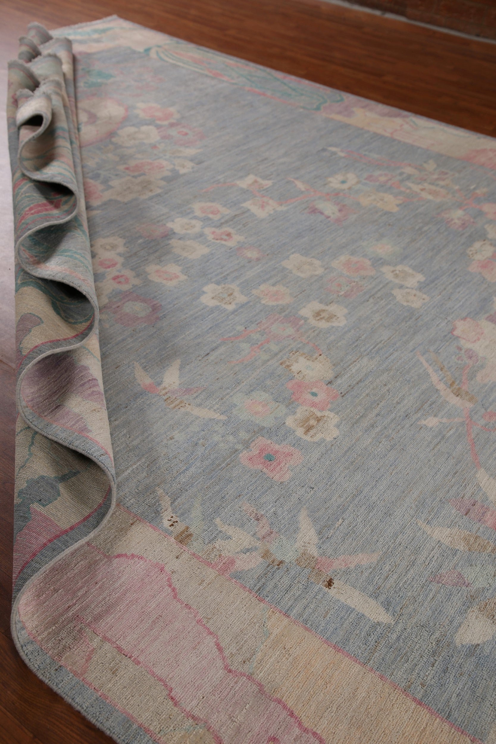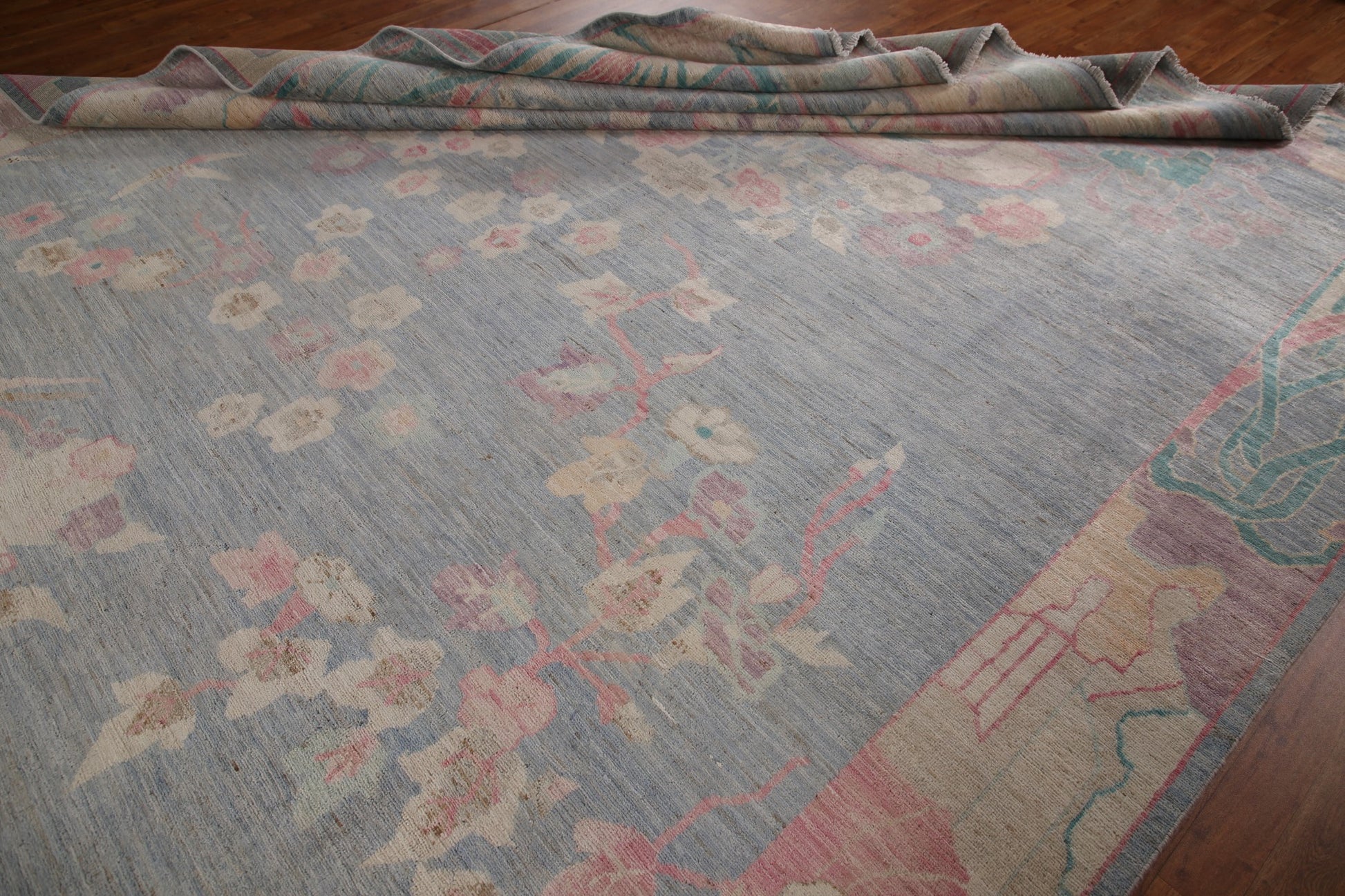 A Beautiful Genuine Turkey Oushak (100% Vegetable Dye) rug is Hand Knotted by skillful weavers in Turkey with 100% Wool Material. This rug is in Excellent condition. dimensions are 13' 5'' X 9' 8'' in foot and 409 X 295 in centimeter. the primary color is Navy Blue & Blues.