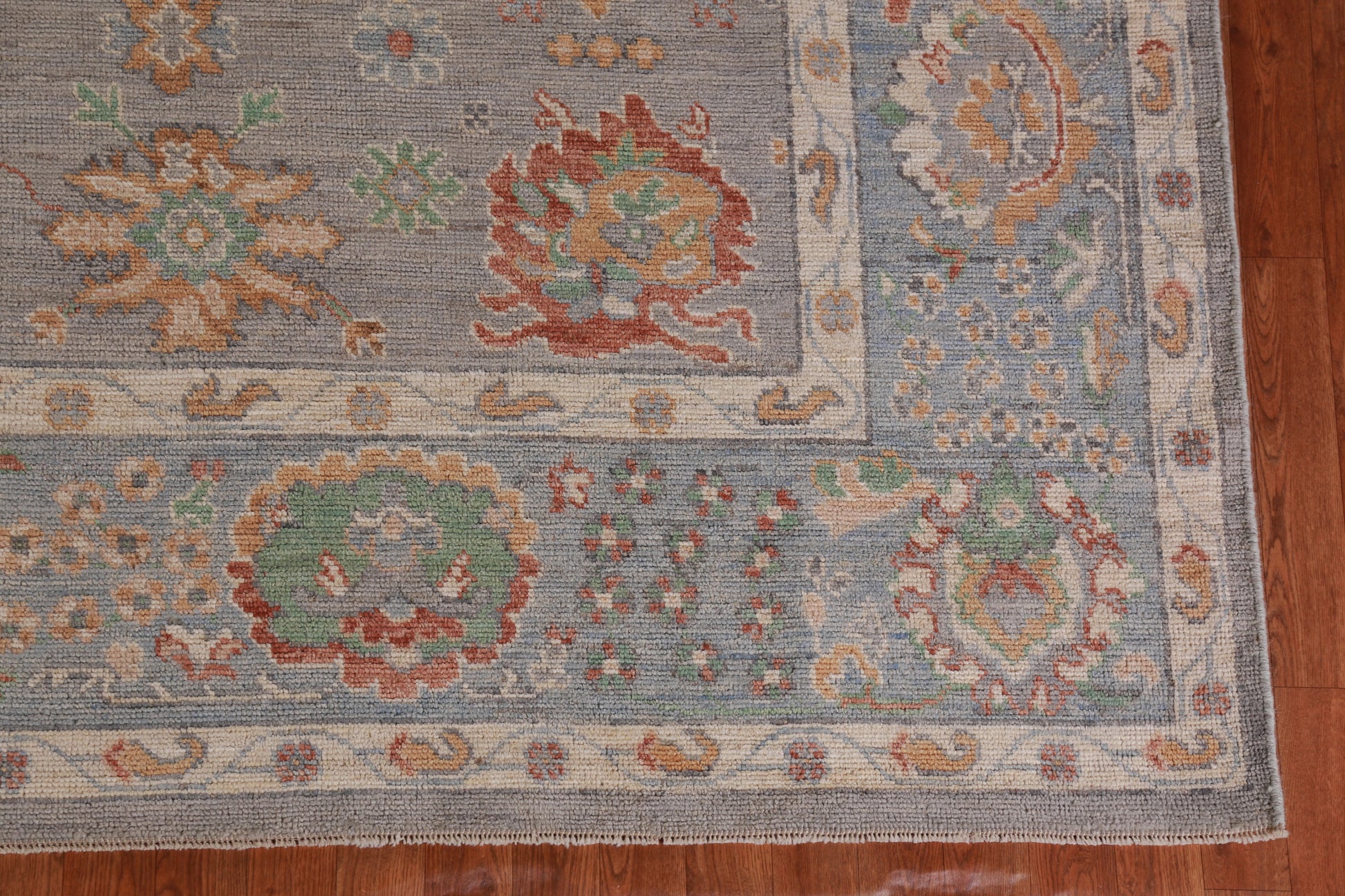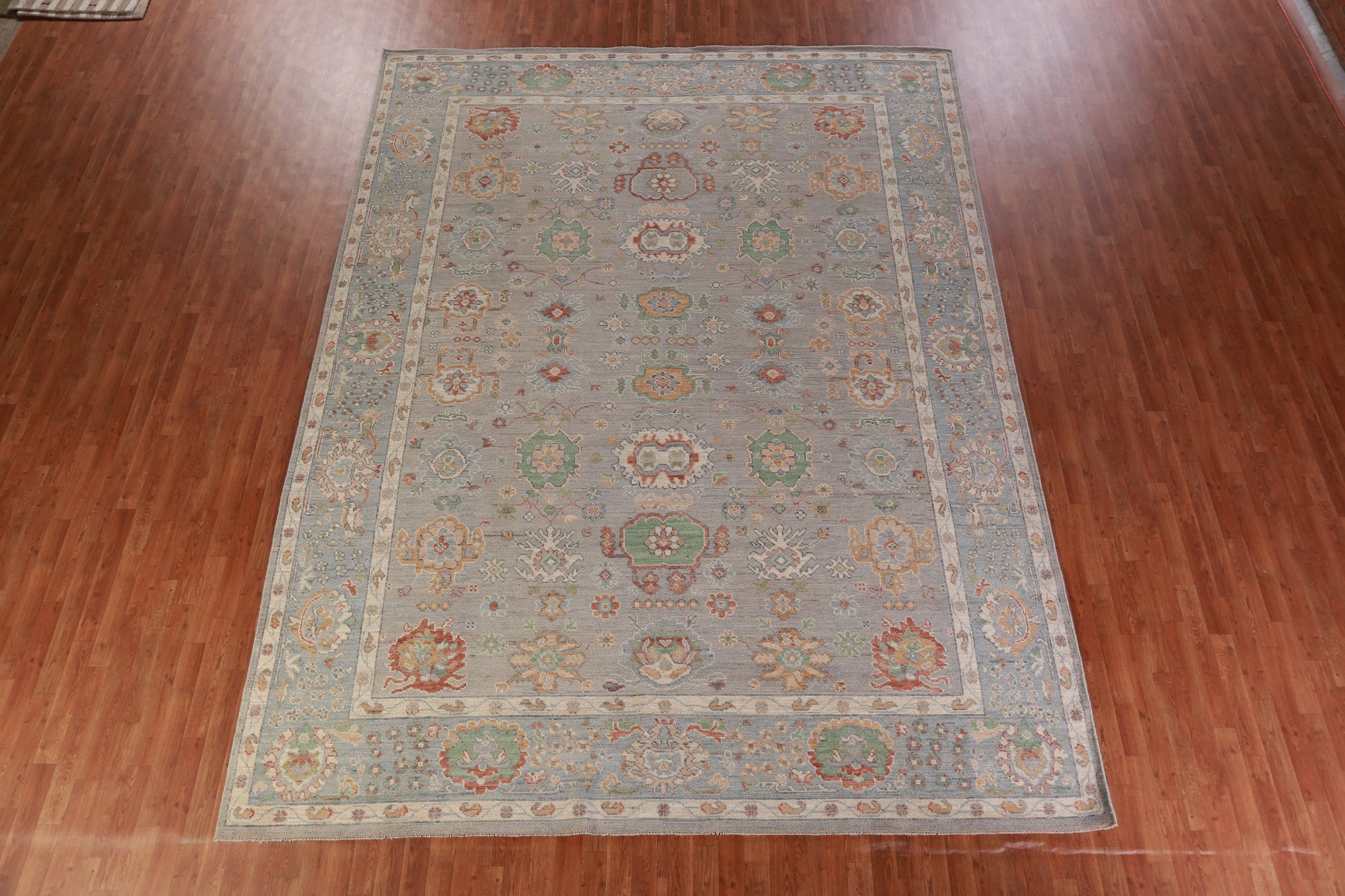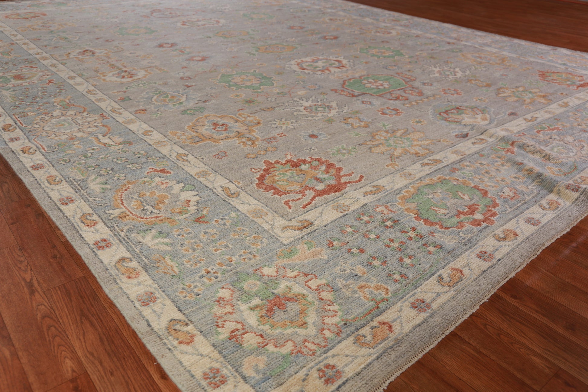 A Beautiful Genuine Turkey Oushak rug is Hand Knotted by skillful weavers in Turkey with 100% Wool Material. This rug is in New, First Quality condition. dimensions are 13' 4'' X 9' 11'' in foot and 406 X 302 in centimeter. the primary color is Greys & Charcoal.