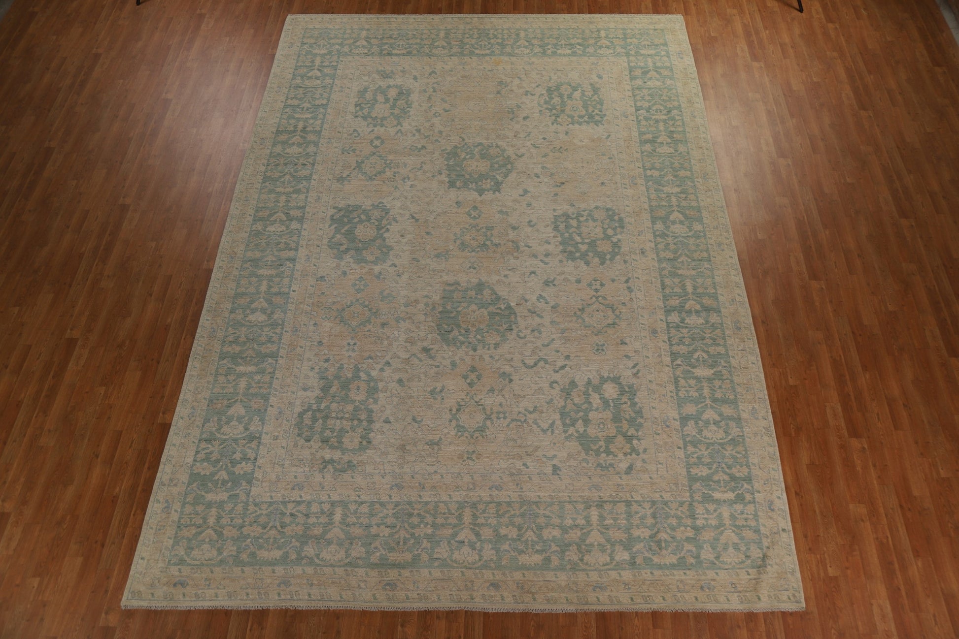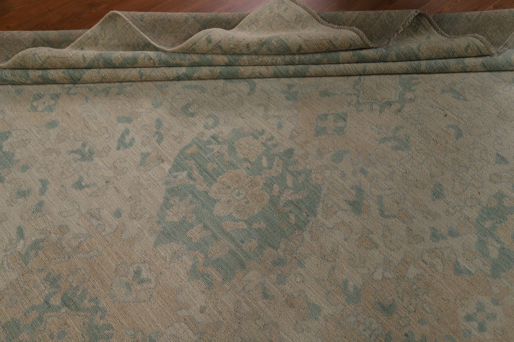 A Beautiful Genuine Turkey Oushak rug is Hand Knotted by skillful weavers in Turkey with 100% Wool Material. This rug is in New, First Quality condition. dimensions are 14' 3'' X 10' 1'' in foot and 434 X 307 in centimeter. the primary color is Beige & Ivories.