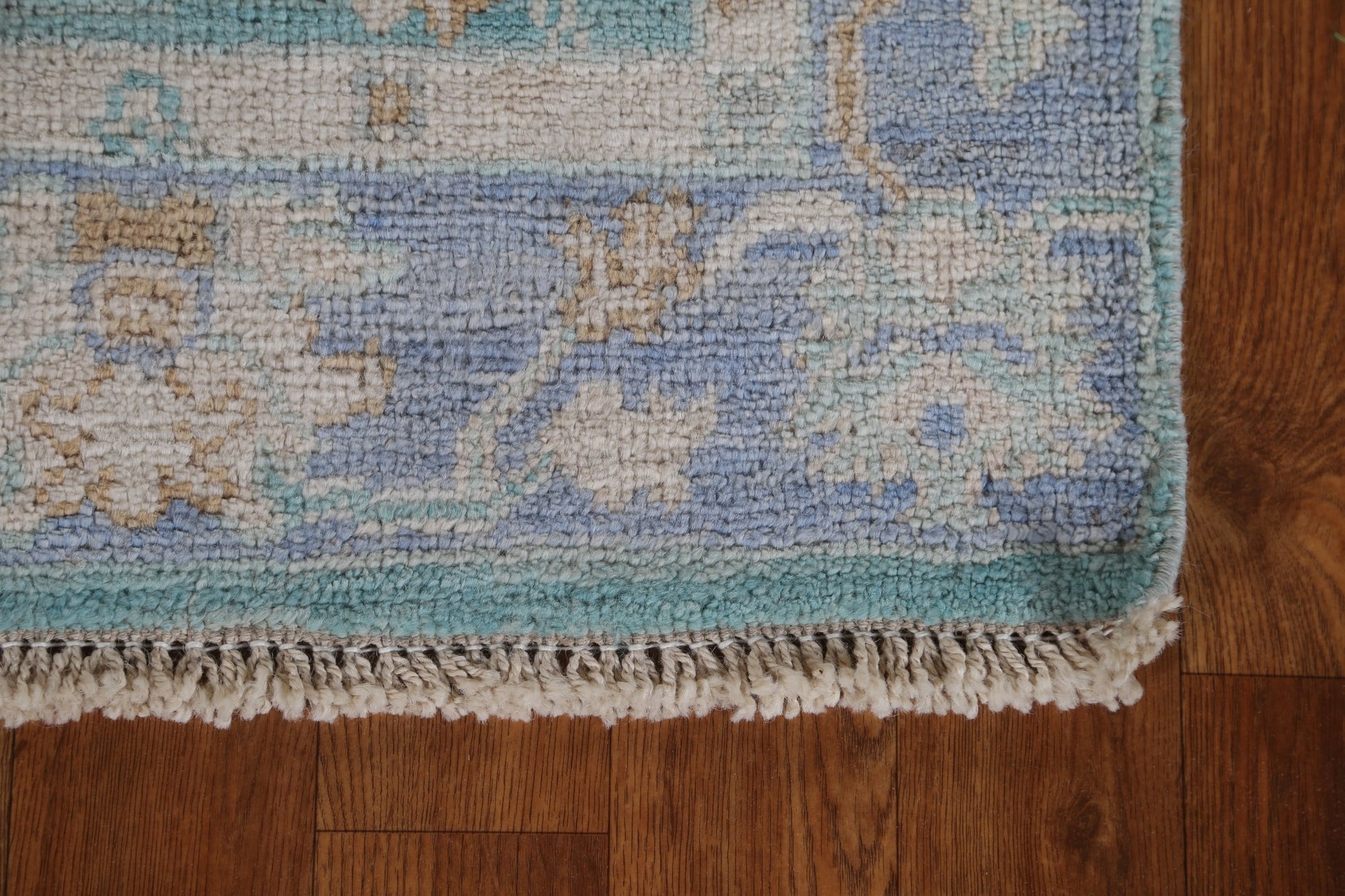 A Beautiful Genuine Turkey Oushak rug is Hand Knotted by skillful weavers in Turkey with 100% Wool Material. This rug is in New, First Quality condition. dimensions are 4' 0'' X 2' 0'' in foot and 122 X 61 in centimeter. the primary color is Navy Blue & Blues.