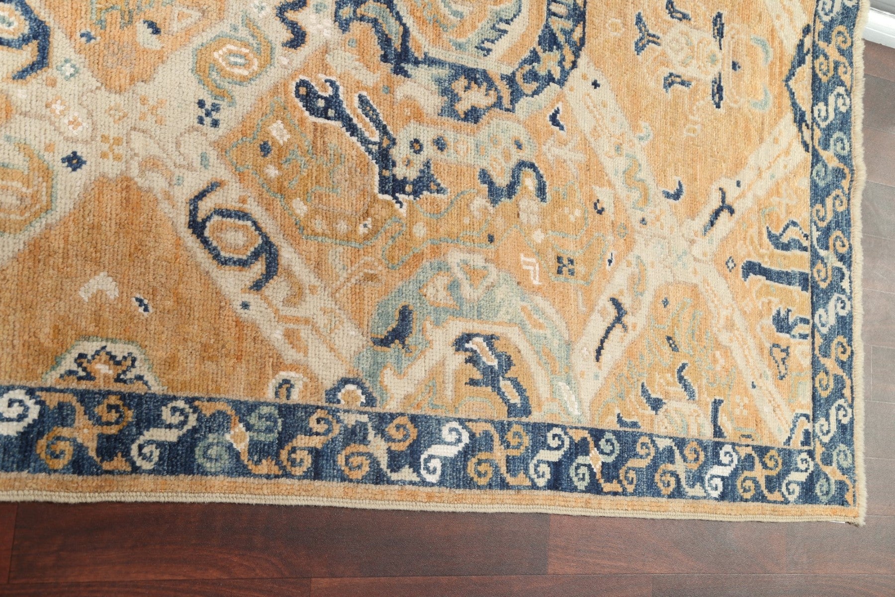 A Beautiful Genuine Turkey Oushak rug is Hand Knotted by skillful weavers in Turkey with 100% Wool Material. This rug is in New, First Quality condition. dimensions are 5' 10'' X 4' 10'' in foot and 178 X 147 in centimeter. the primary color is Yellow & Gold.