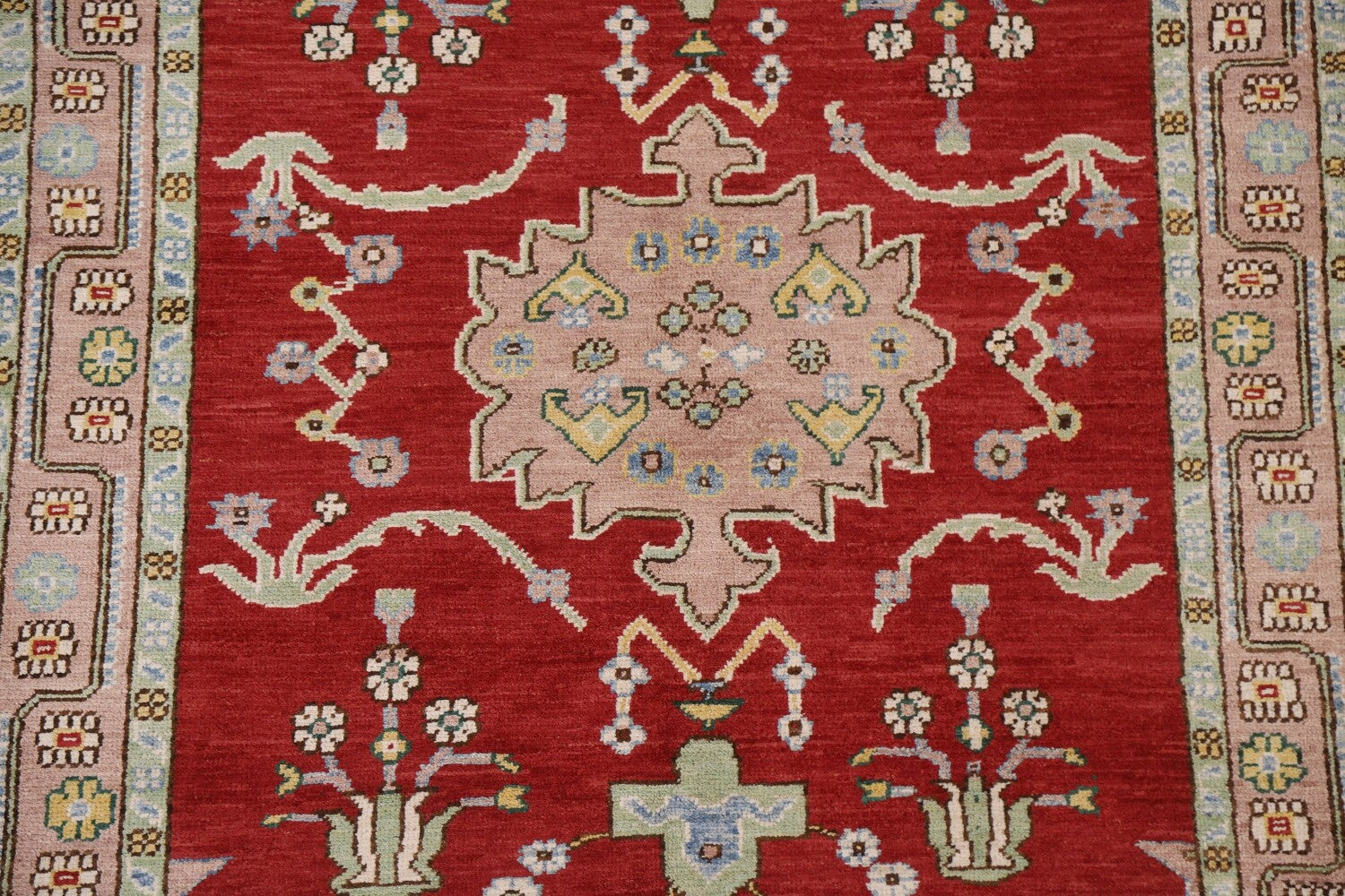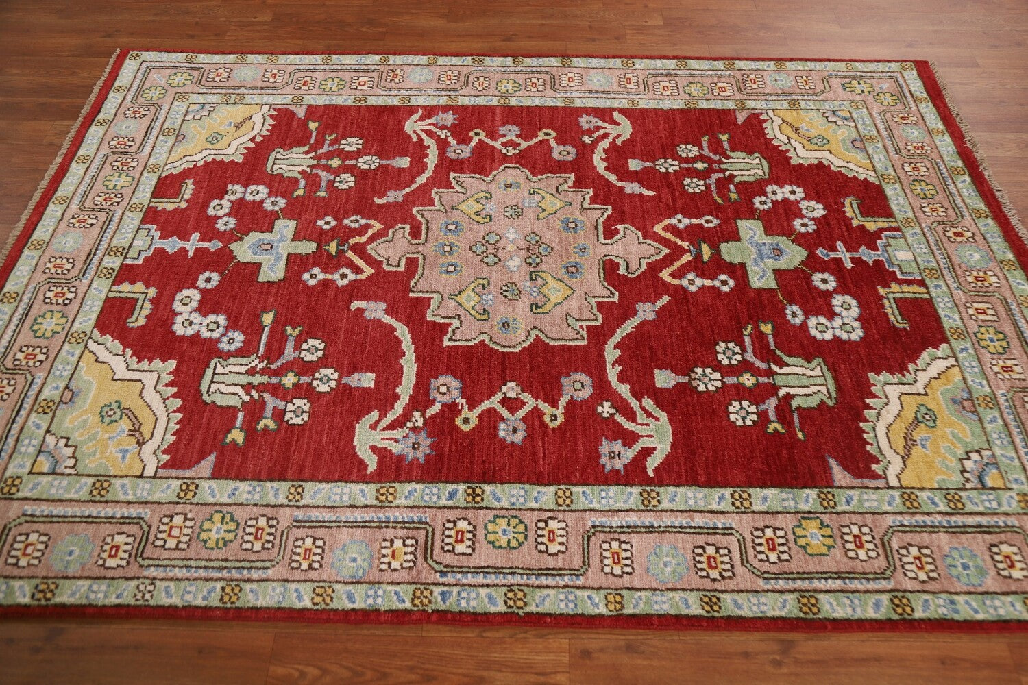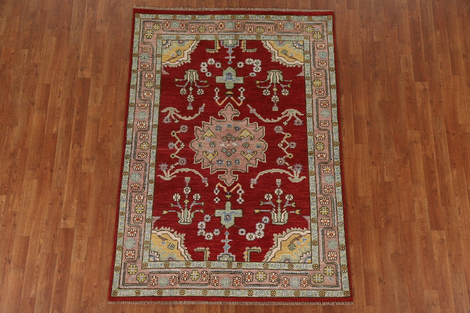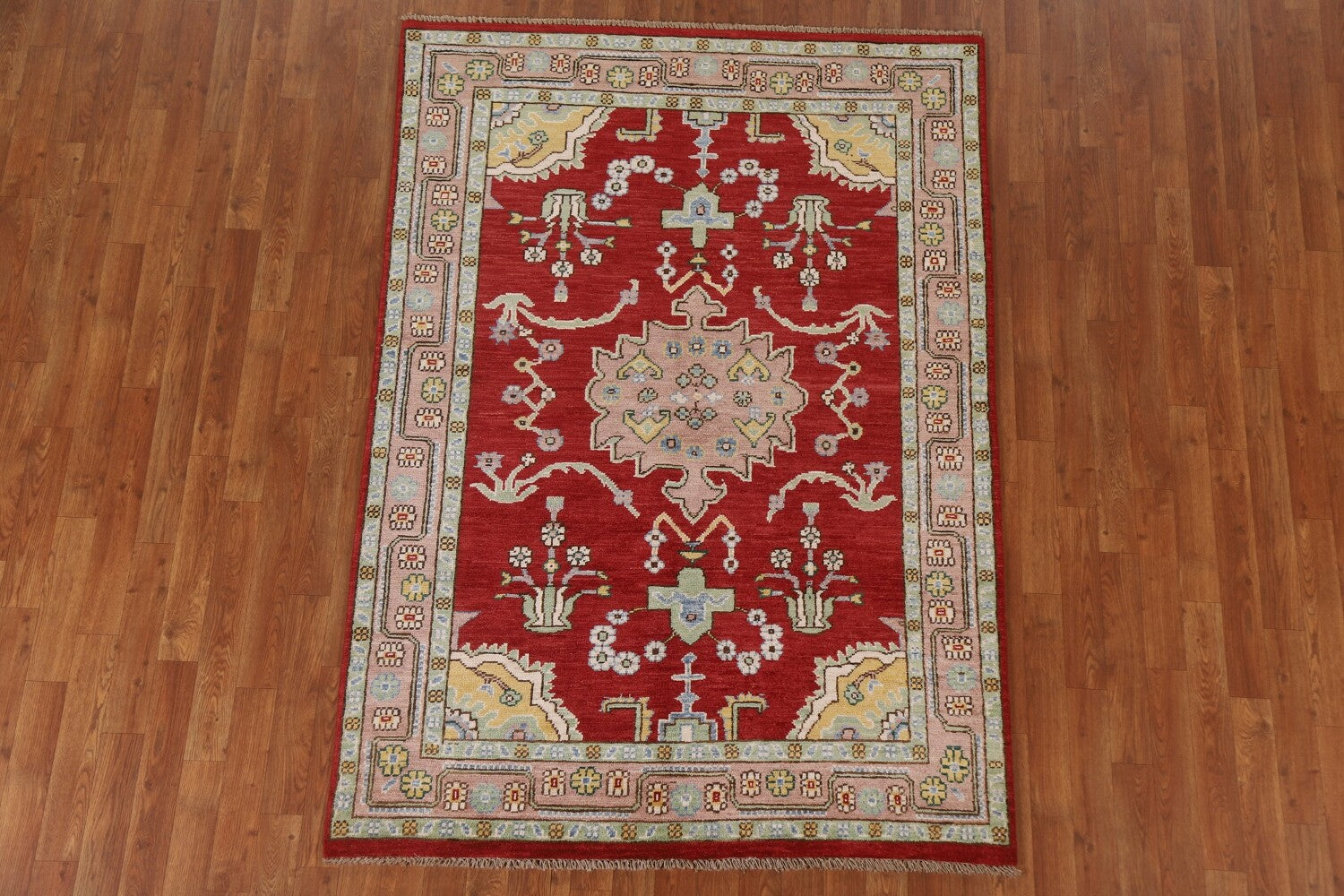 A Beautiful Genuine Turkey Oushak rug is Hand Knotted by skillful weavers in Turkey with 100% Wool Material. This rug is in New, First Quality condition. dimensions are 6' 1'' X 4' 6'' in foot and 185 X 137 in centimeter. the primary color is Red.