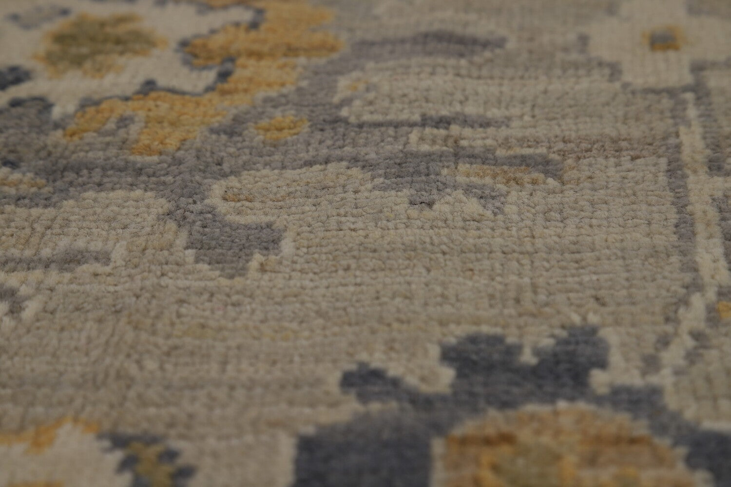 A Beautiful Genuine Turkey Oushak rug is Hand Knotted by skillful weavers in Turkey with 100% Wool Material. This rug is in New, First Quality condition. dimensions are 9' 2'' X 5' 9'' in foot and 279 X 175 in centimeter. the primary color is Greys & Charcoal.